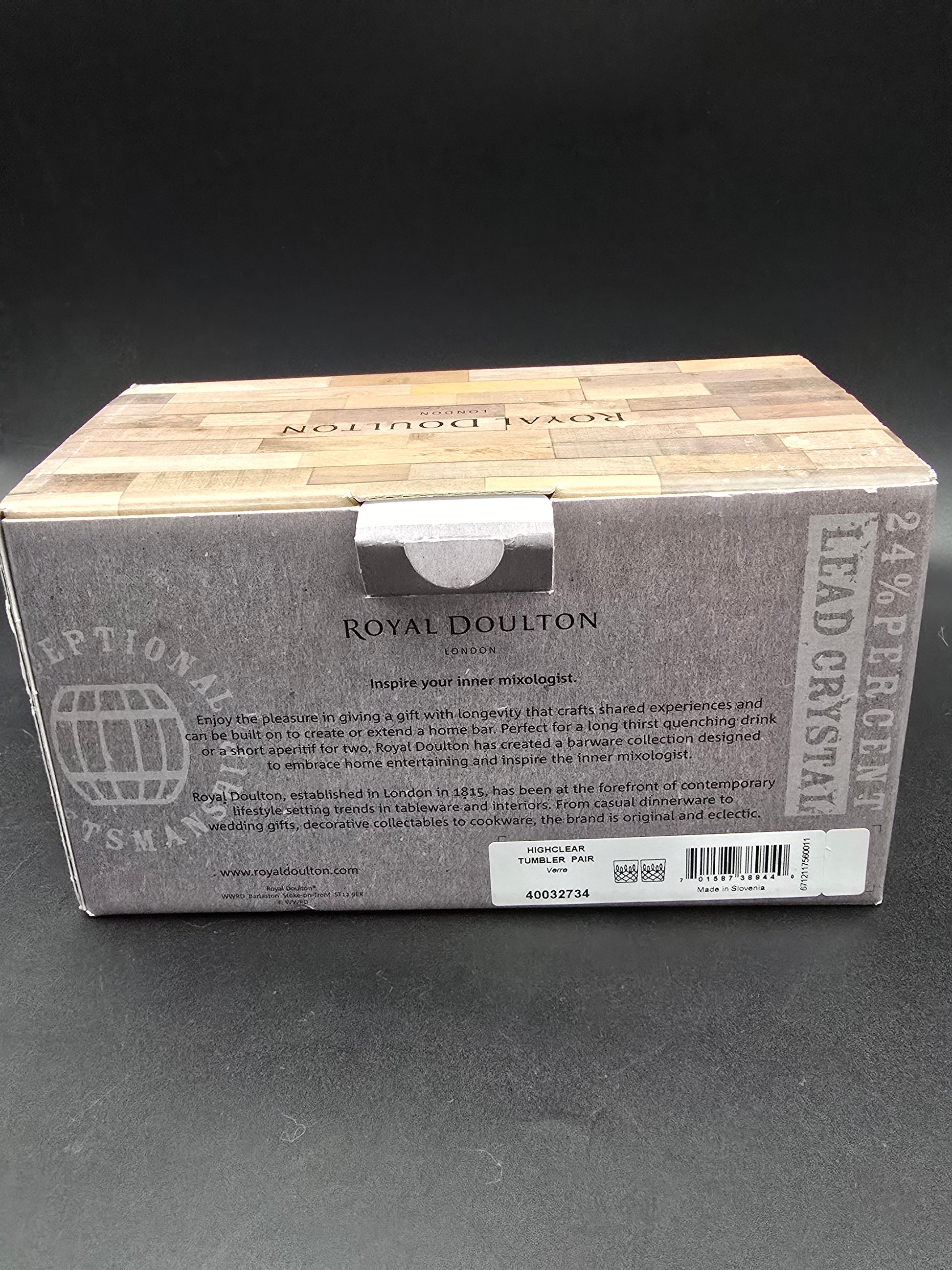 Royal Doulton “Highclear” Crystal Tumblers (Pair, Brand New in Box, 11oz, 24% Lead Crystal) – Ideal Gift for Any Occasion