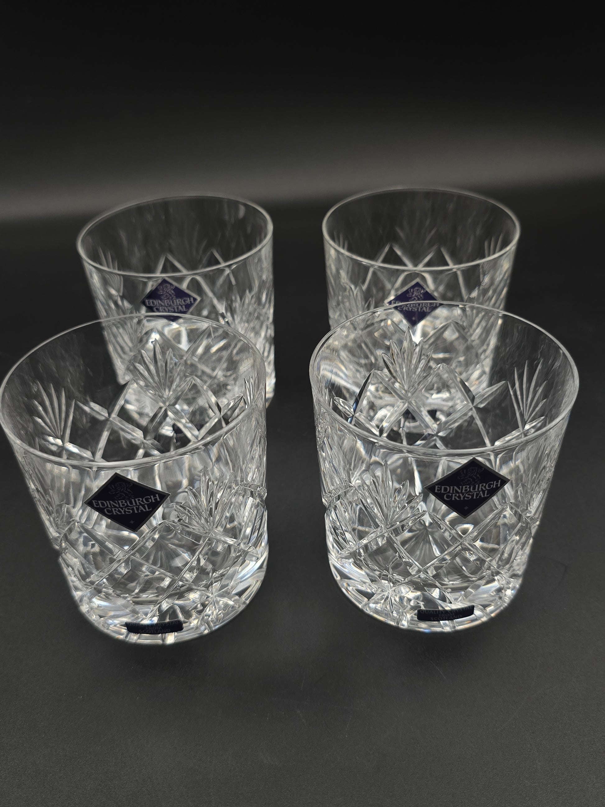 Set of 4 Edinburgh Crystal Kelso 10 oz Tumblers – Star‑Pattern Base, Boxed & Stickered, Scottish Cut Glass