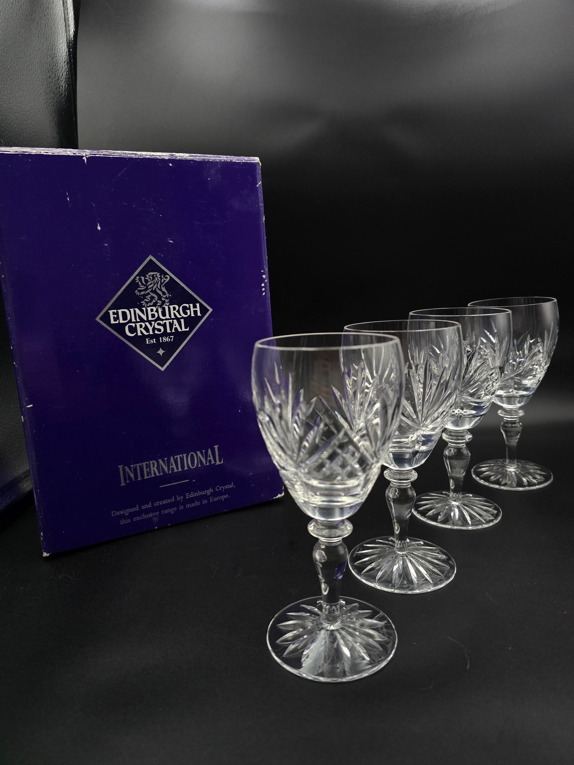 Produced by Edinburgh Crystal under the Edinburgh International label, these glasses likely date from the late 1980s to early 2000s. Made in Scotland before the brand's closure in 2006.