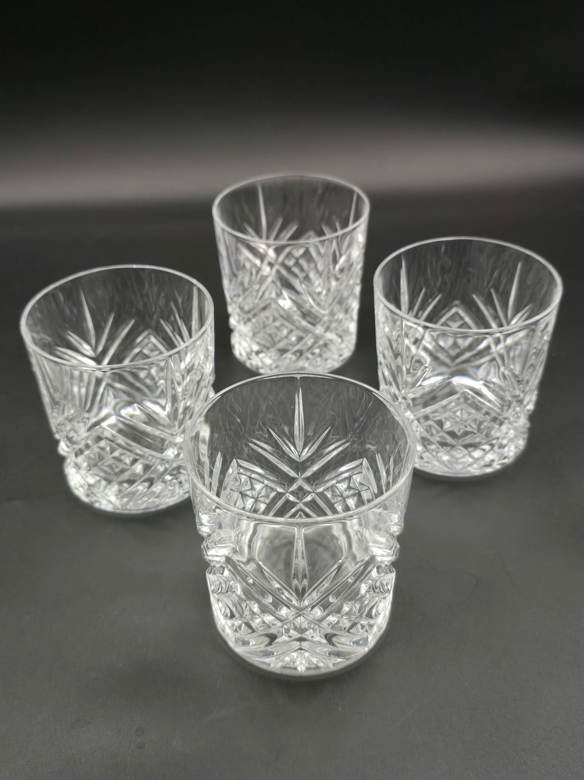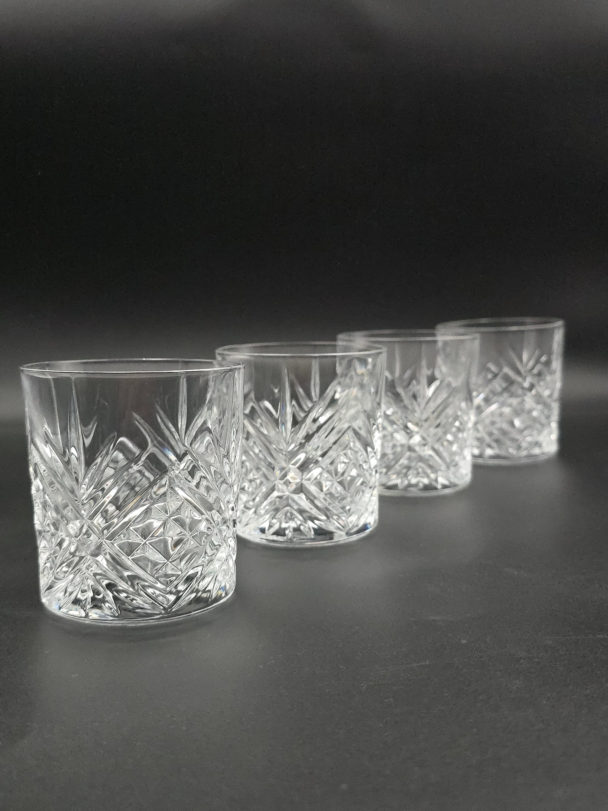 Set of 4 Edinburgh Crystal Whisky Tumblers – Boxed, 8oz, Heavy Cut Glass, Vintage Scottish Crystal Barware