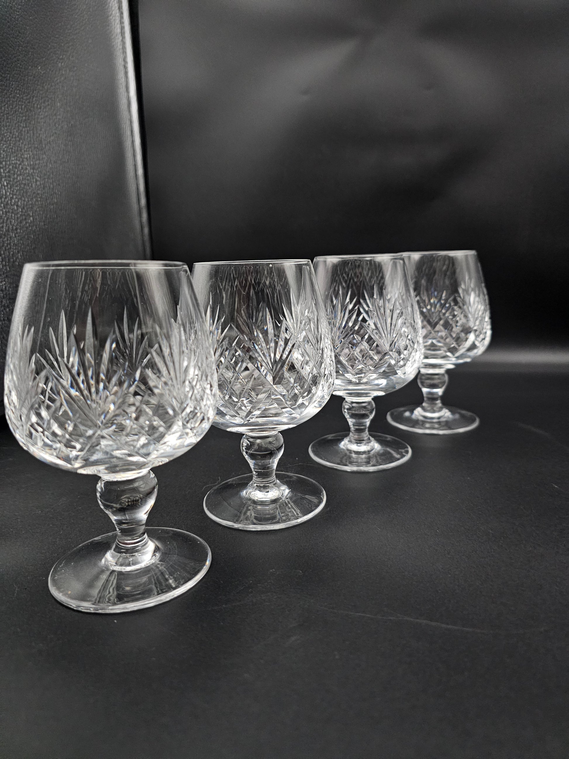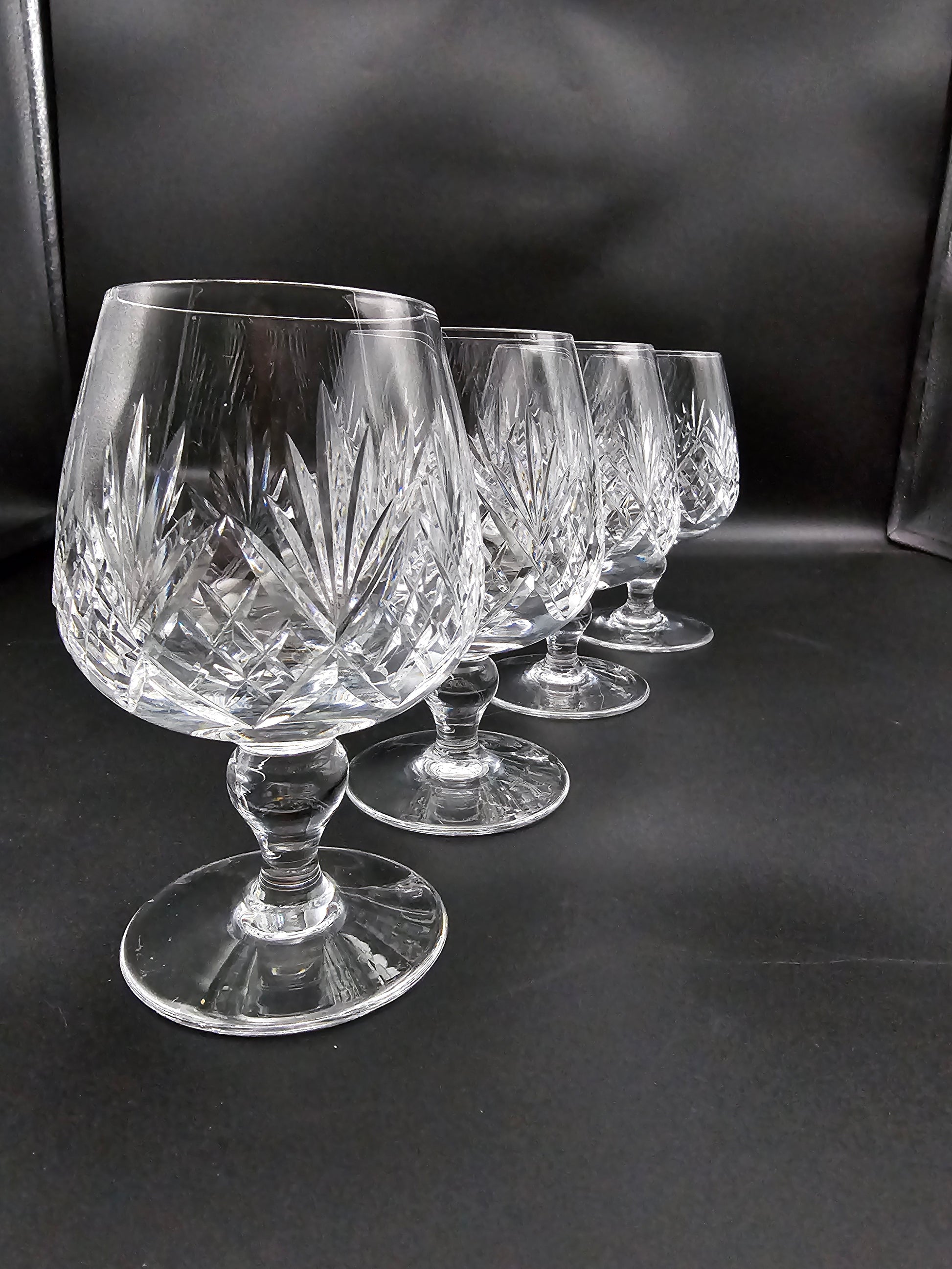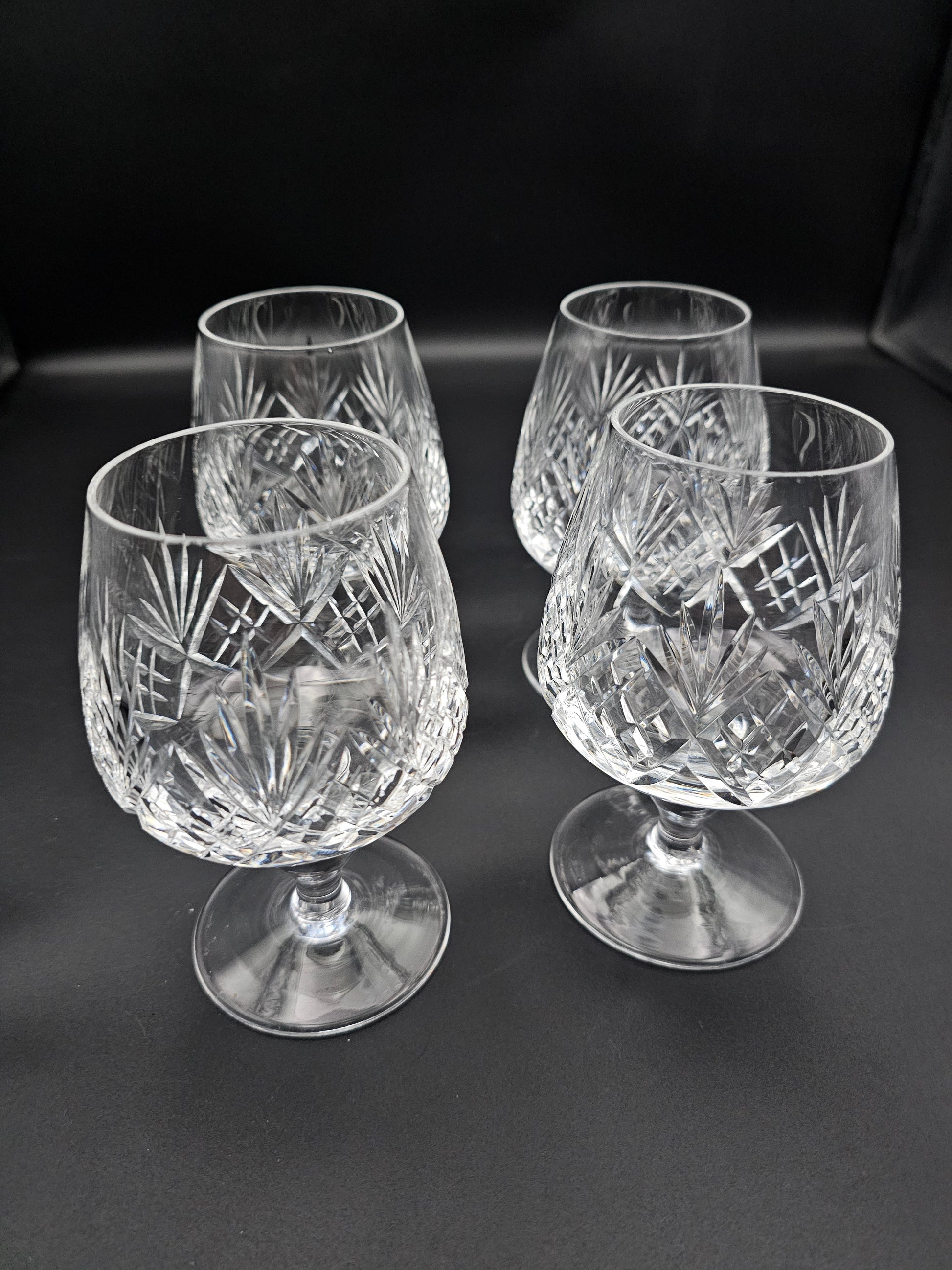Set of 4 Knopped stem Crystal Brandy Cognac glasses 9oz