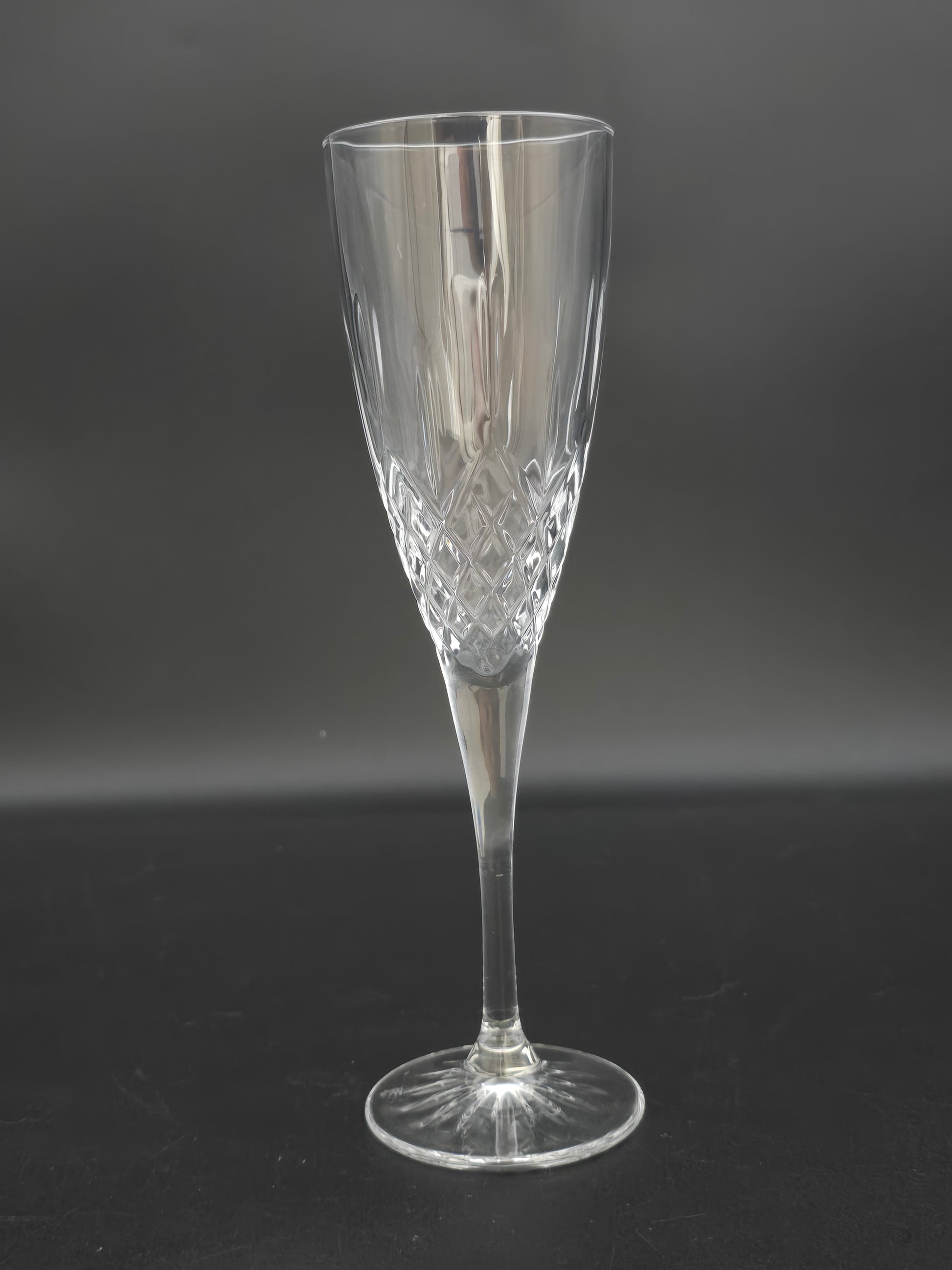 Set of 4 Royal Doulton Earlswood Pattern Crystal Champagne Flutes. 150ml. 21cm tall.