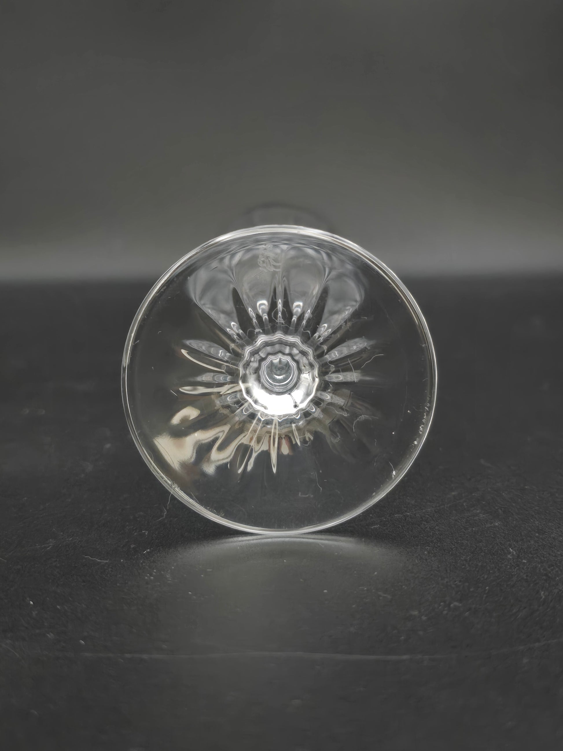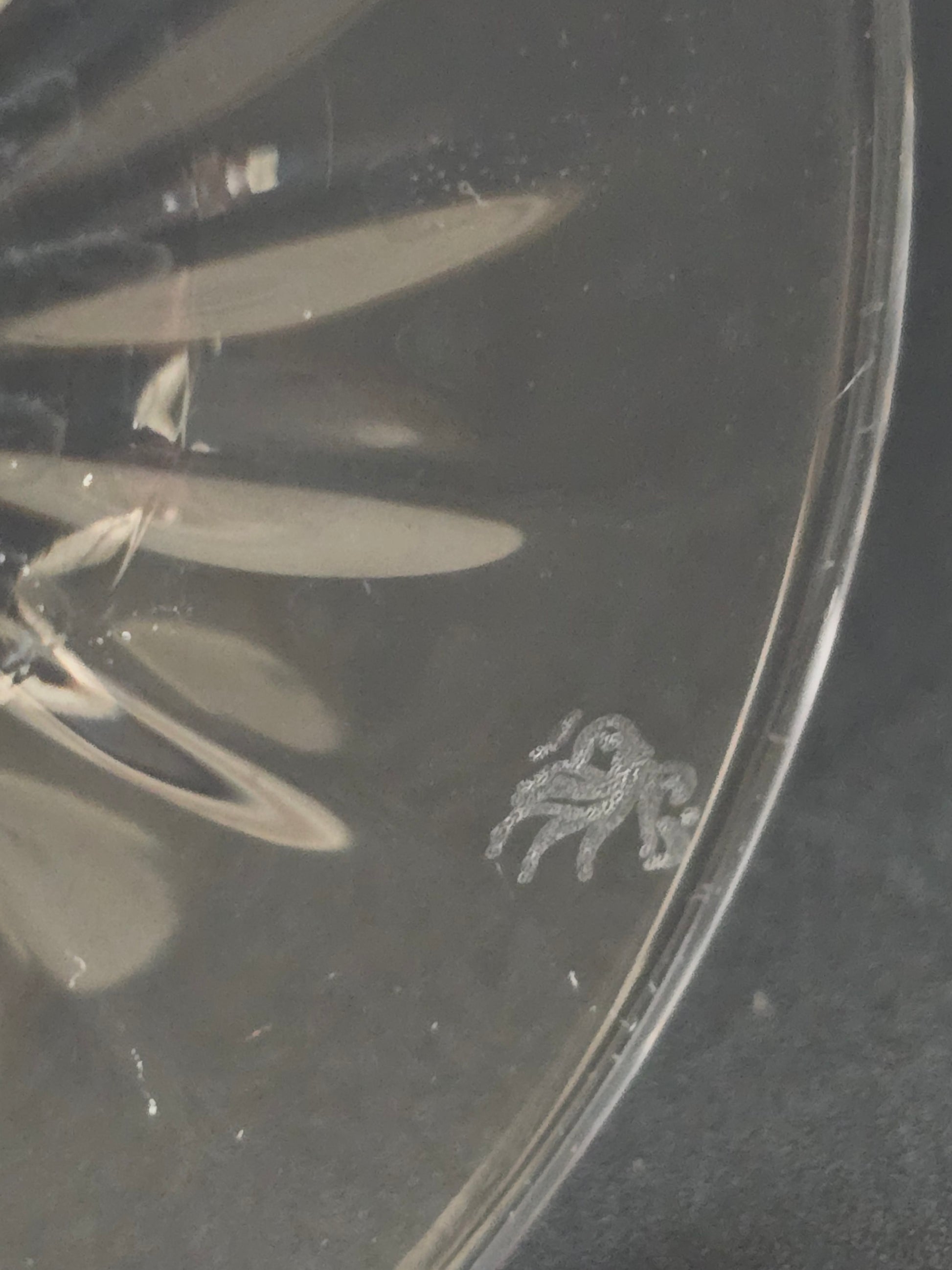 The vintage design features tall, slender stems with a star pattern base, and the maker's mark is etched on the base for authenticity.
