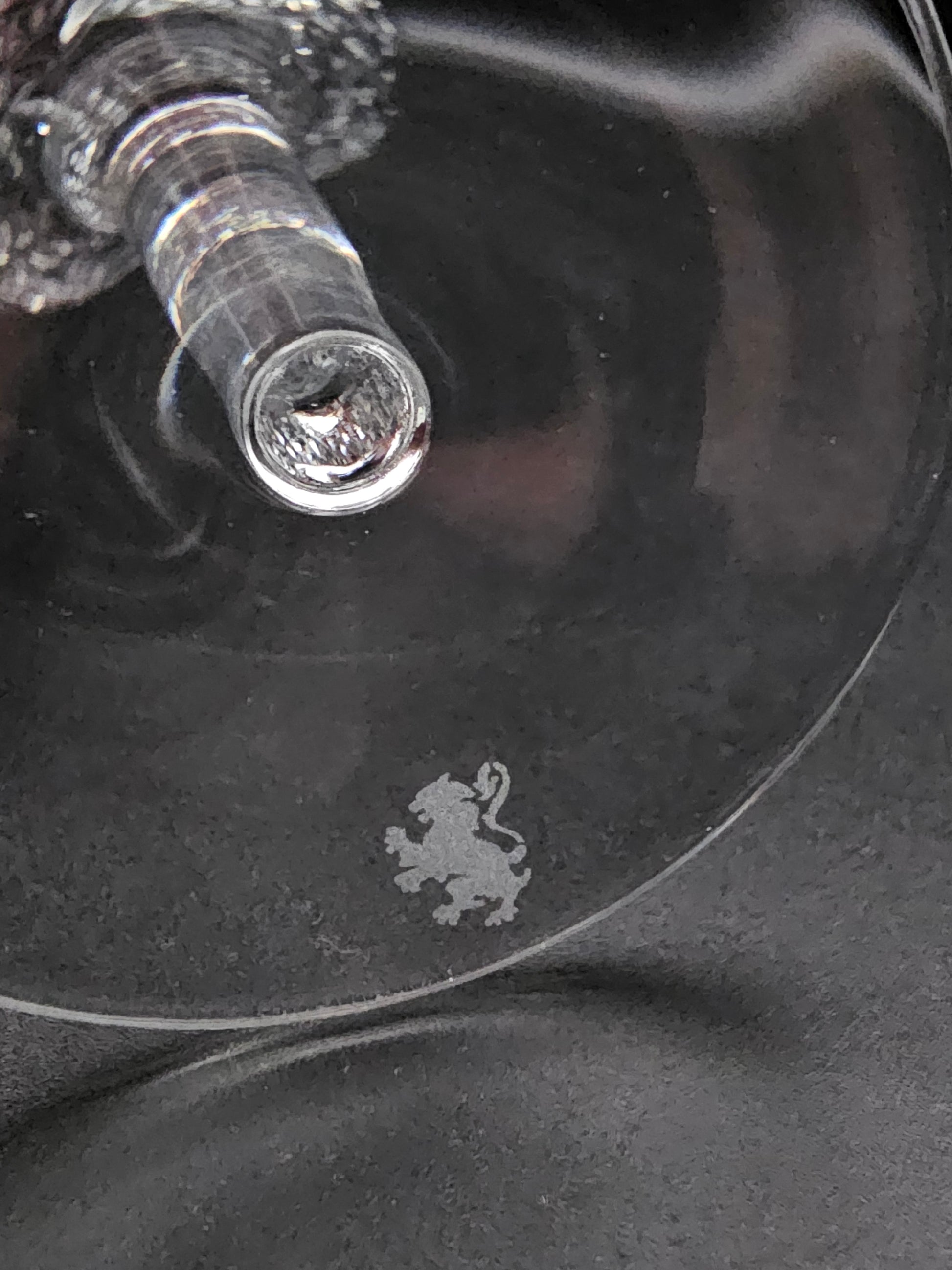 The maker's mark etched on the base adds a touch of elegance to these high-quality glasses.