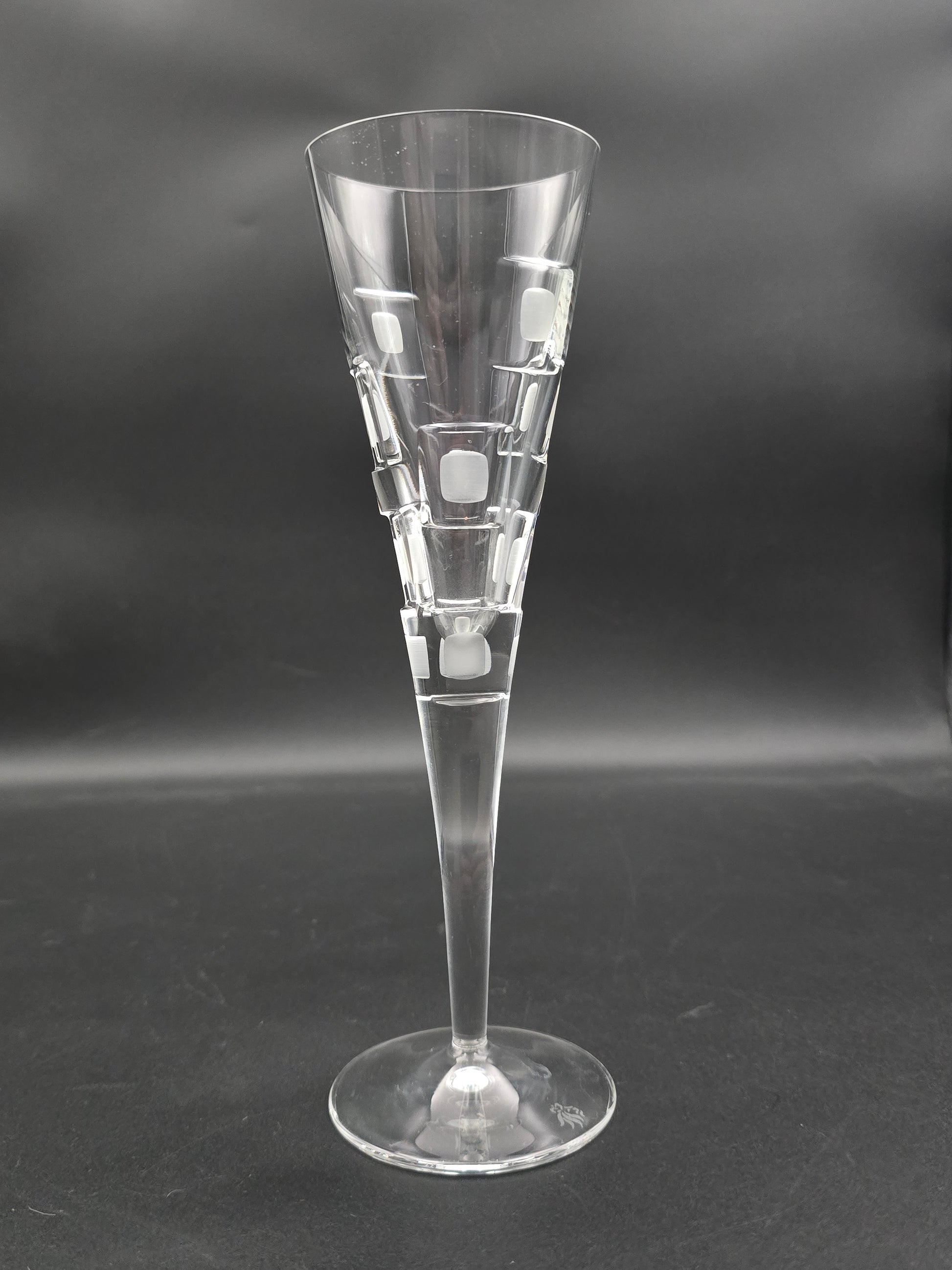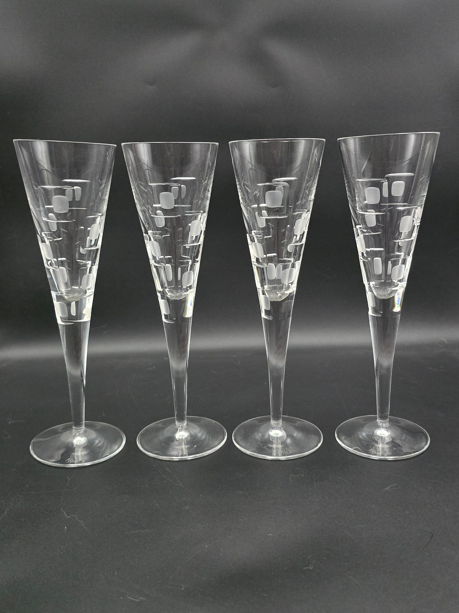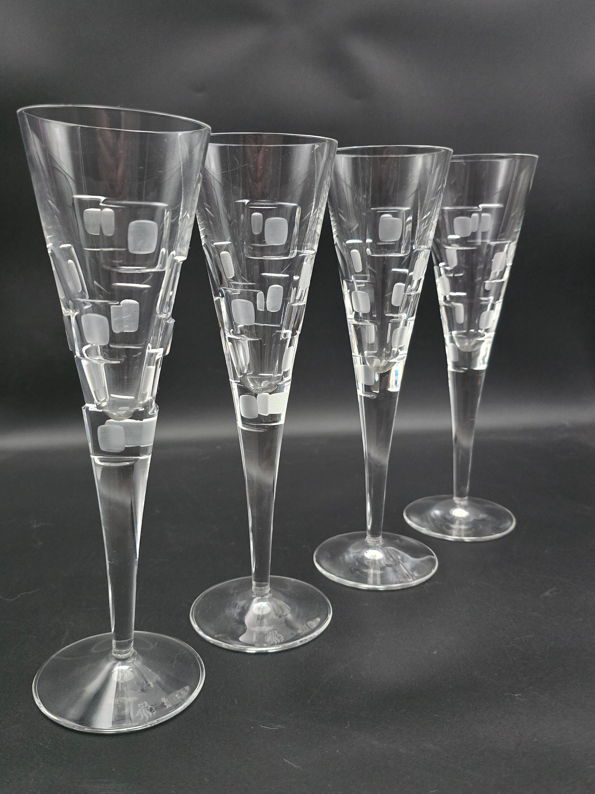Set of 4 Royal Doulton Metro Pattern Crystal champagne flutes. 150ml 23cm tall
