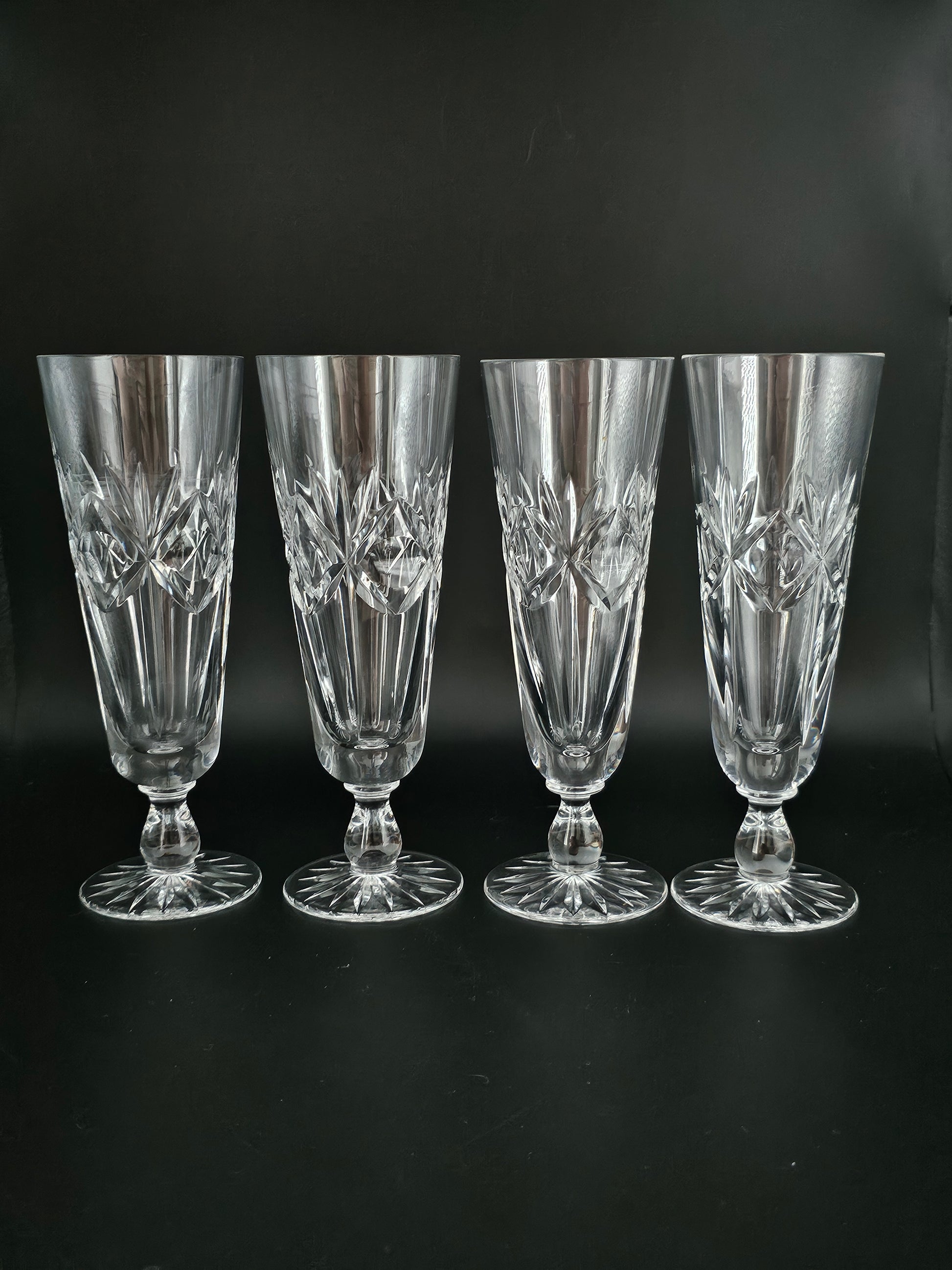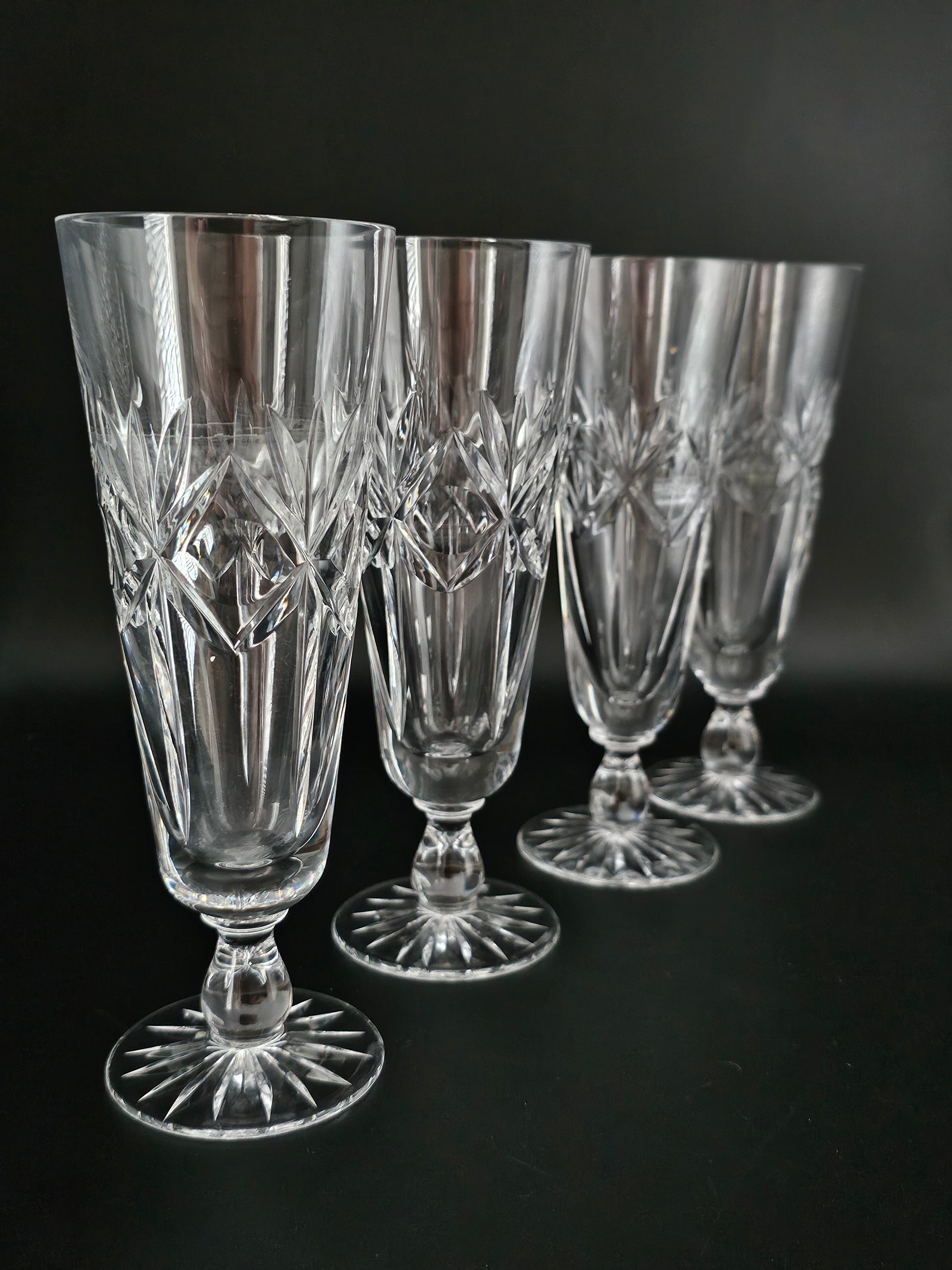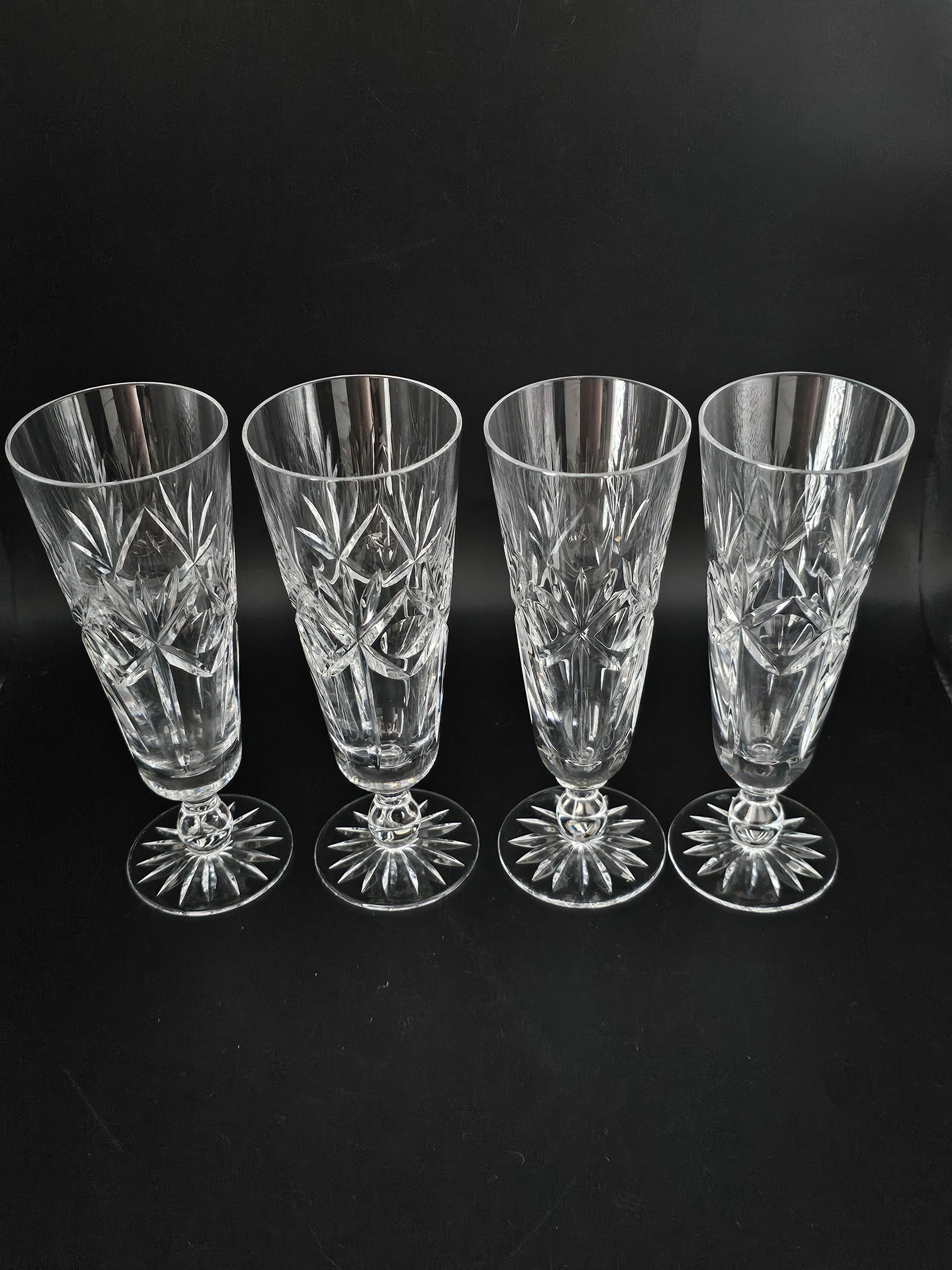 Set of 4 short stemmed Crystal Champagne Flutes. 17.5cm tall