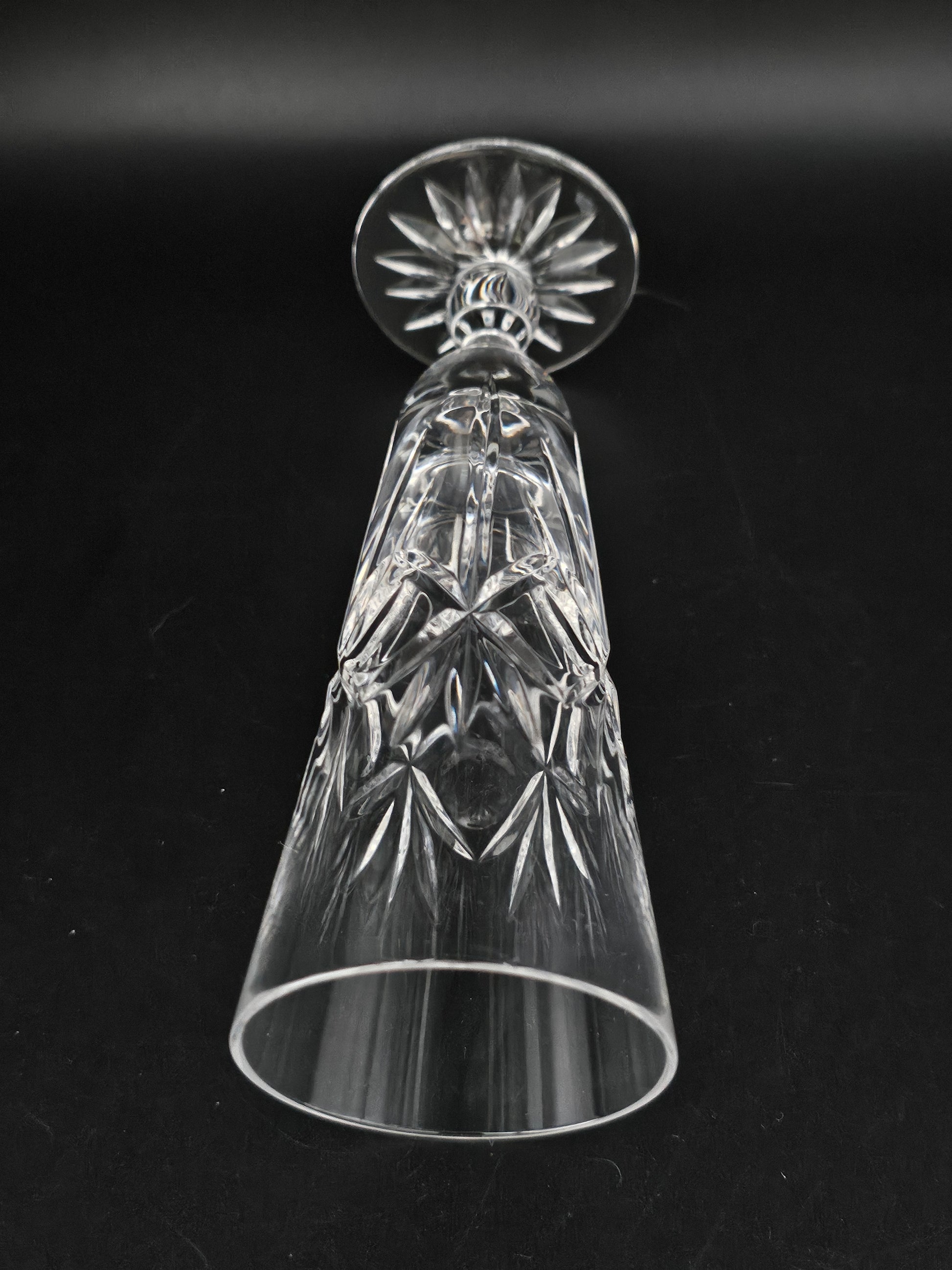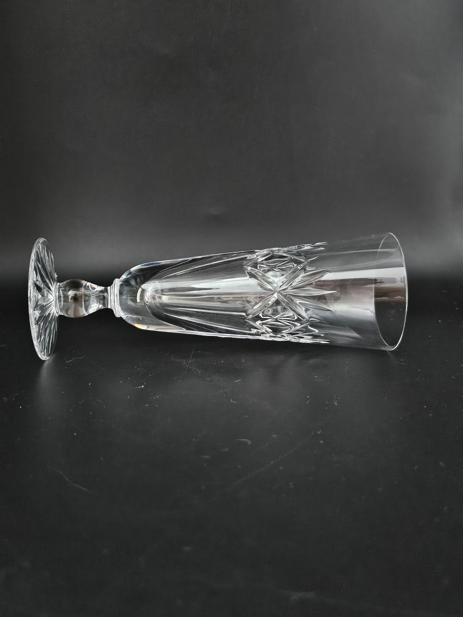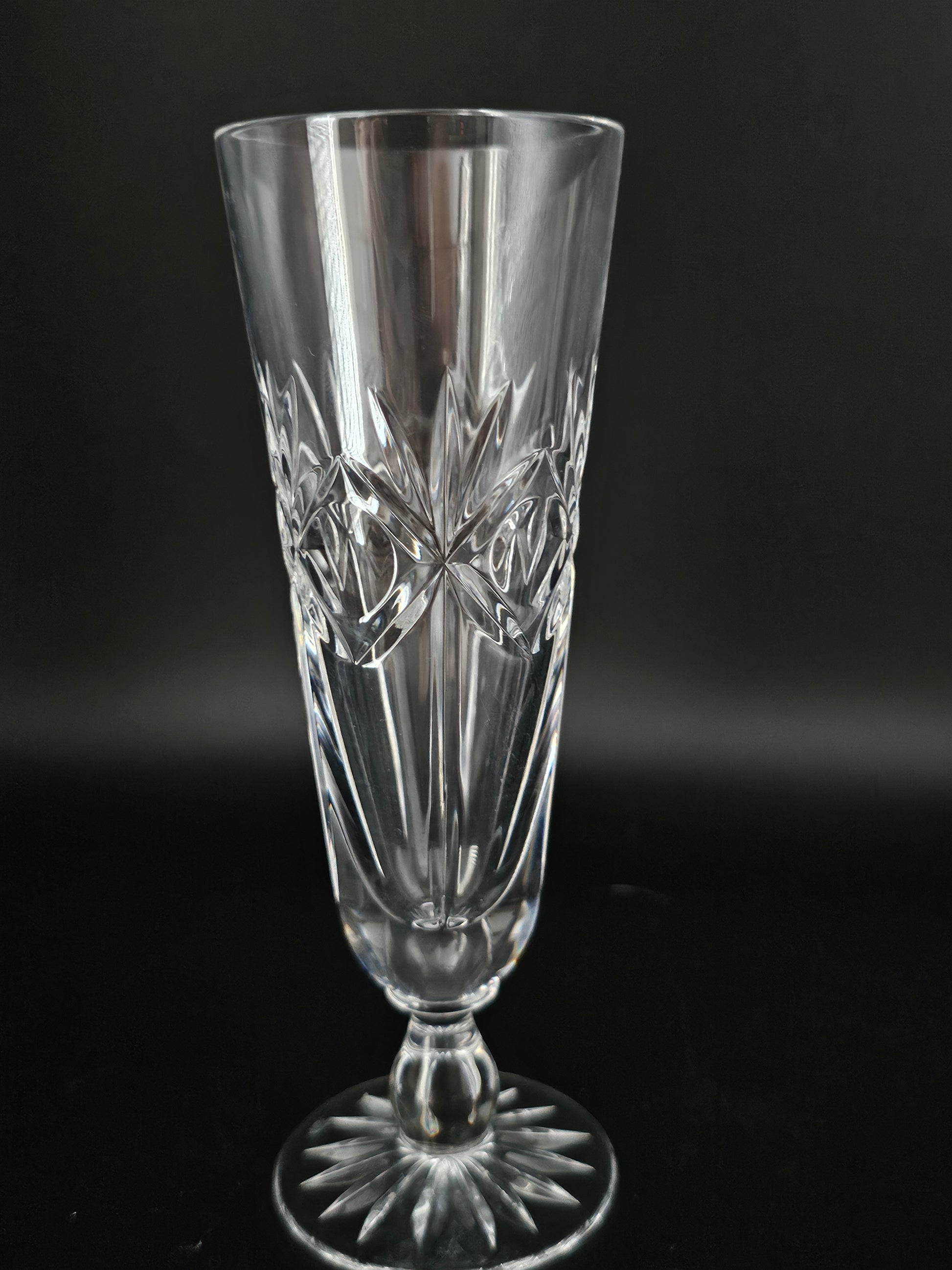 Expertly crafted with a short knopped stem and star pattern base, this set of 4 crystal champagne flutes boasts a 150ml capacity.