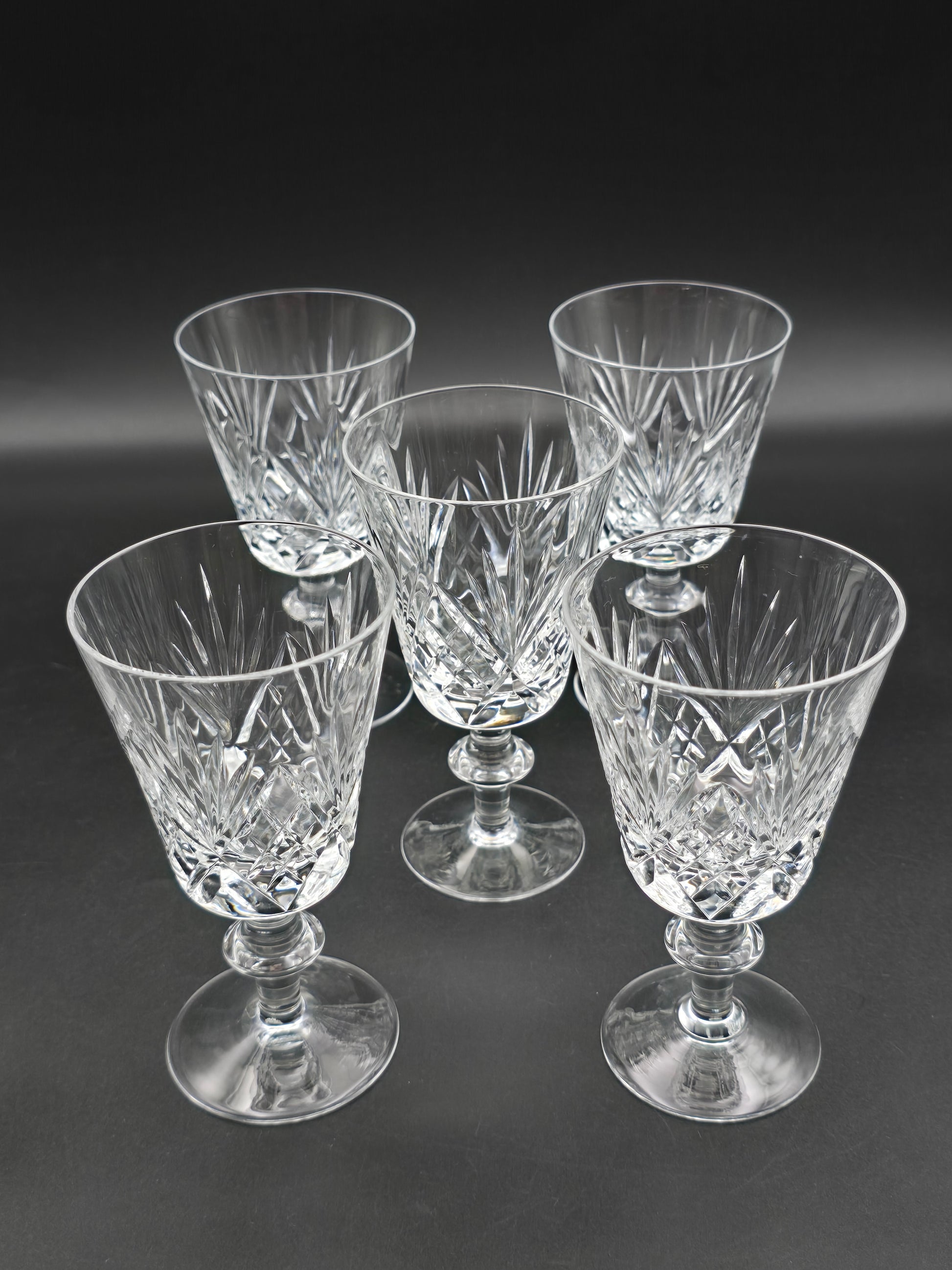 Set of 5 Royal Doulton ‘Juno’ Crystal Wine Glasses – Knopped Stem – 12.5cm Tall – Vintage British Glassware – Immaculate Condition