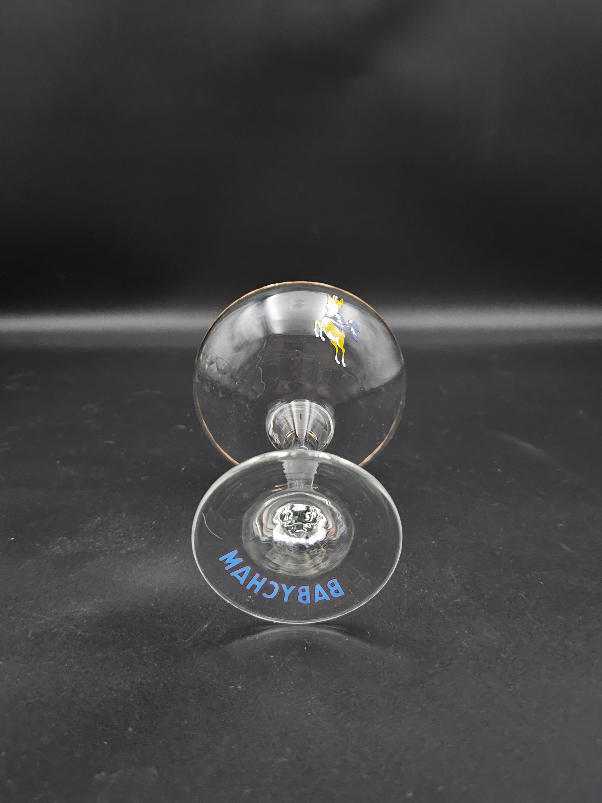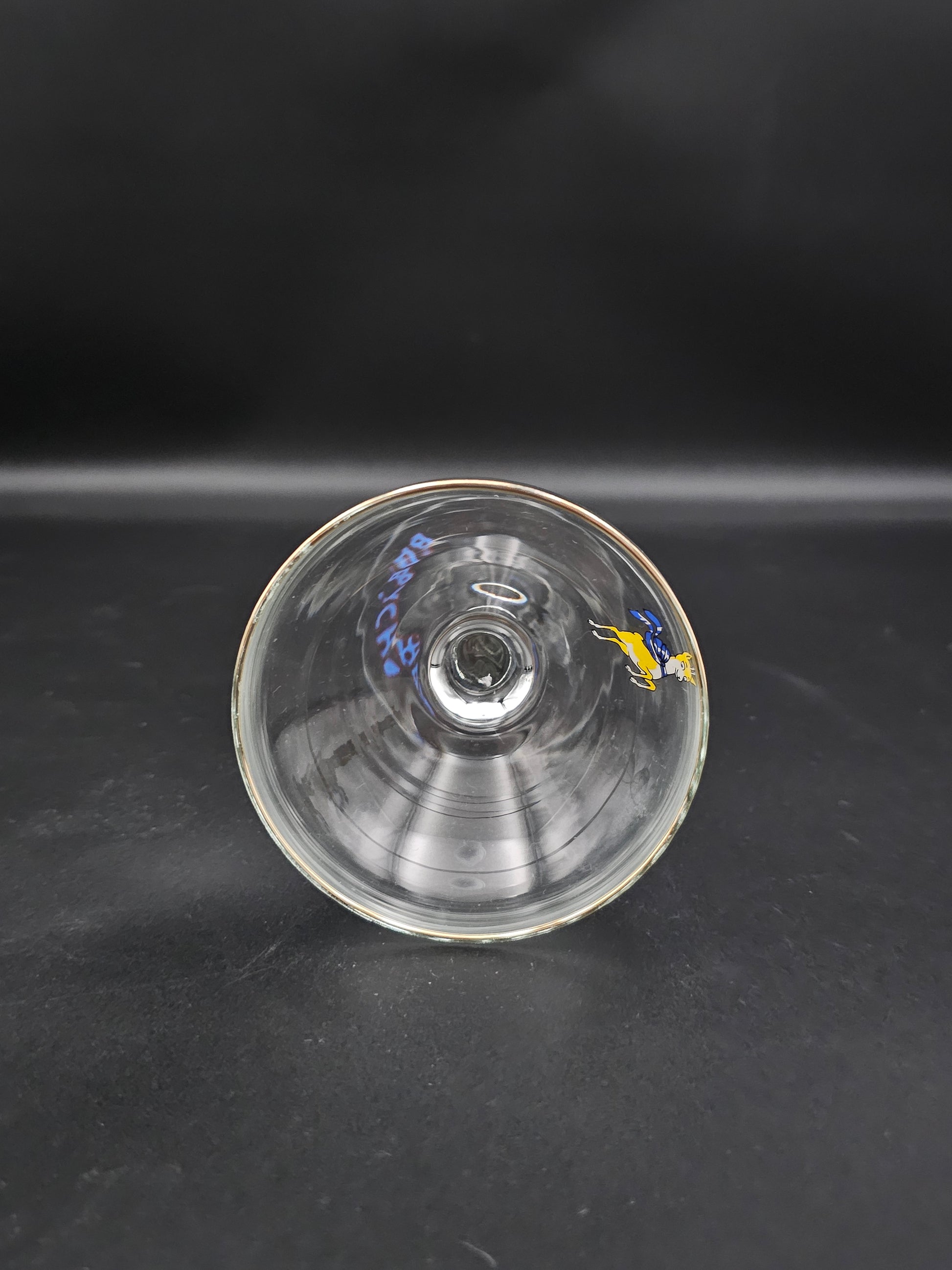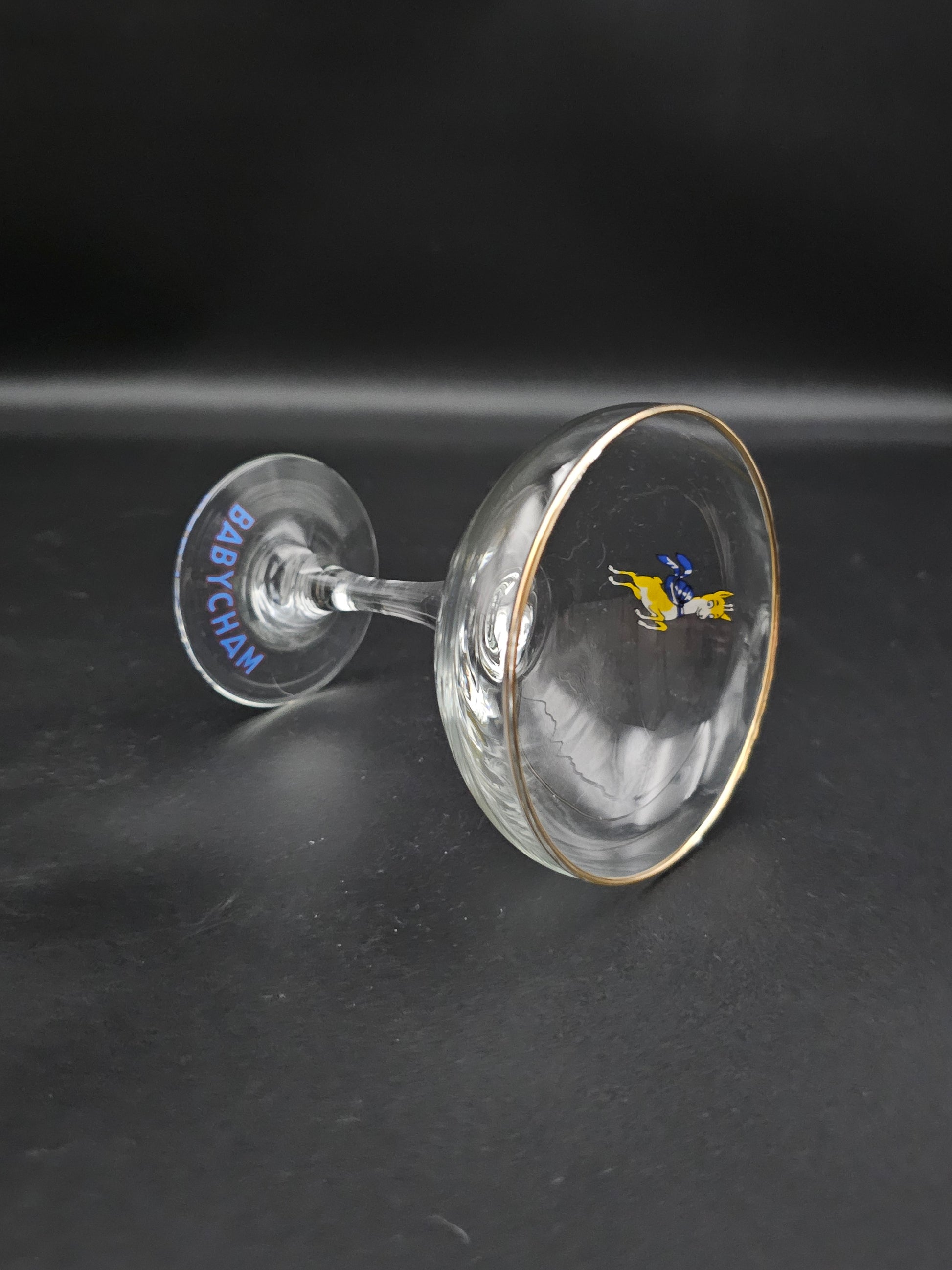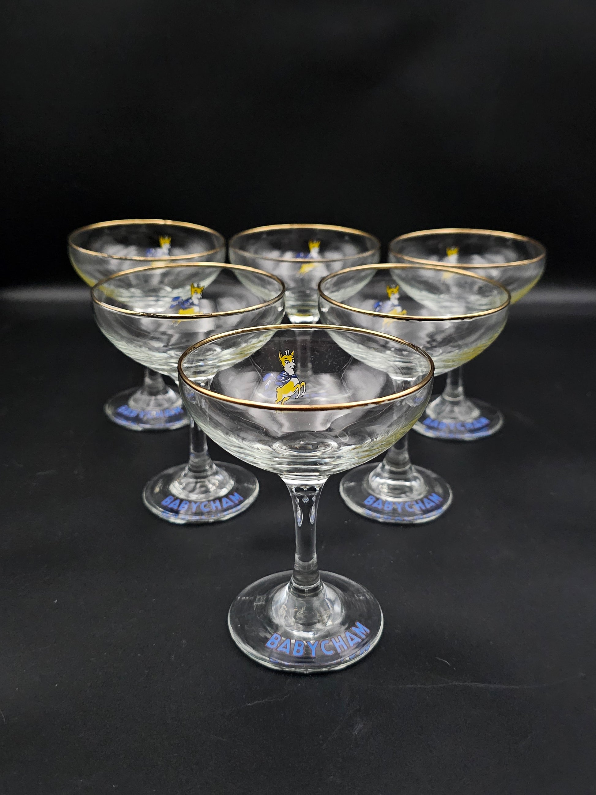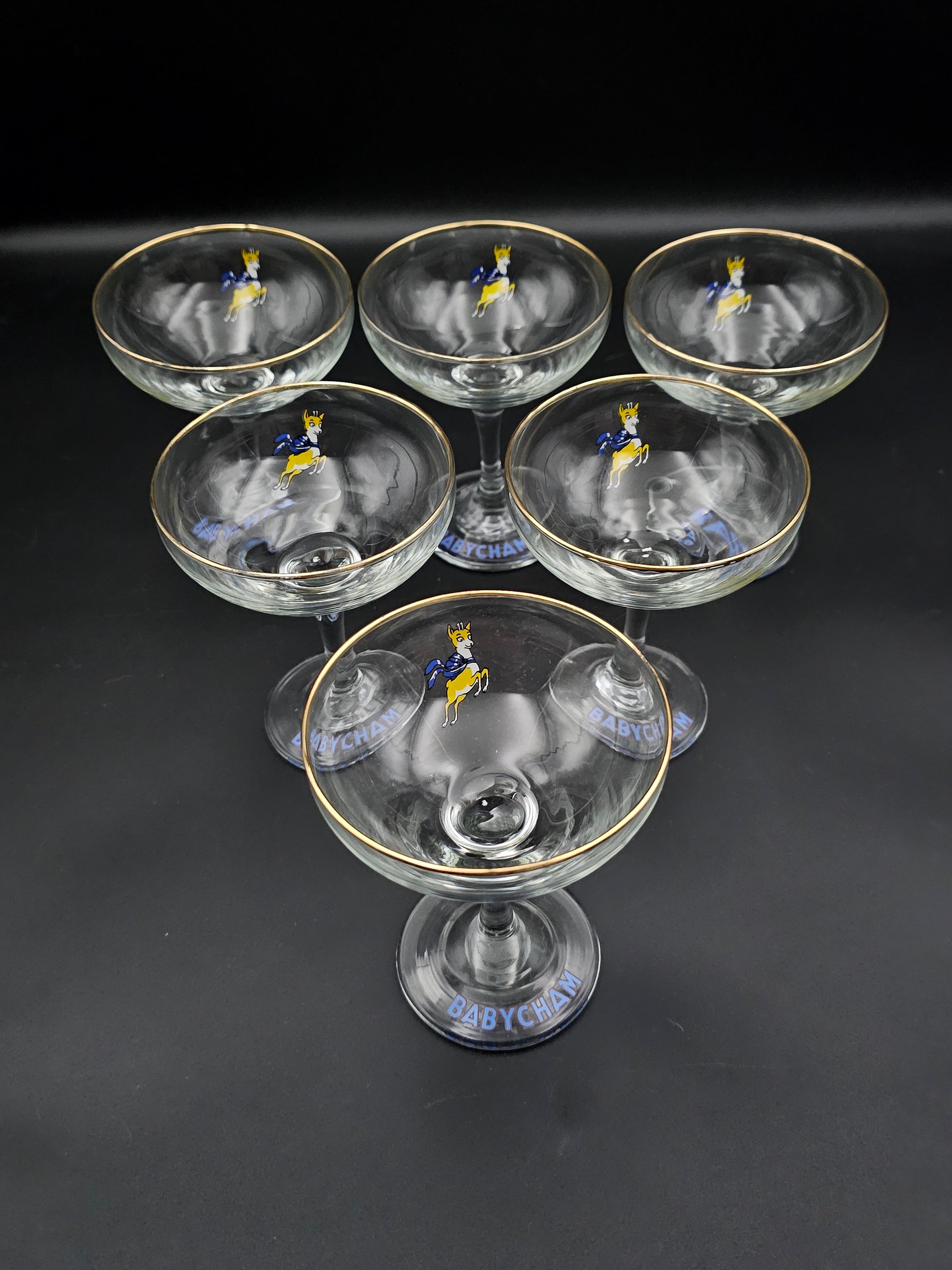 Impress your guests or gift the perfect present with this set of 6 vintage 1970's Baby Cham coupes featuring the yellow fawn bouncing with the blue and white scarf.