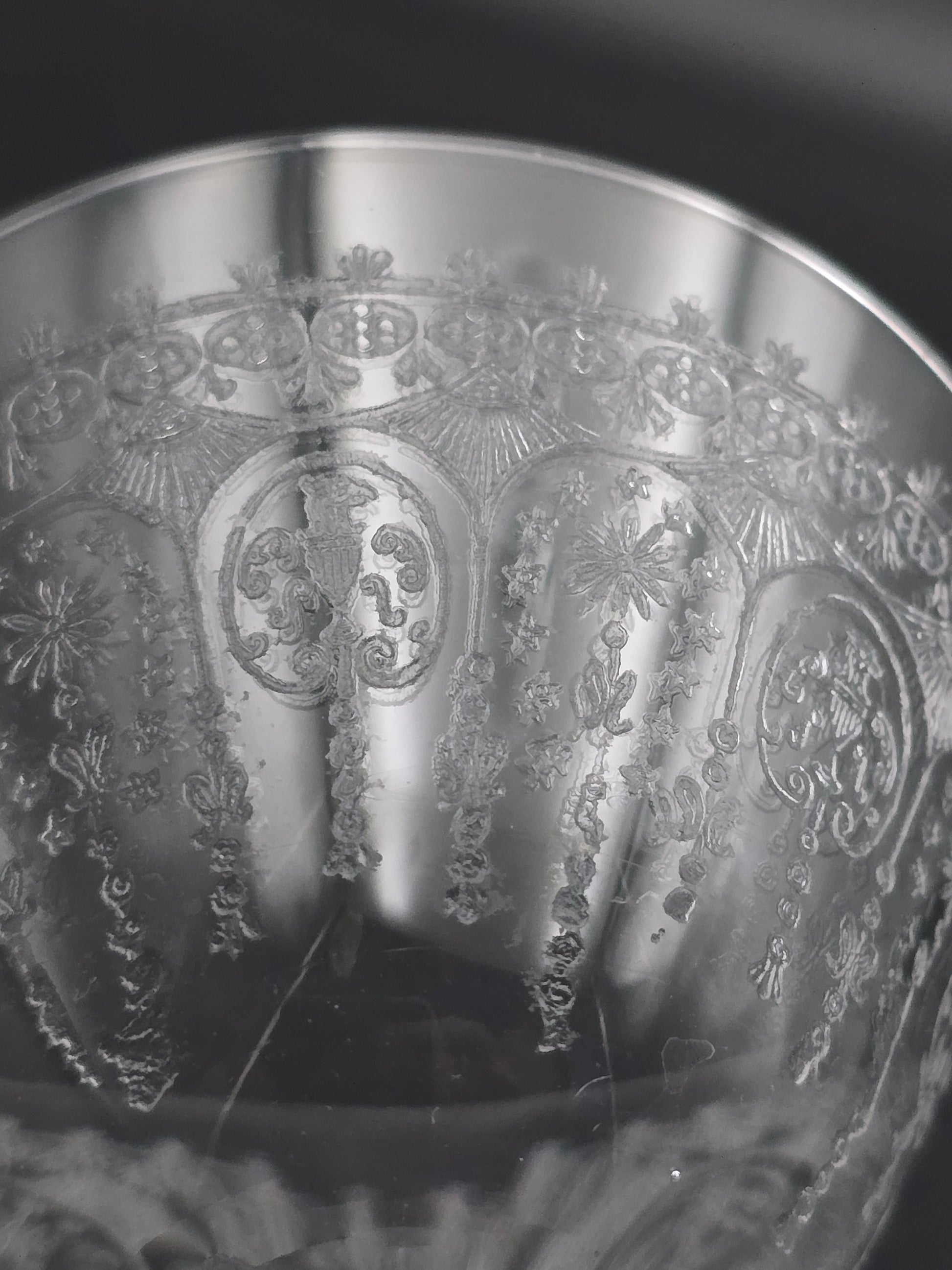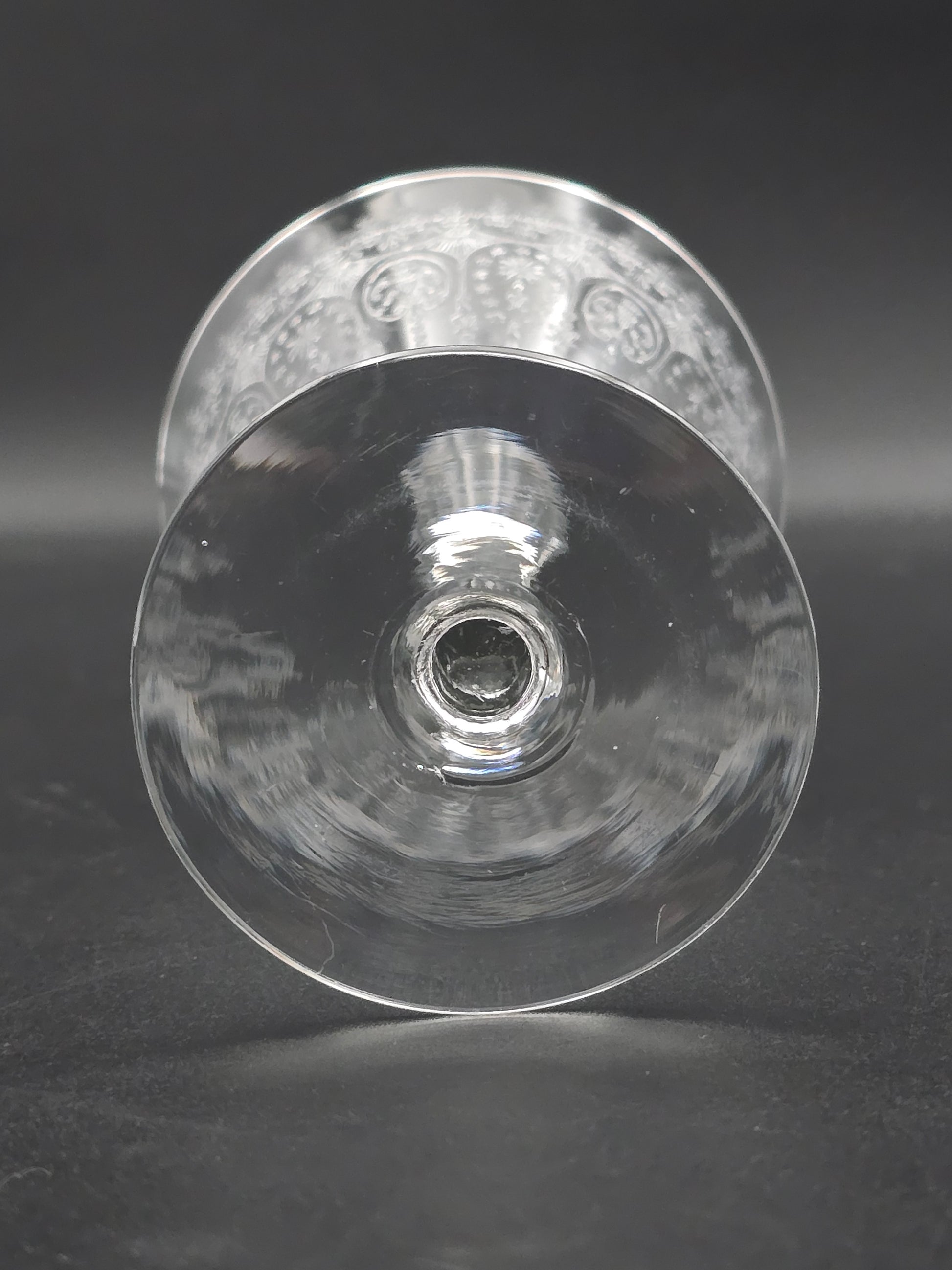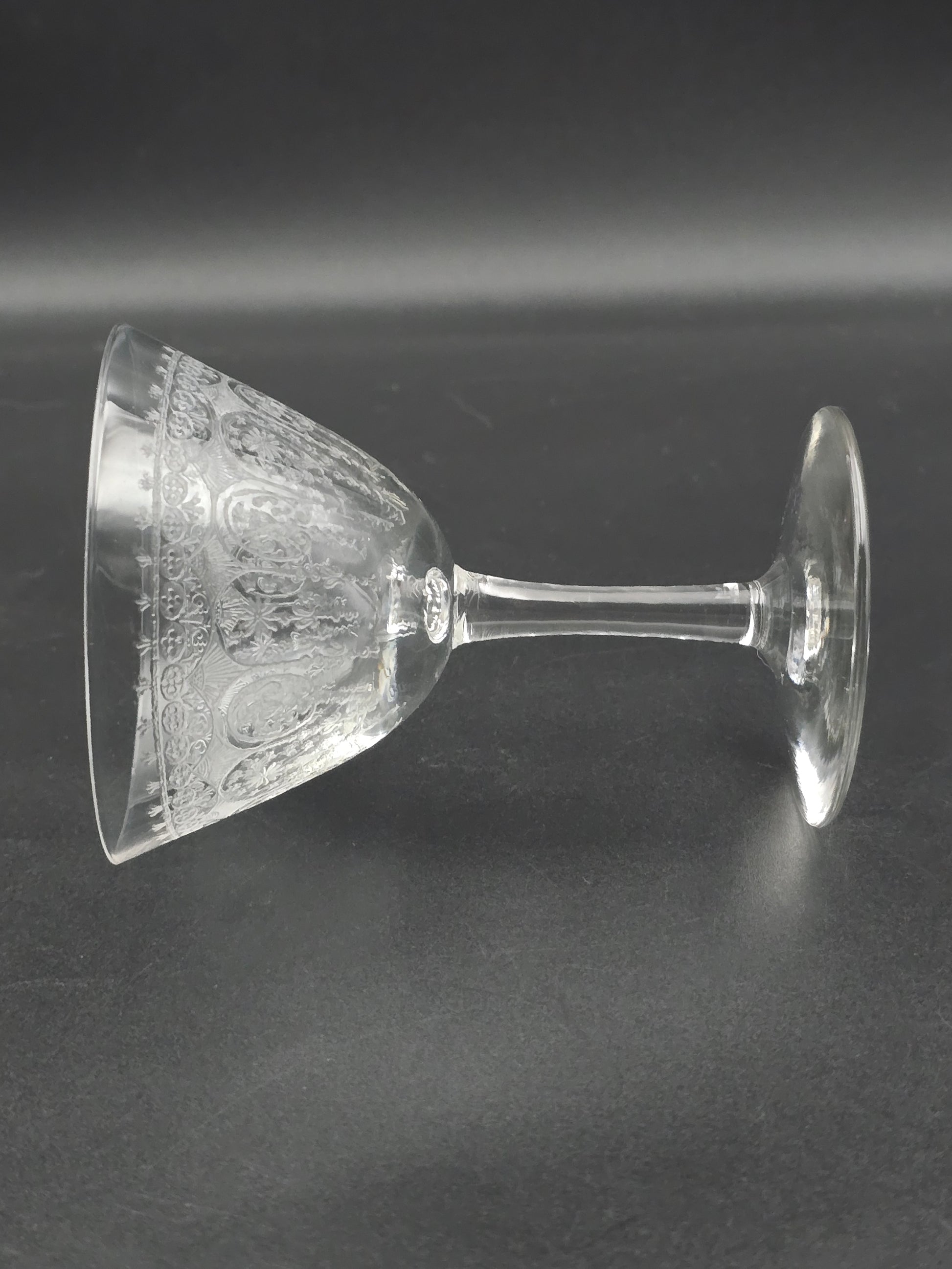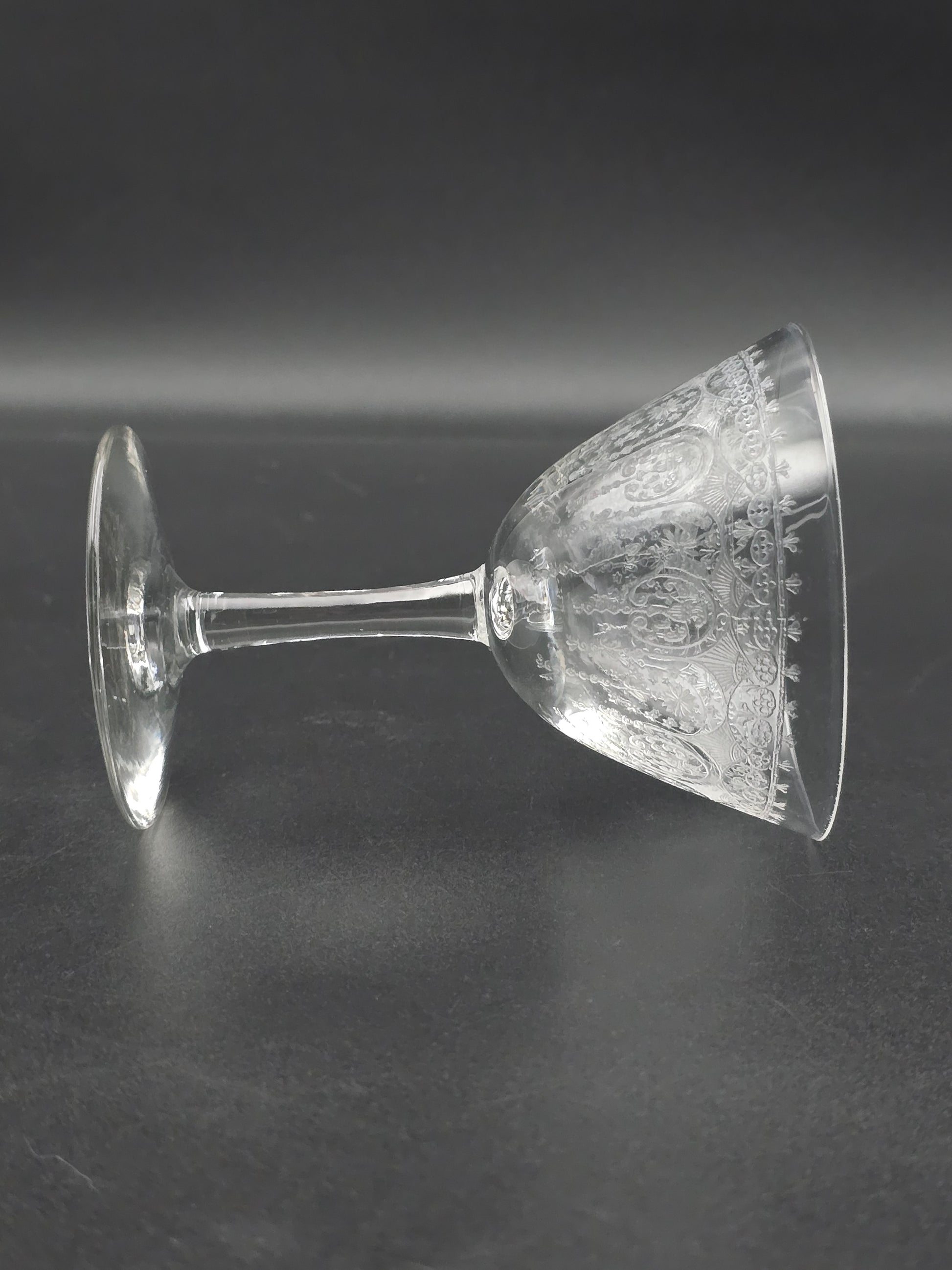 Set of 6 Beautifully etched crystal champagne coupes. 125ml. 11cm tall