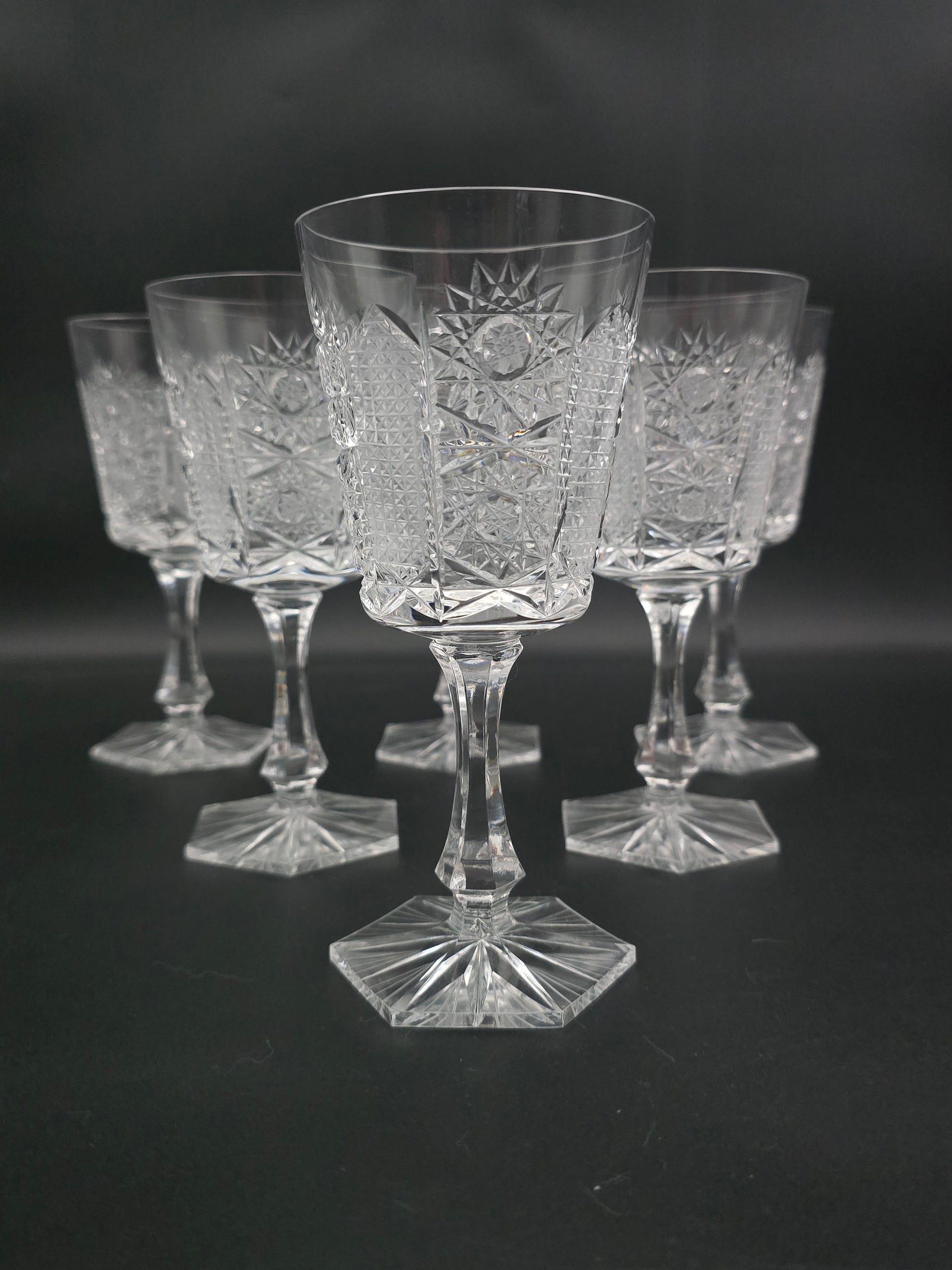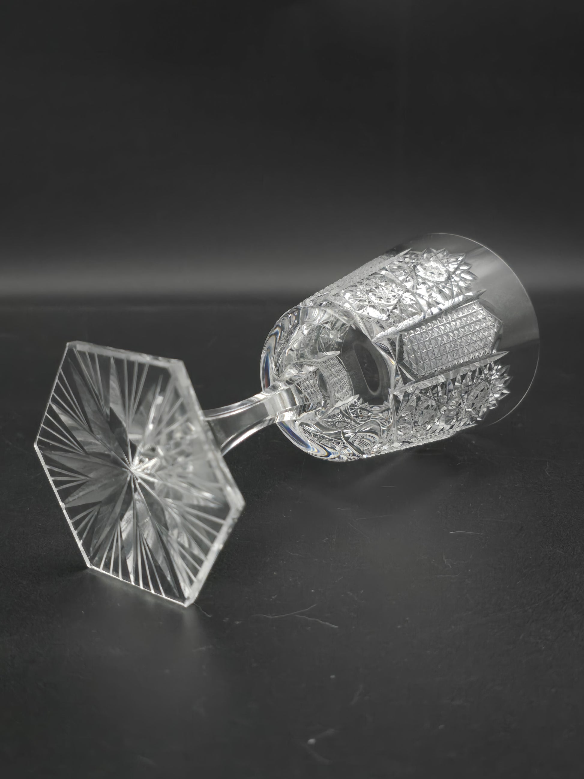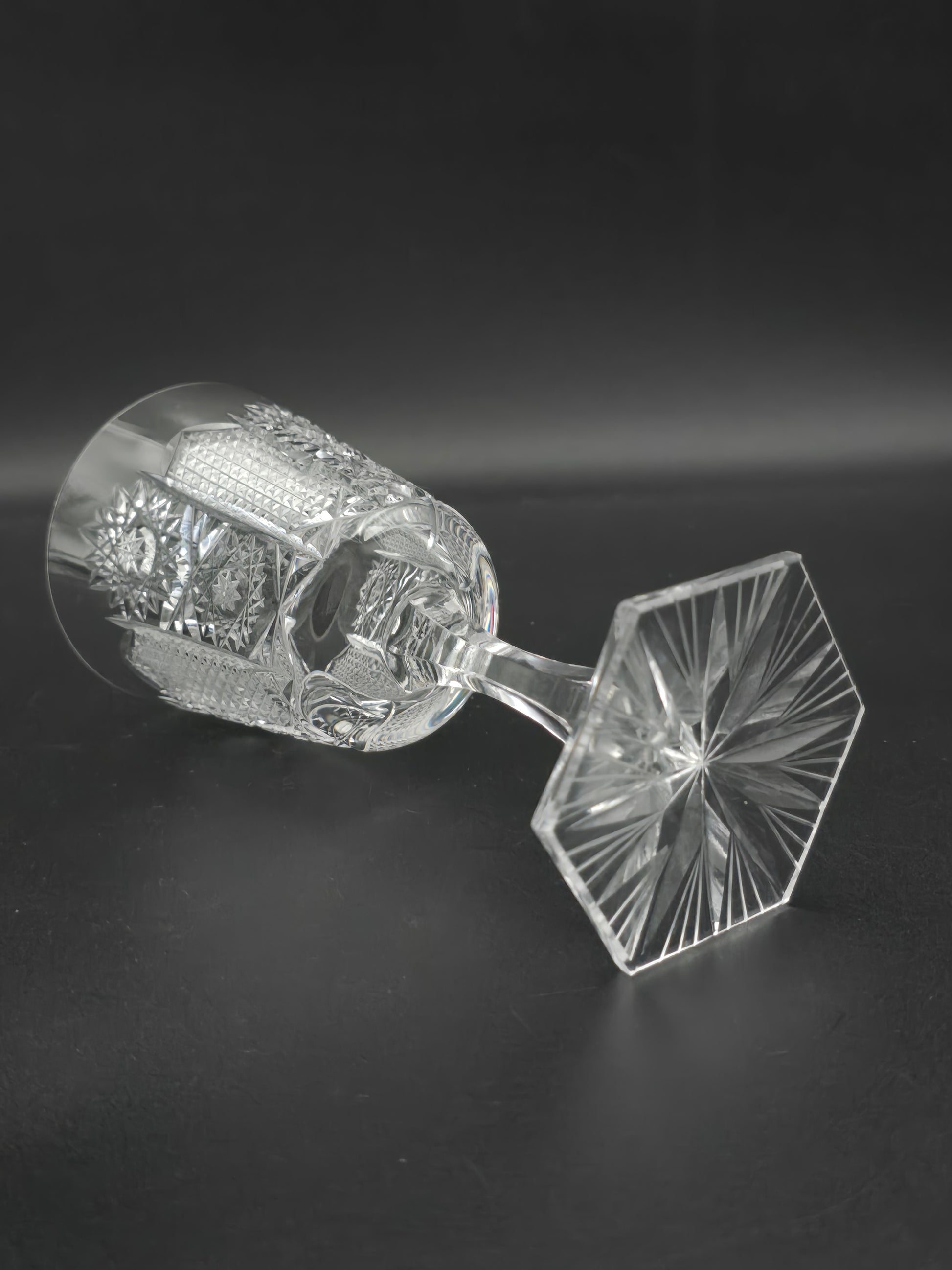 Set of 6 Bohemian vintage Crystal wine glasses with hexagonal base. 175ml