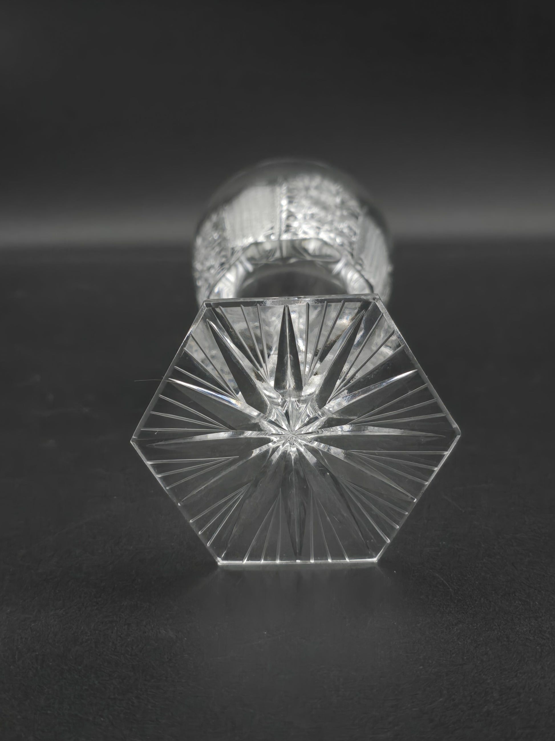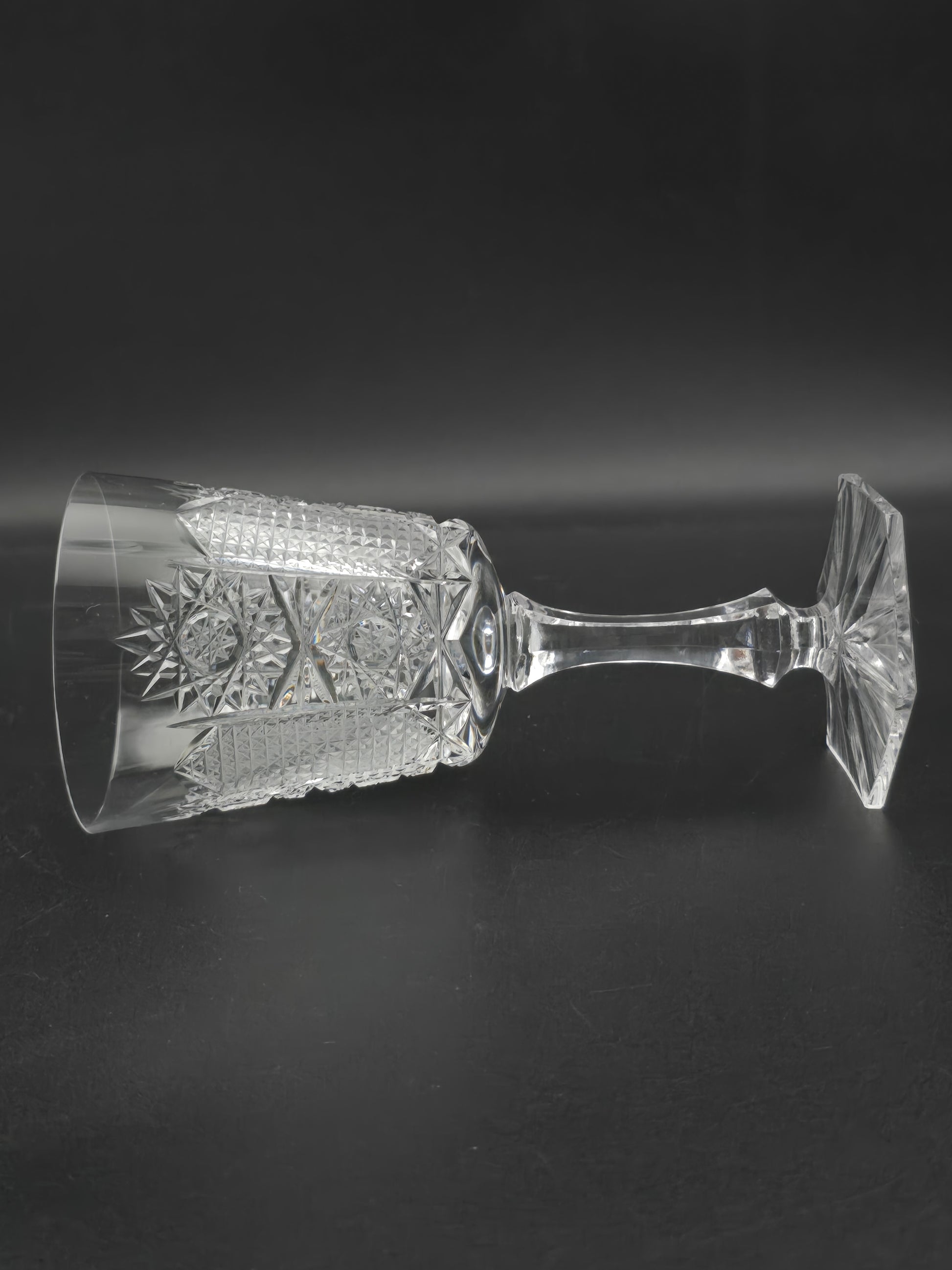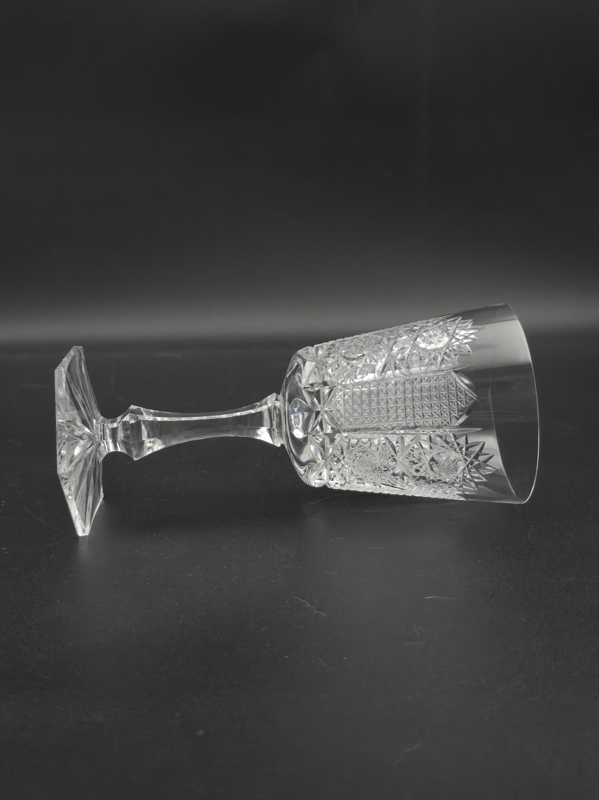 Set of 6 Bohemian vintage Crystal wine glasses with hexagonal base. 175ml
