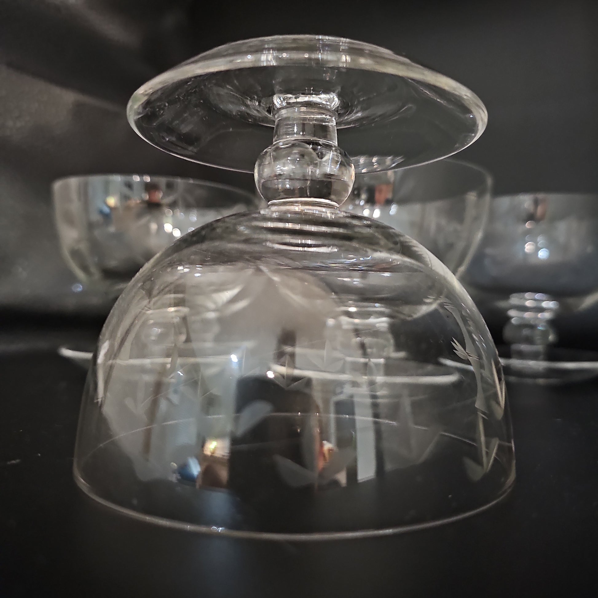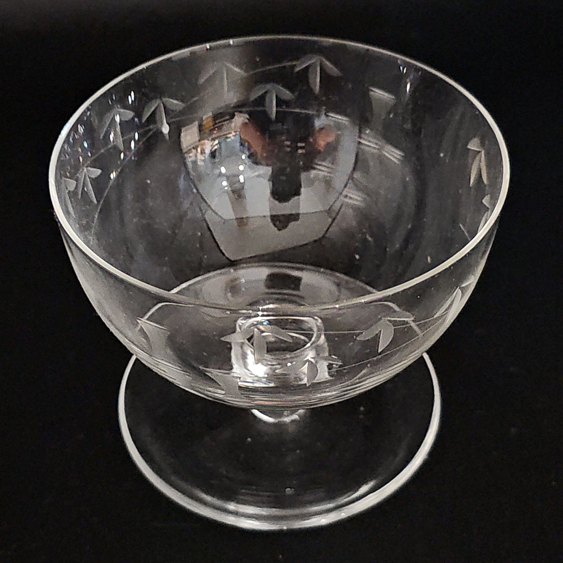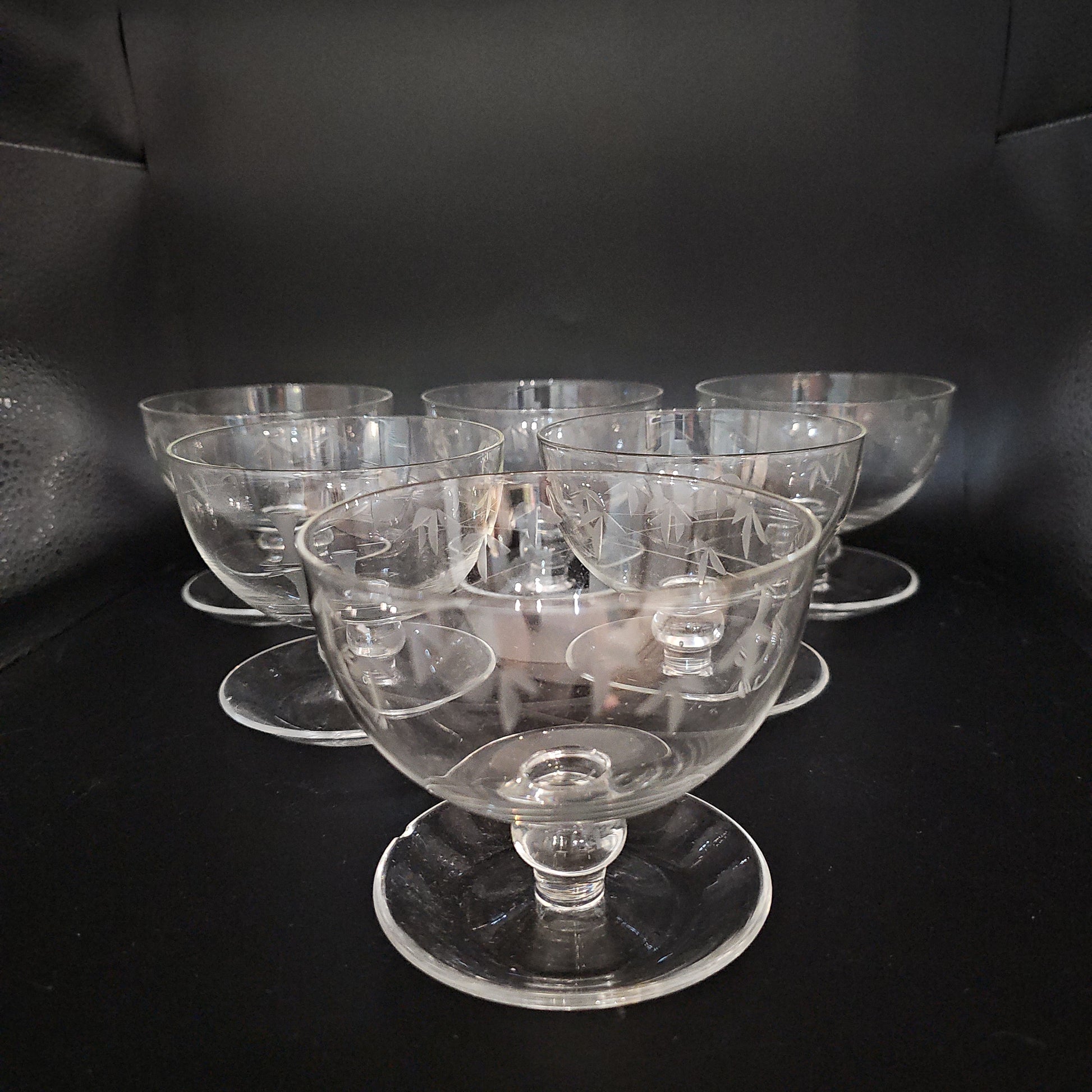 Full set of 6 Vintage Noritake etched bamboo crystal serving bowls, ideal for ice cream or as a starter bowl for a prawn cocktail etc.