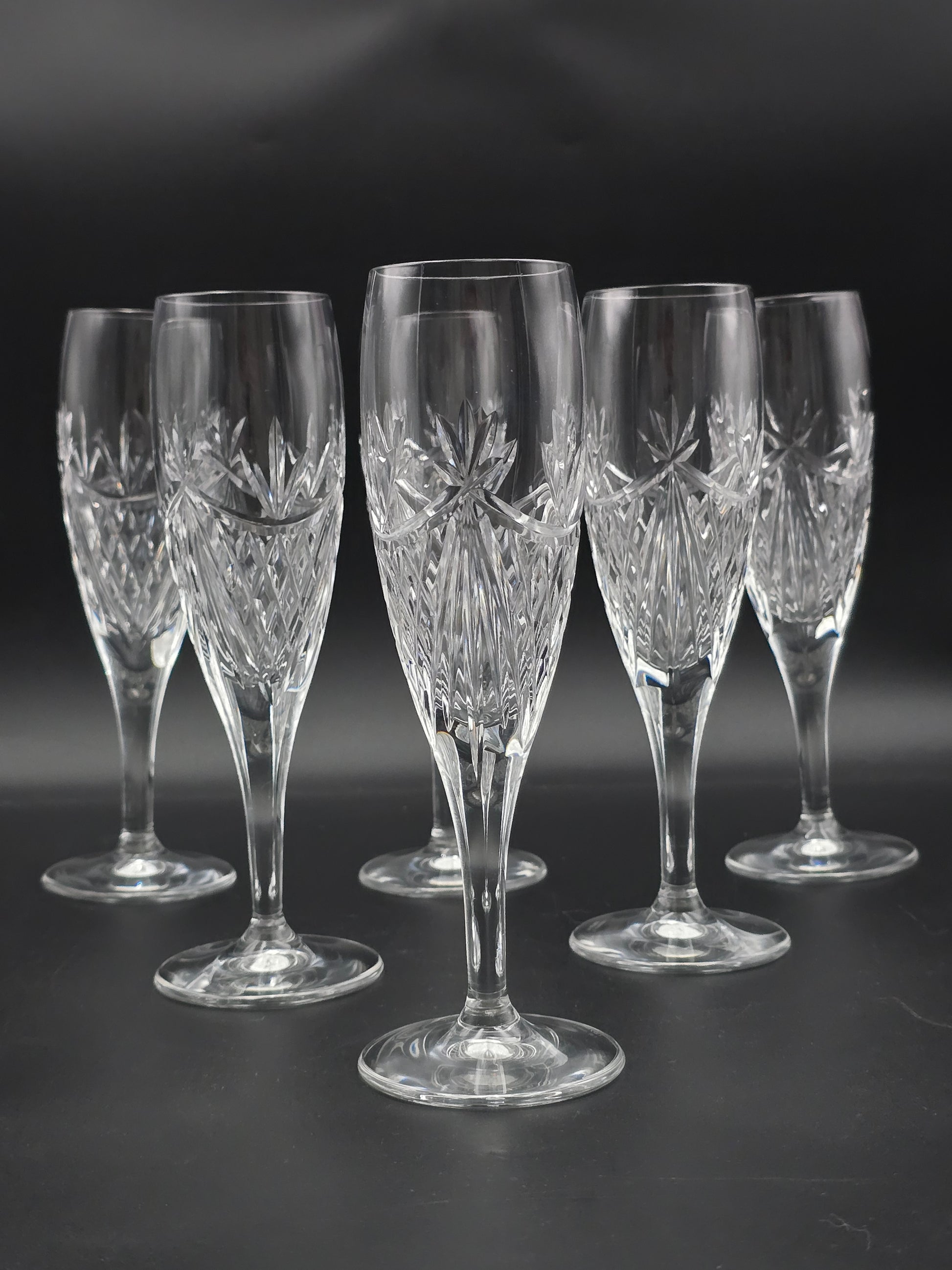 Set of 6 Edinburgh Crystal Beauly Pattern Champagne Flutes – 20 cm, 175 ml, Boxed, Made in Scotland