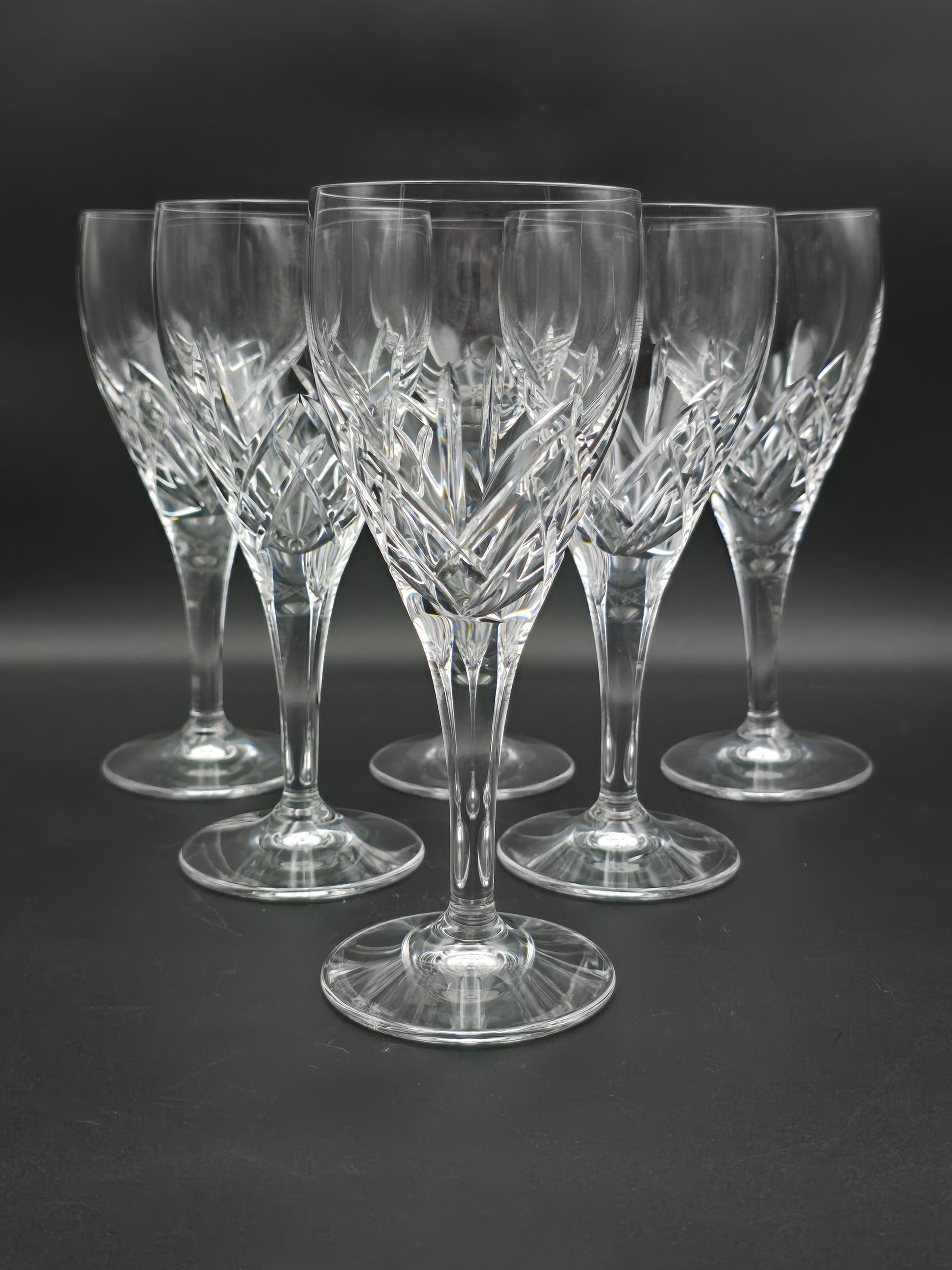 Set of 6 Edinburgh Crystal Broughton Pattern large wine glasses 260ml. 19cm tall.