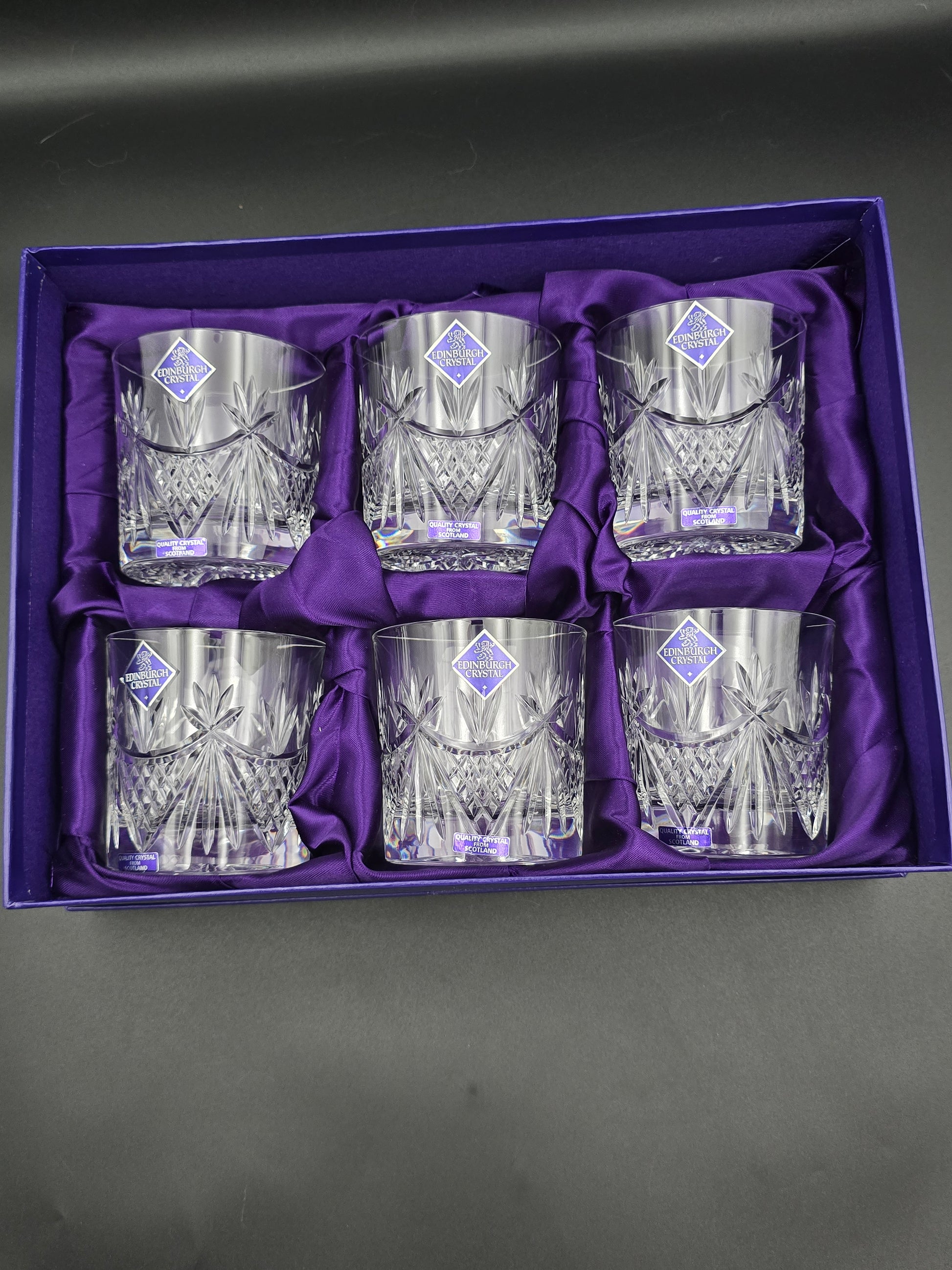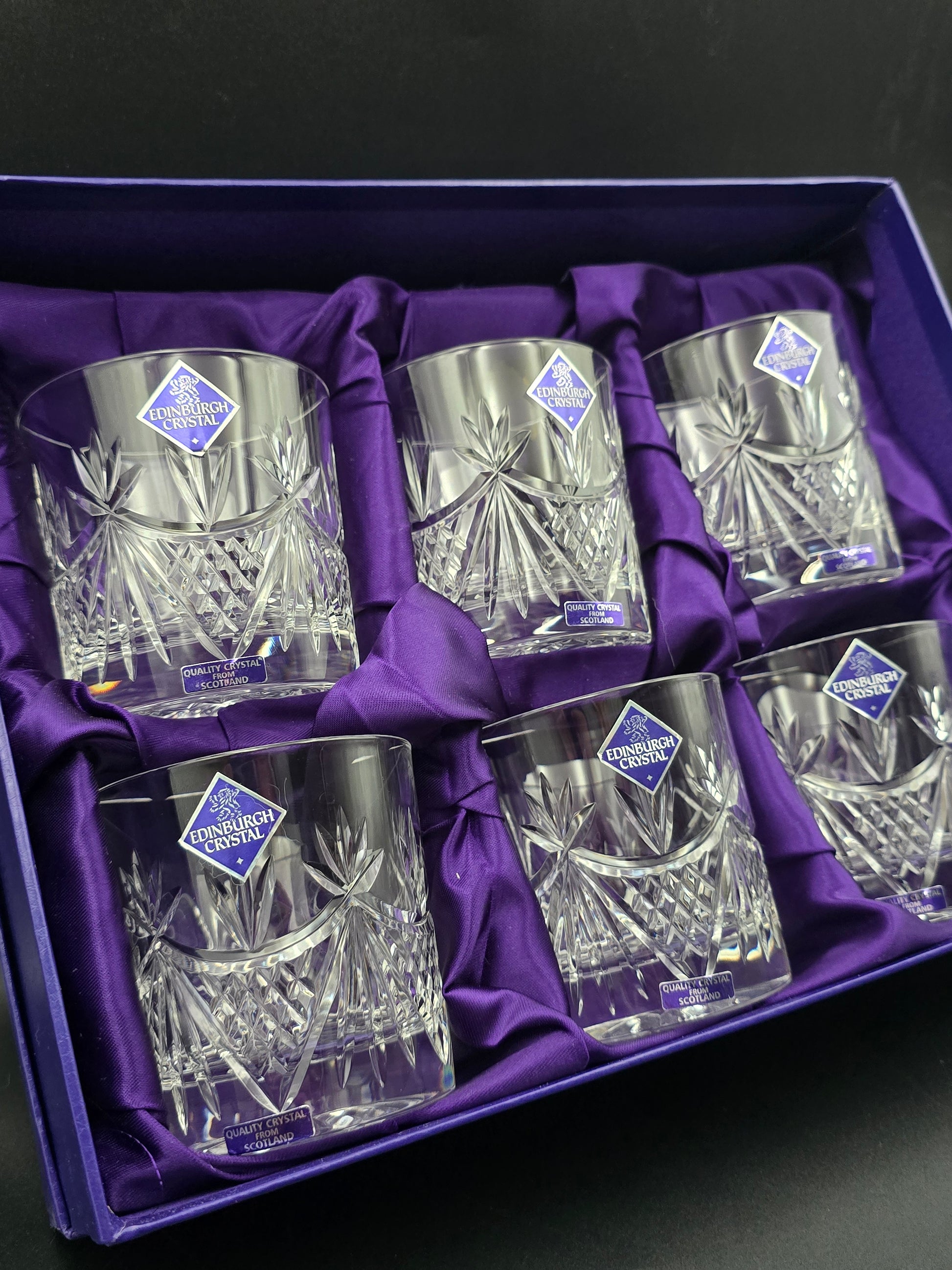 Set of 6 Edinburgh Crystal EDI41 Pattern Crystal Whisky Tumblers. 10oz. Boxed.