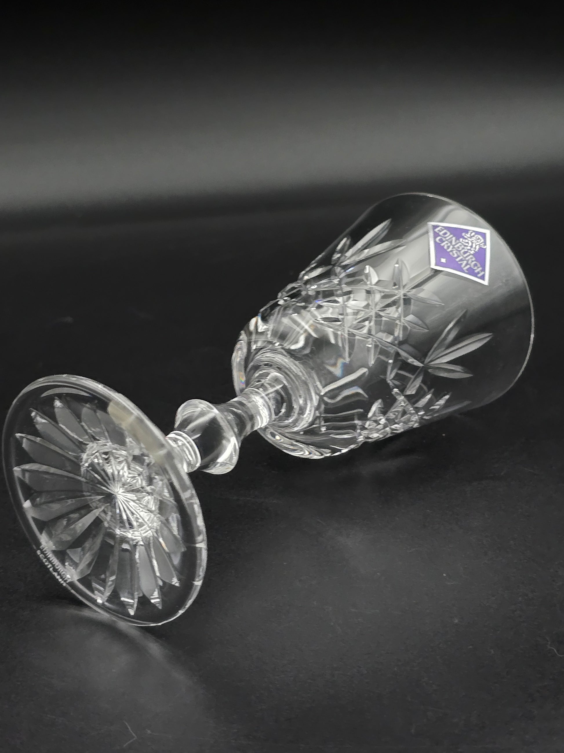 Set of 6 Edinburgh Crystal Lomond‑Pattern Port/Wine Glasses – Knopped Stem, Original Stickers & Box – 125 ml