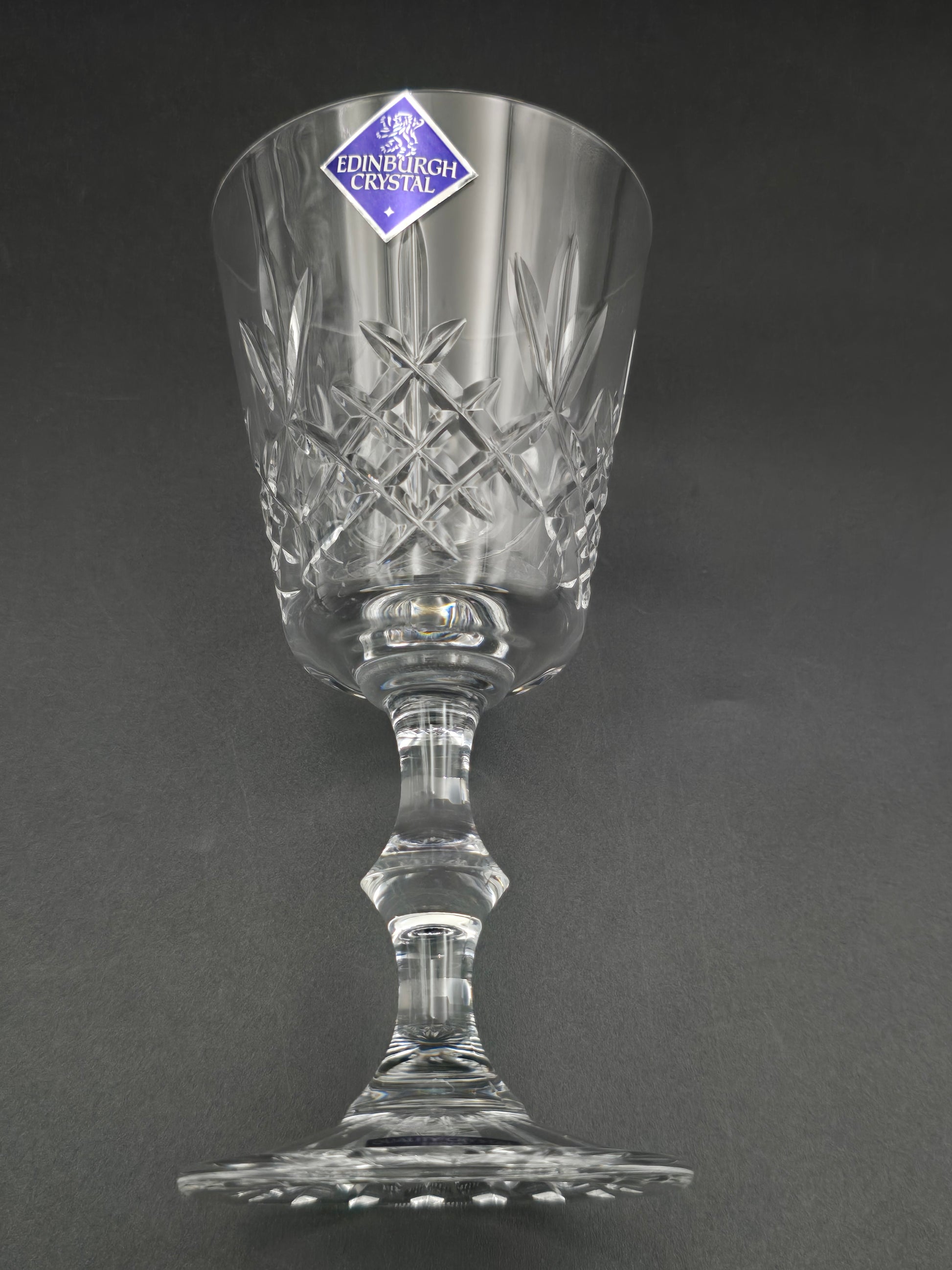 This timeless design features a classic star-cut base, a graceful knopped stem, and a flared bowl with clean, traditional lines — unmistakably Edinburgh Crystal, handcrafted in Scotland before production ceased in 2006.