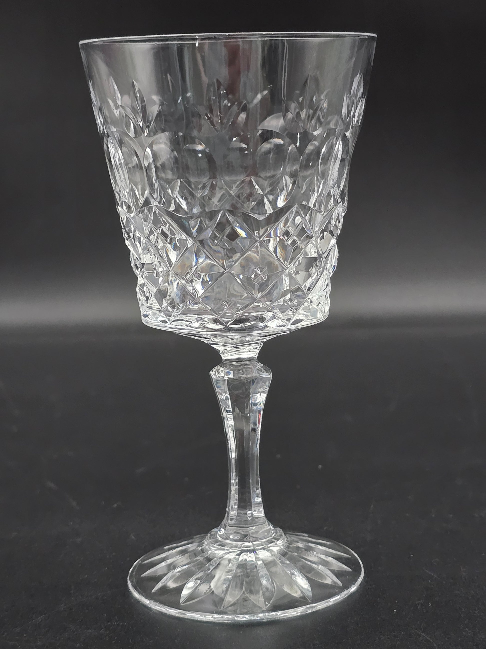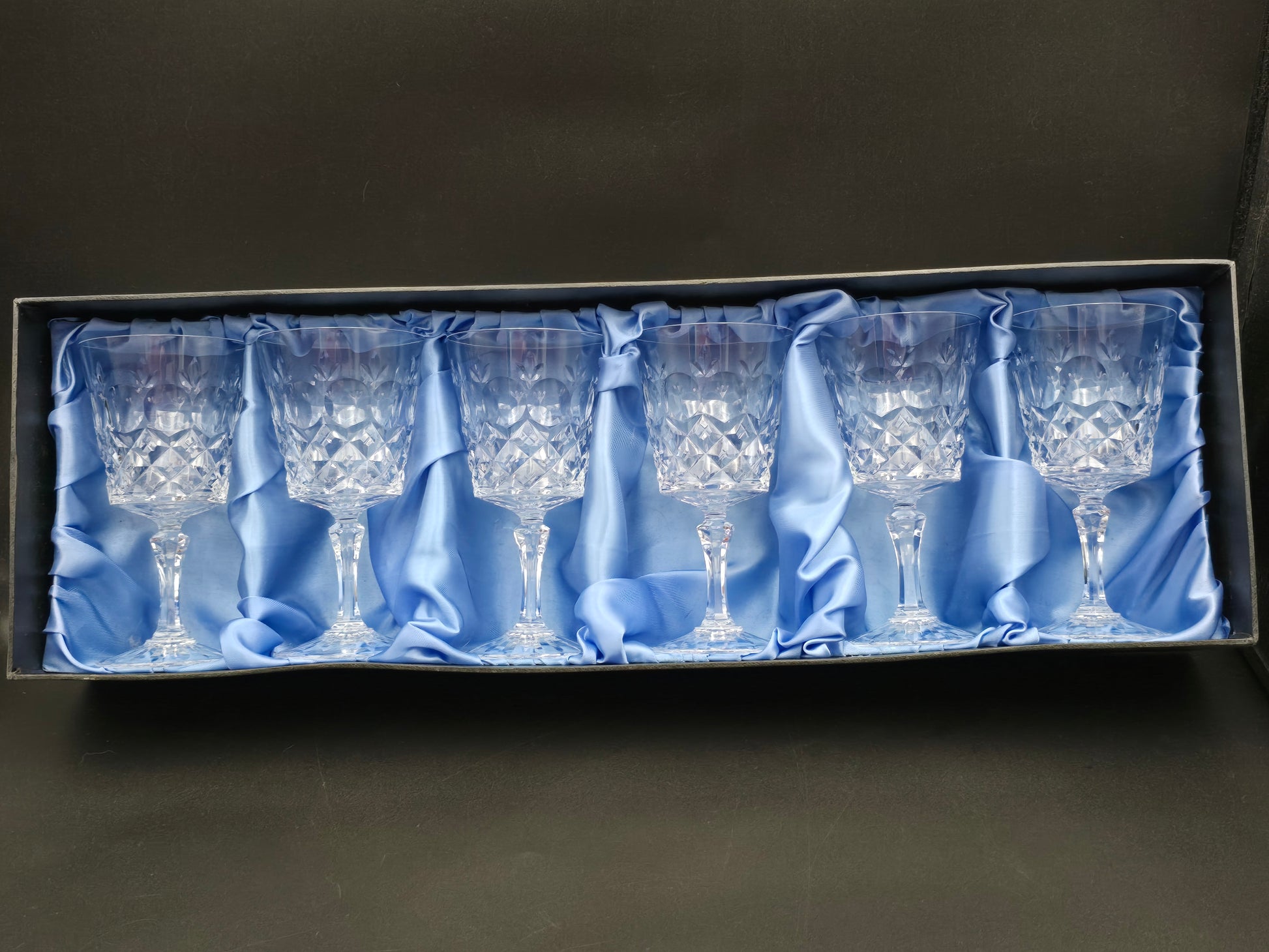 Elevate your wine-drinking experience with our Set of 6 English hand cut crystal wine glasses.