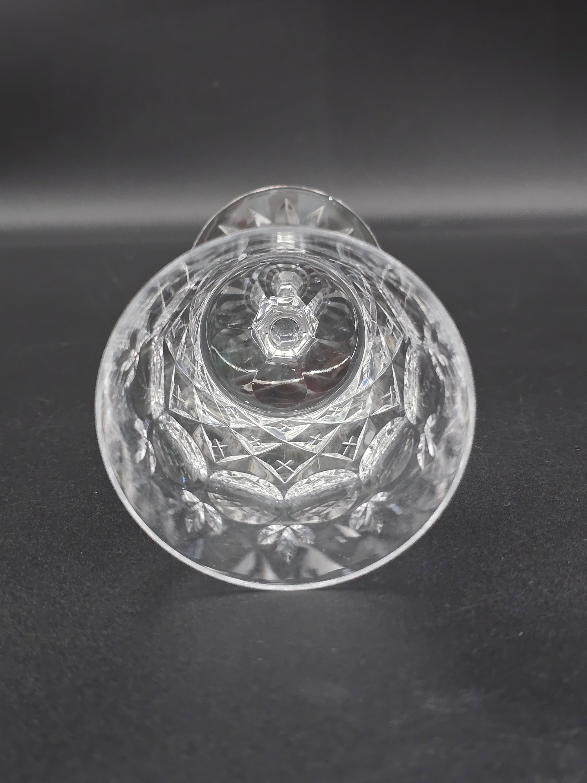 Hand crafted in England from lead crystal, each glass features a beautiful cut thumbprint design on the bowl and a unique hexagonal stem leading to a star pattern base.