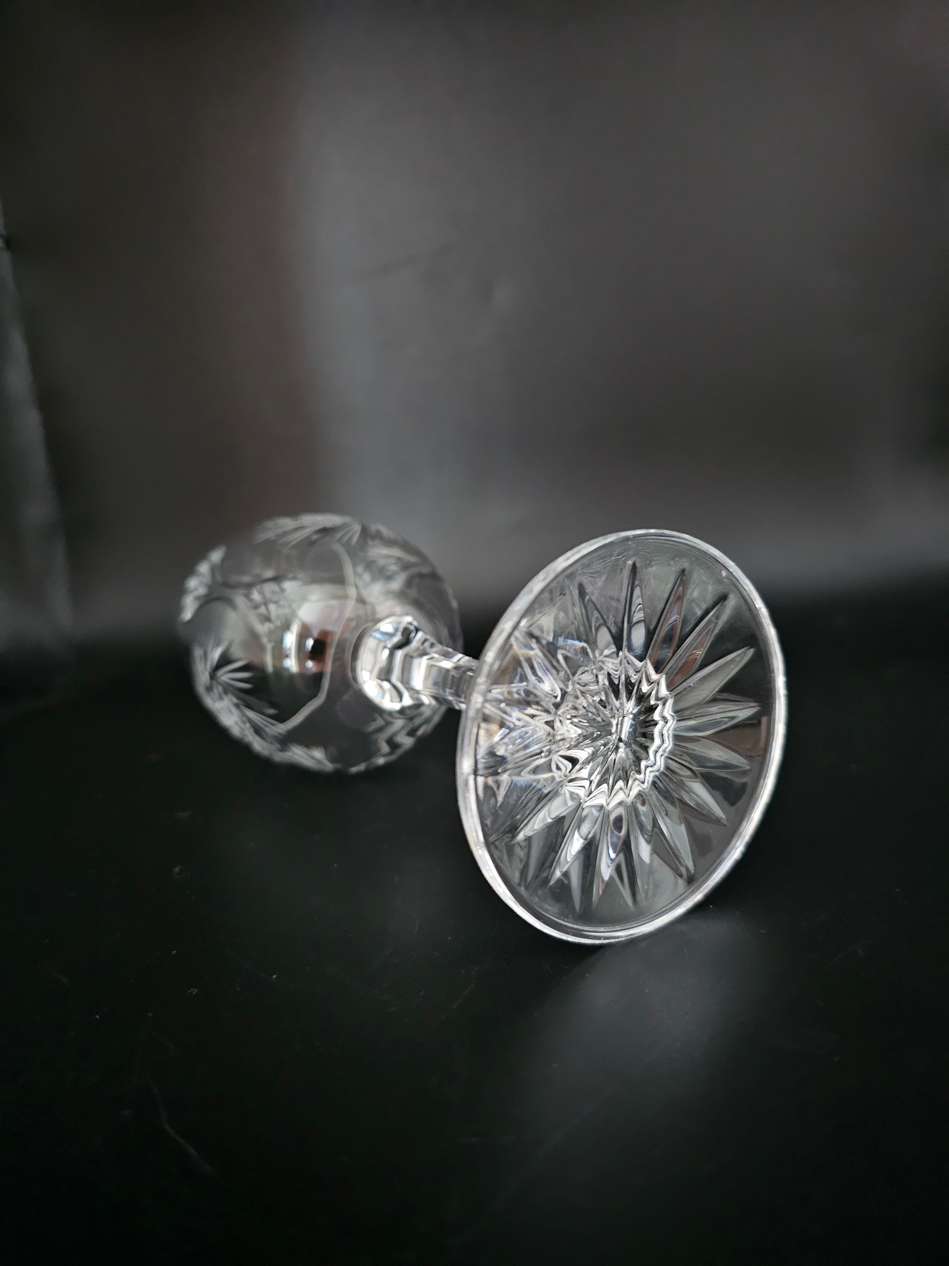 Expertly crafted, this Set of 6 Large Crystal Wine Glasses boasts a classic tapered stem, leading to a star pattern base, adding a touch of elegance to your table setting.