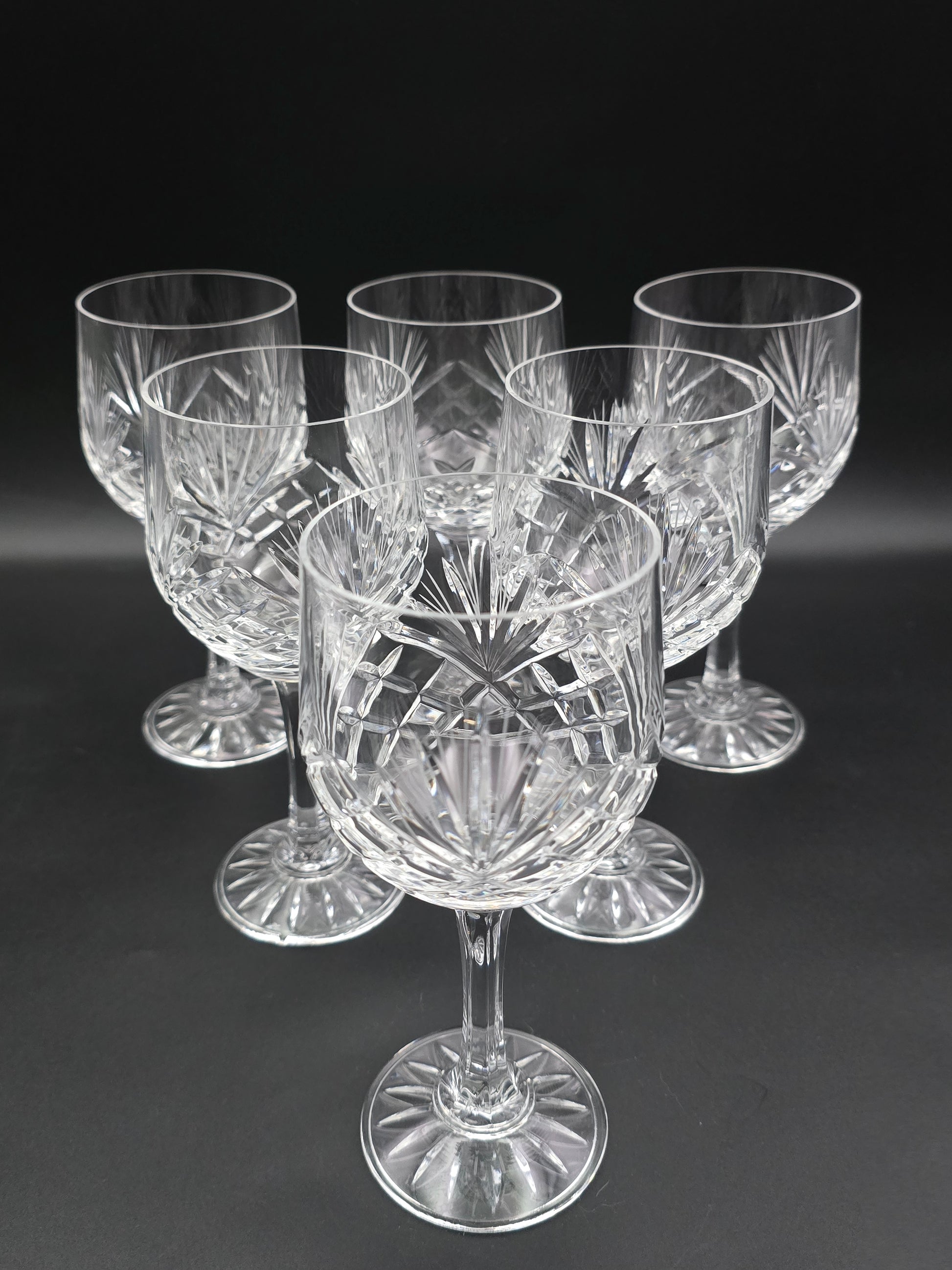 Set of 6 Large Vintage Crystal wine glasses. 300ml