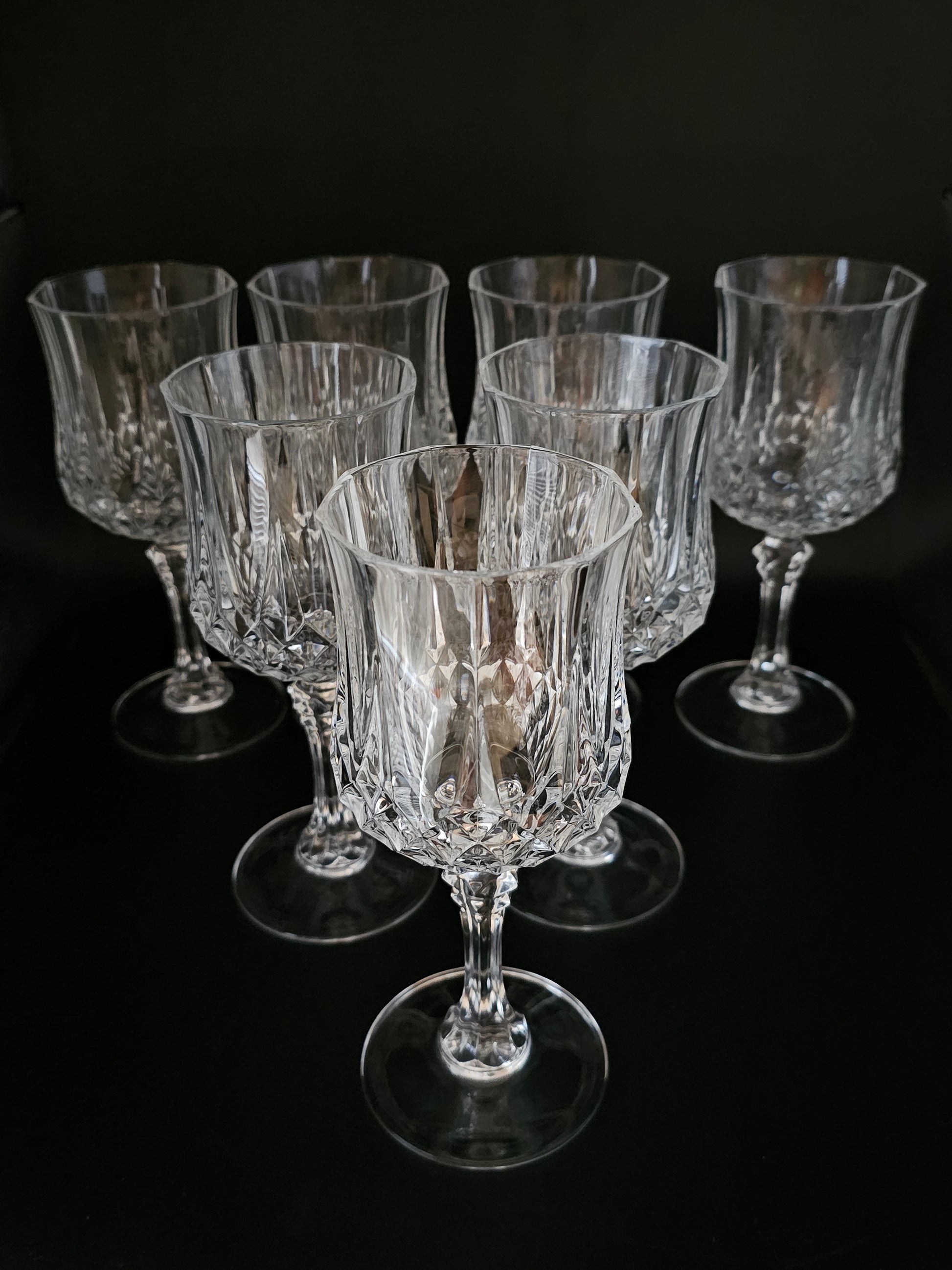 Set of 6.(Plus 1 free!) Tall, Large Crystal Wine Glasses. 18cm tall. 250ml.