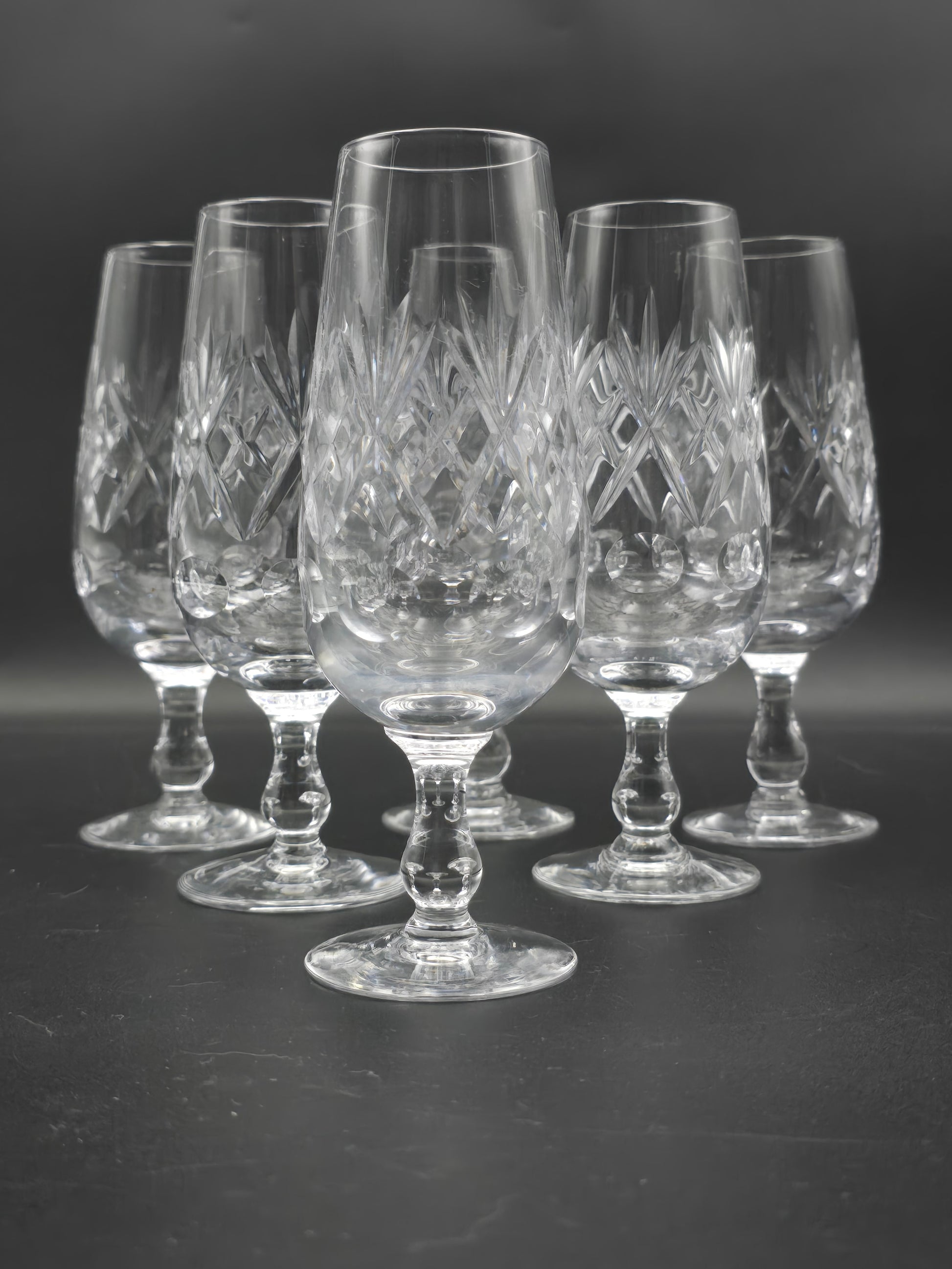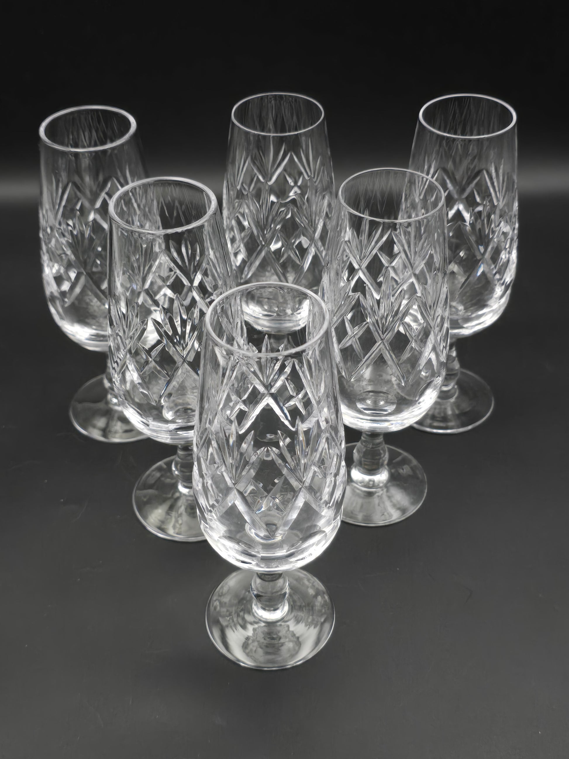 Set of 6 Royal Doulton Georgian Pattern short stemmed Crystal Champagne Flutes. 200ml