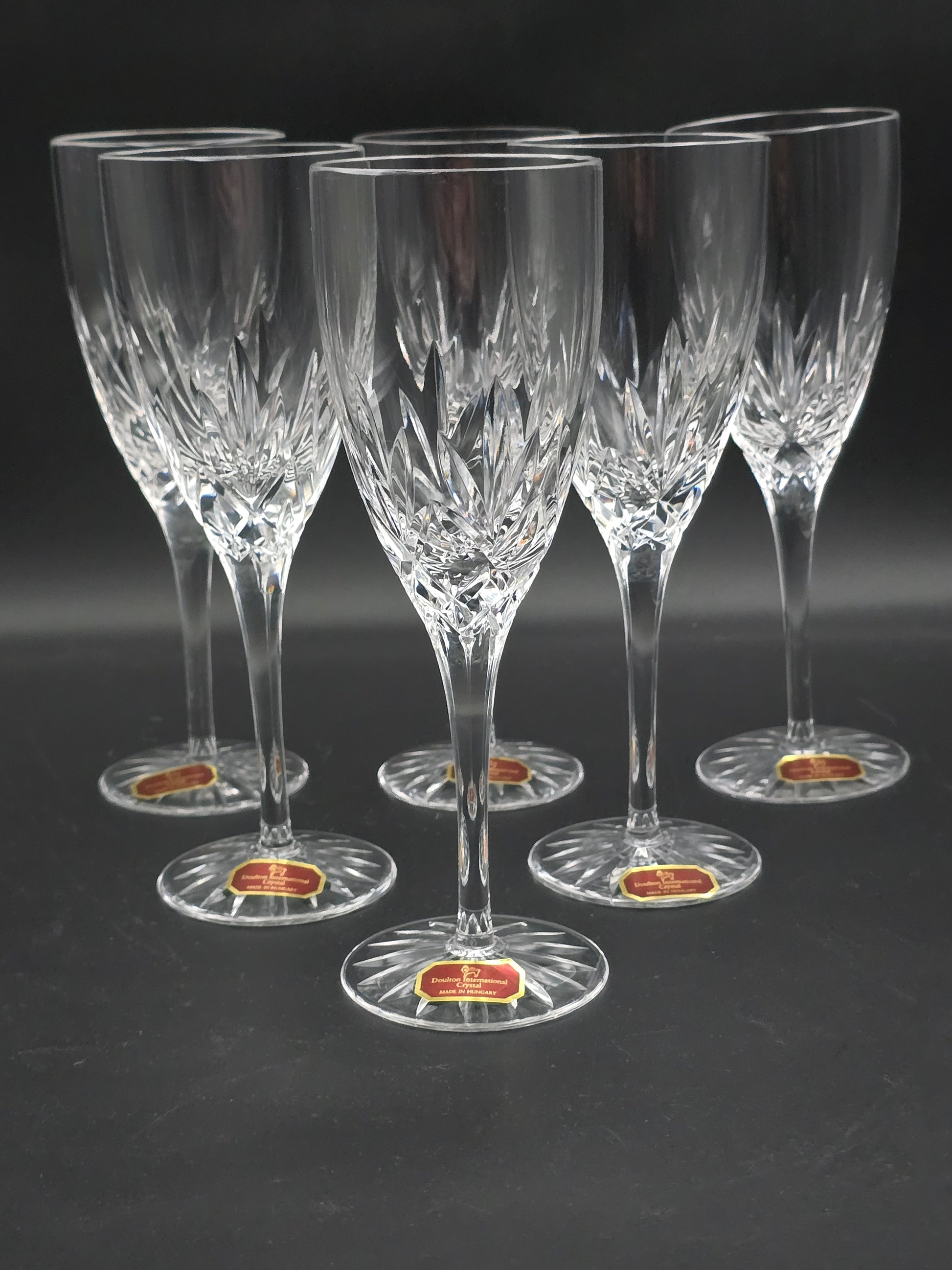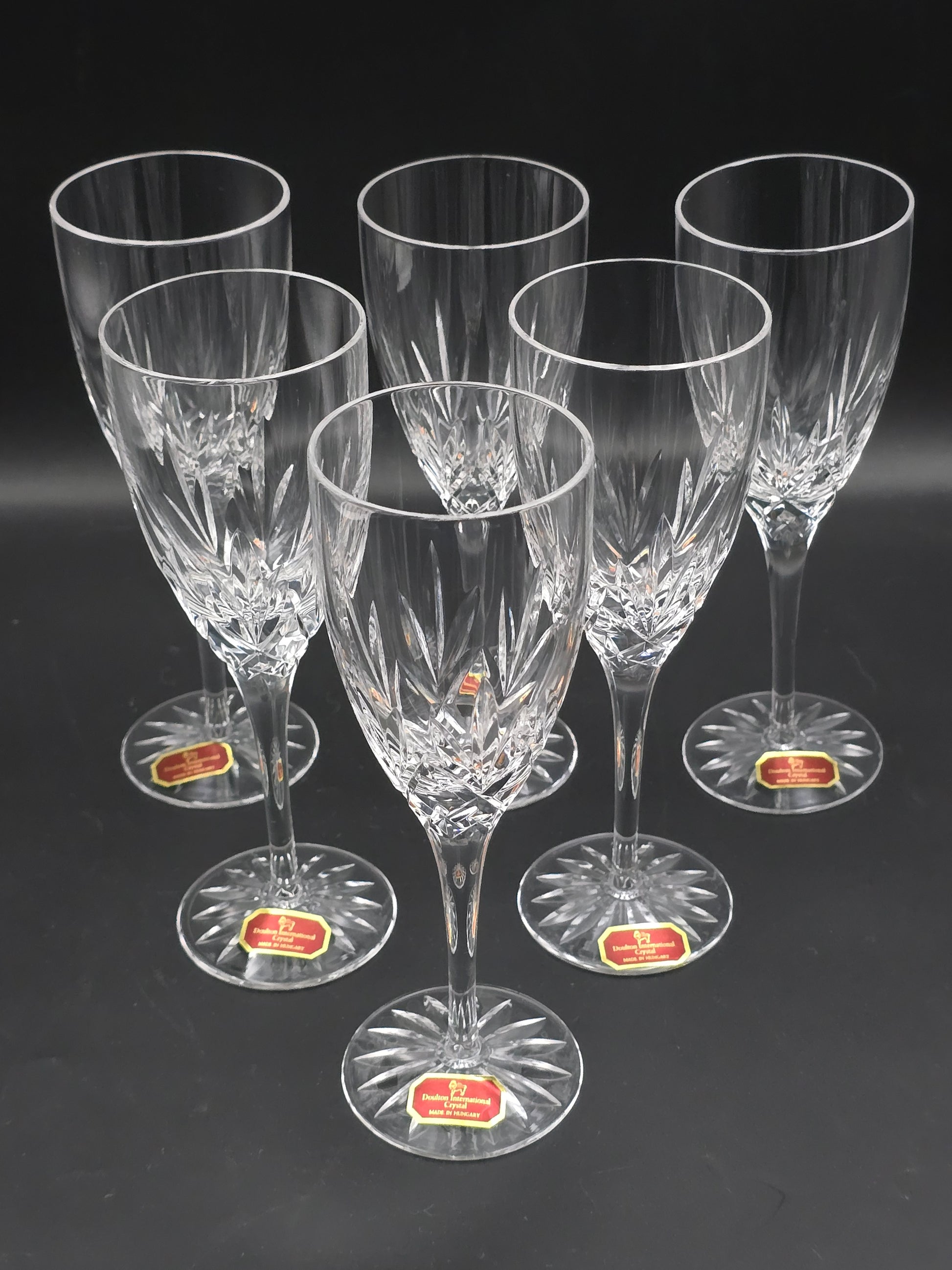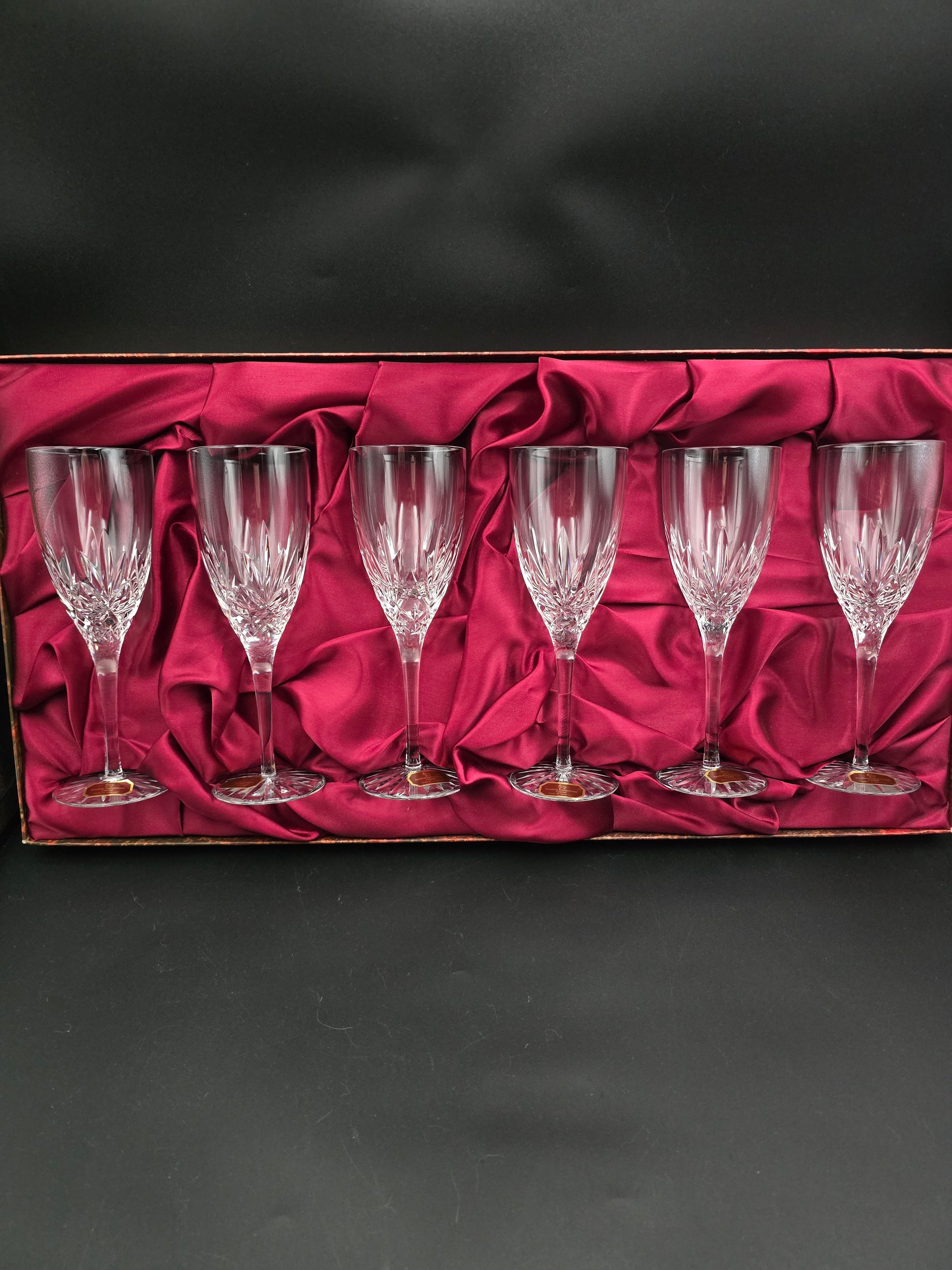 Set of 6 Royal Doulton International Crystal Champagne Flutes. Boxed 150ml. 18.5cm tall.