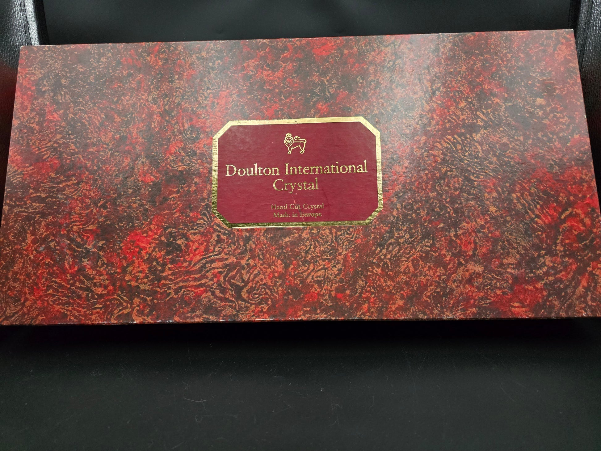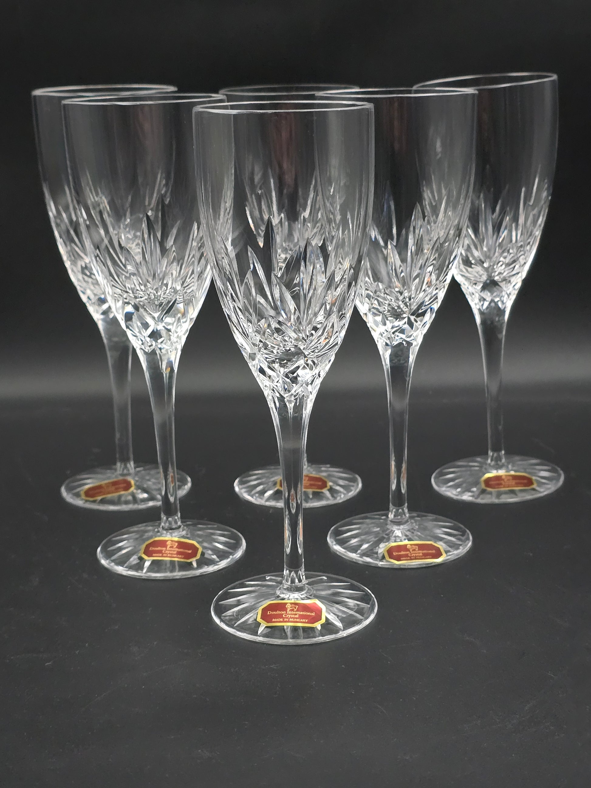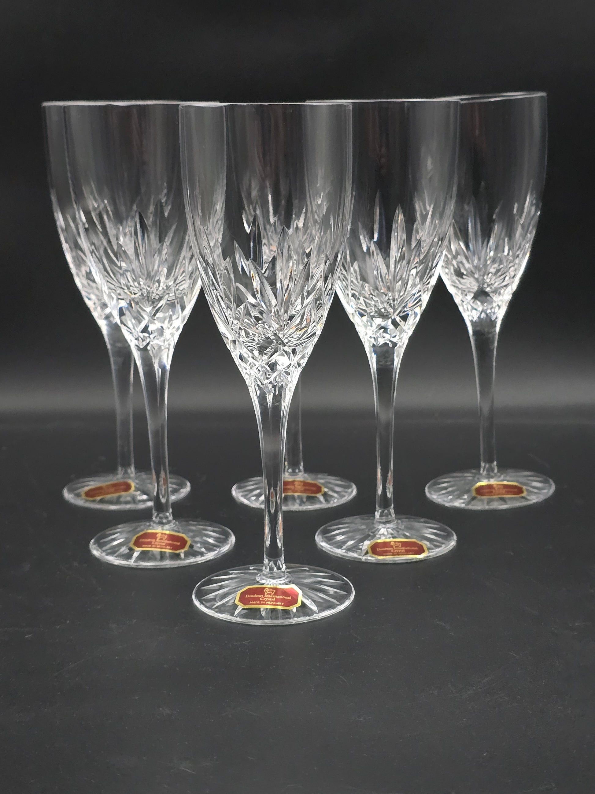 Set of 6 Royal Doulton International Crystal Champagne Flutes. Boxed 150ml. 18.5cm tall.