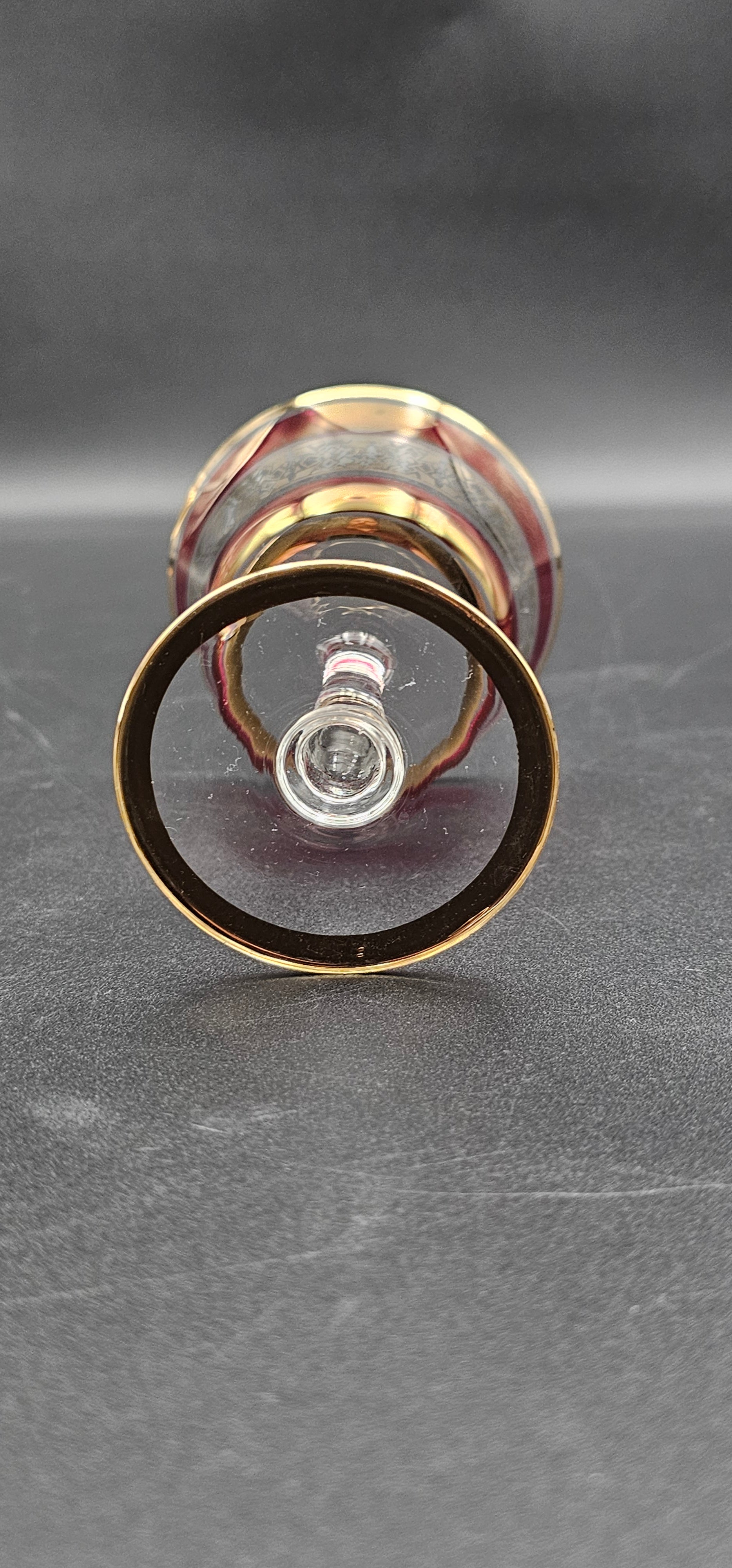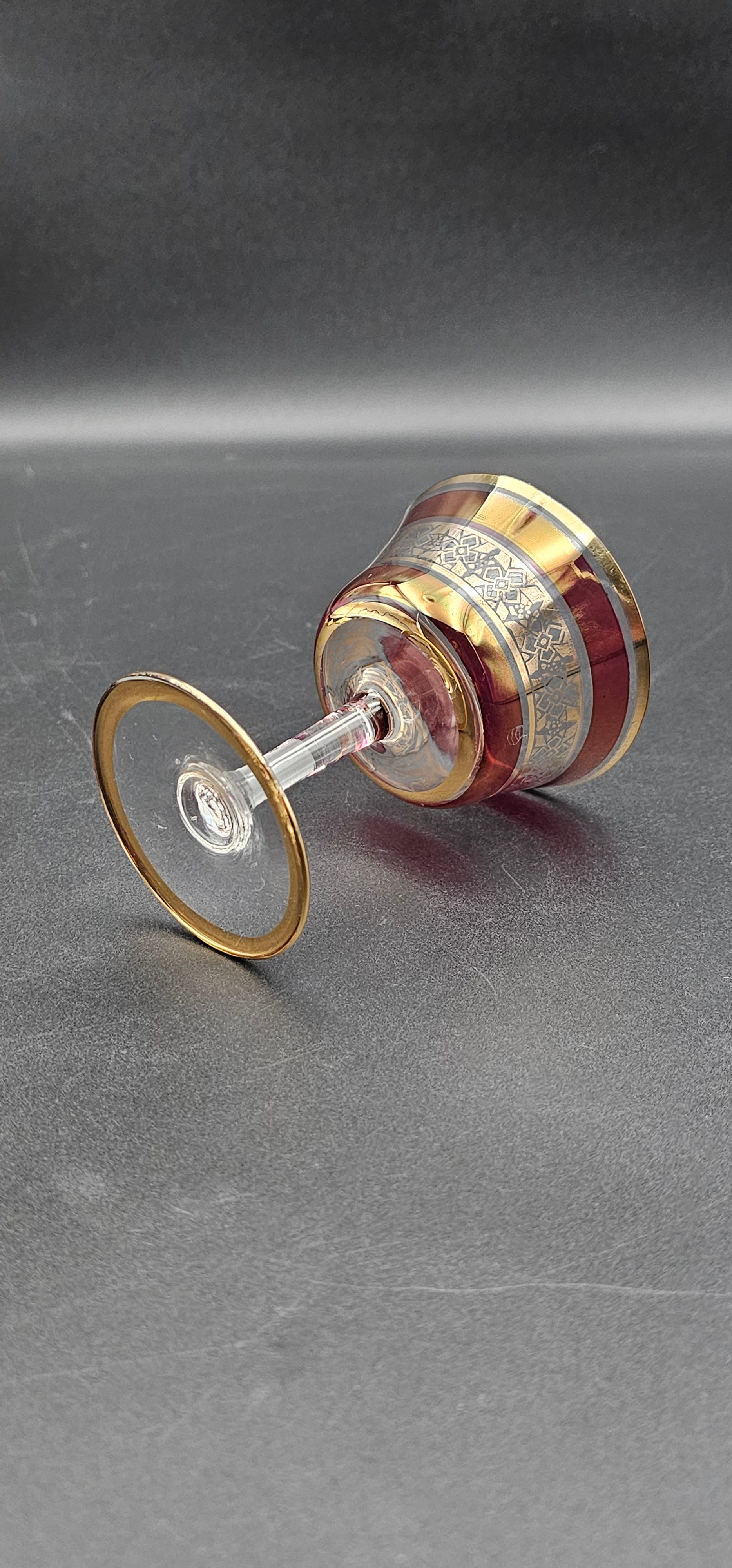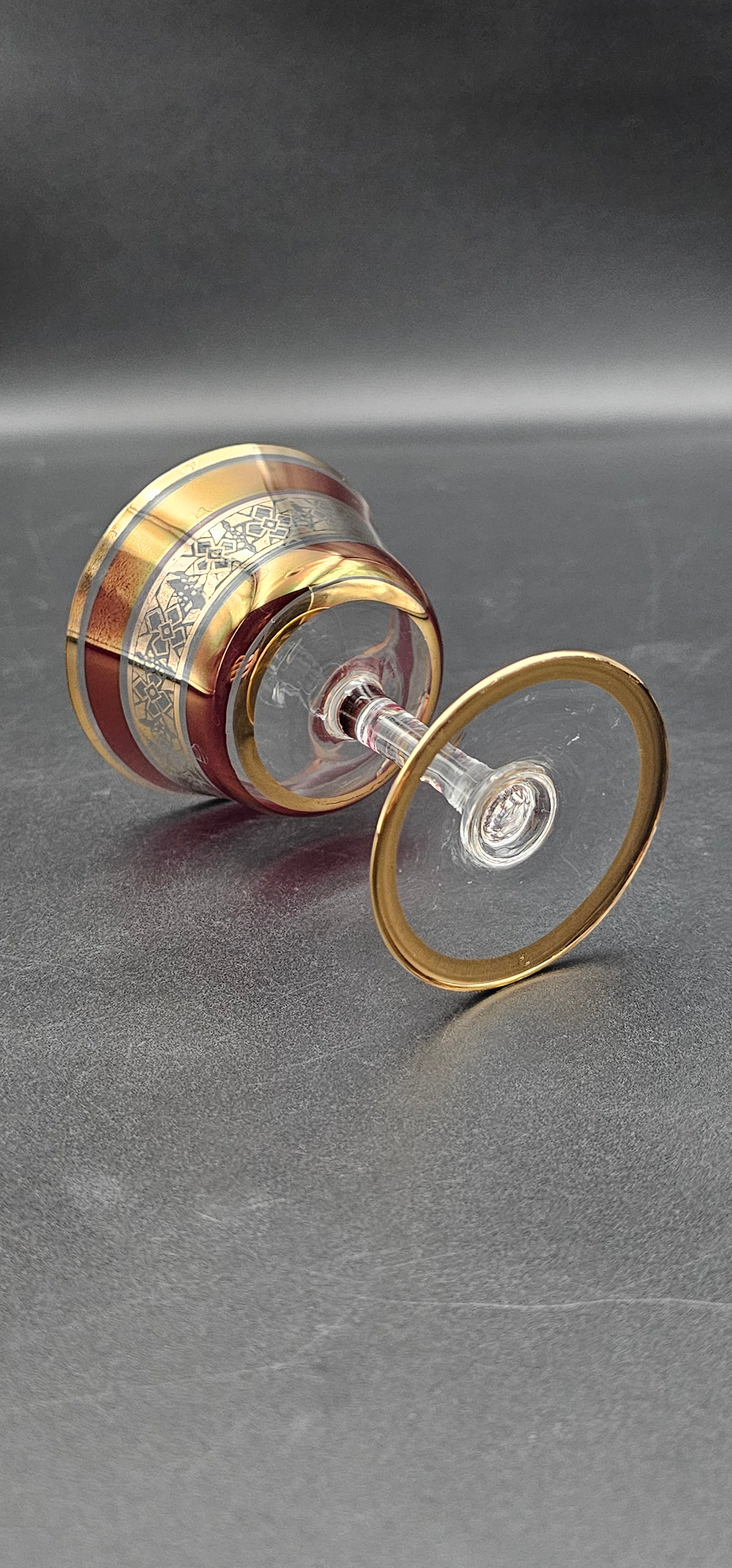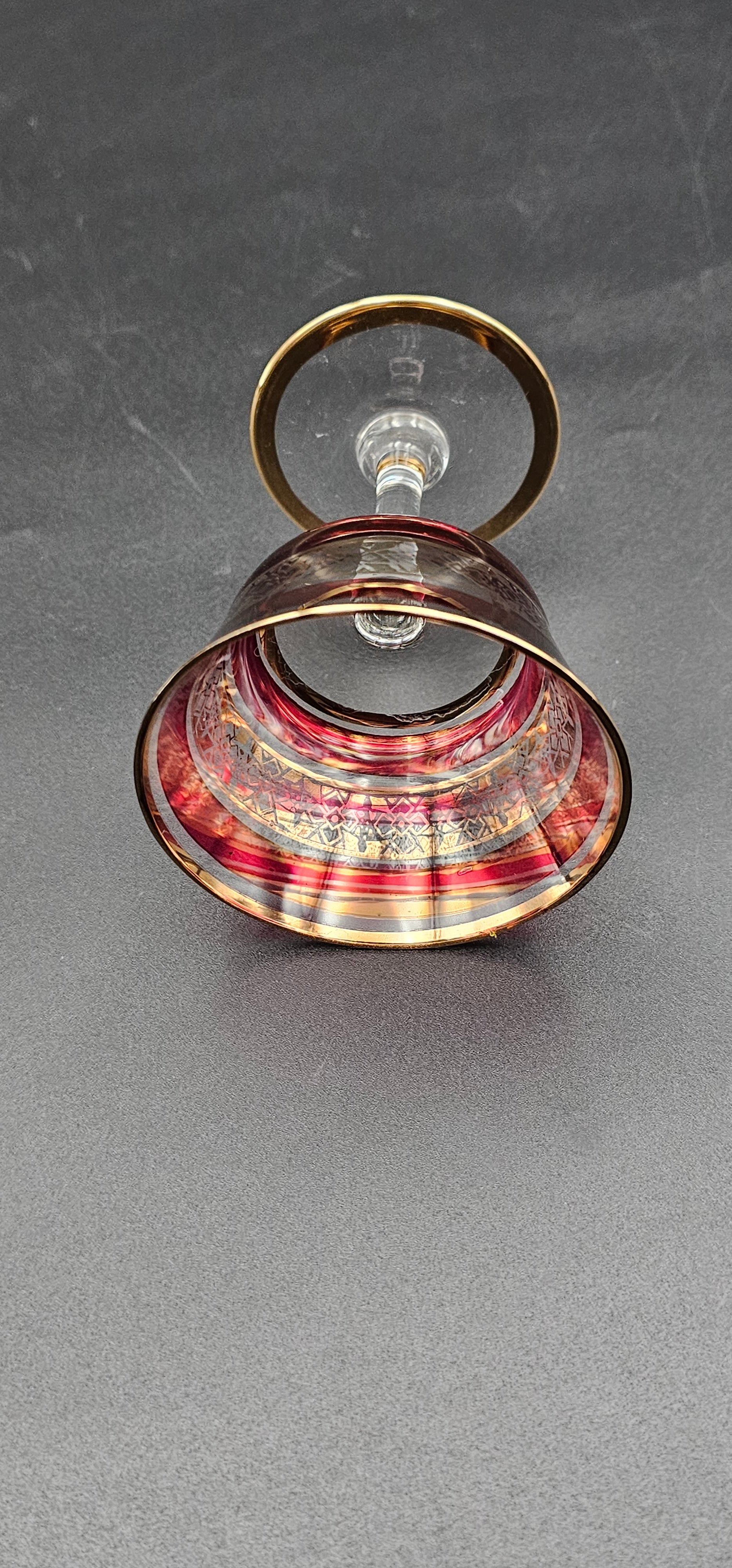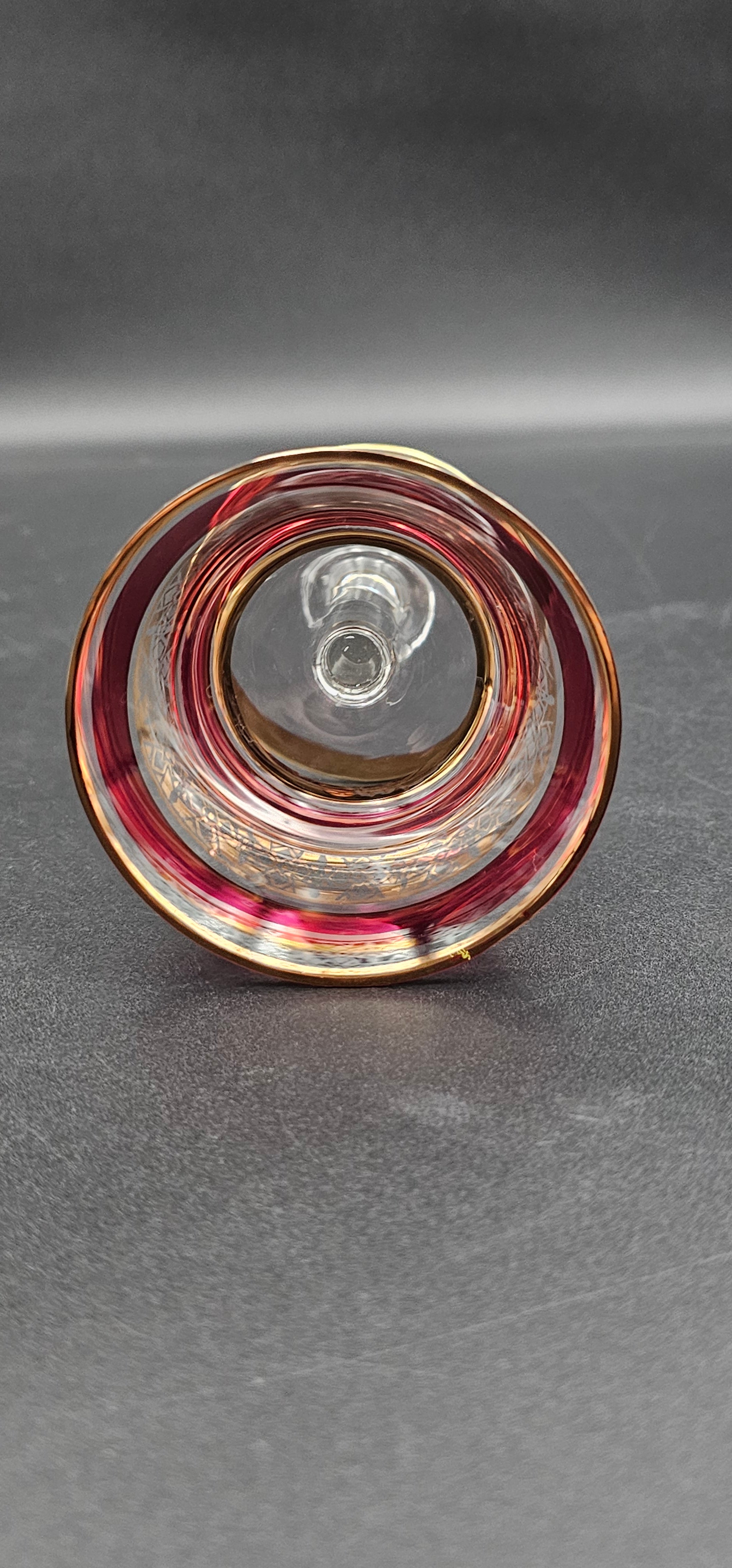 Set of 6 Small Crystal coupes with red and golden coloured detailing. 100ml 9.5cm tall
