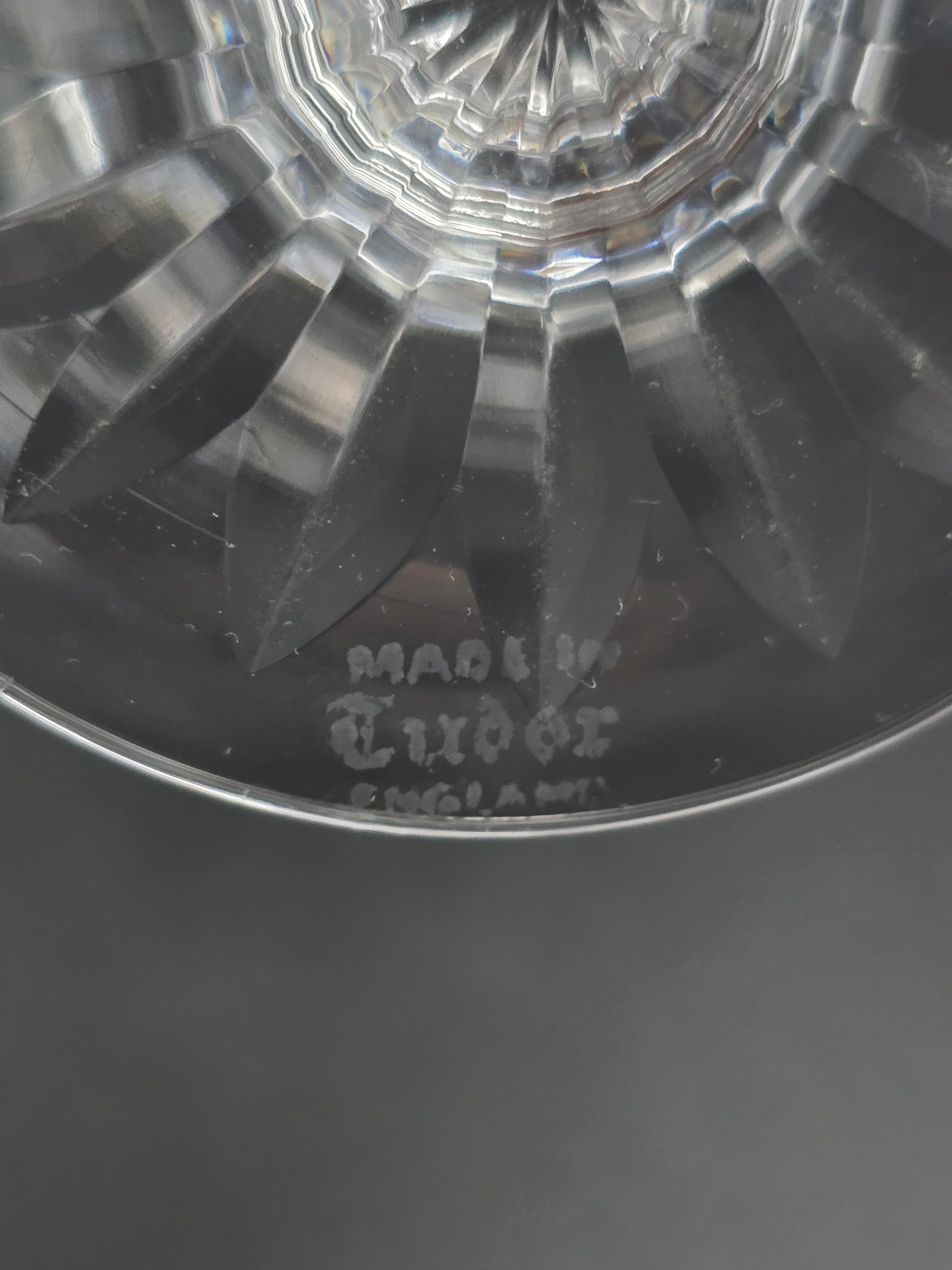 Crafted with exquisite detail, this set of 6 Tudor English Crystal large wine goblets will elevate any dining experience.