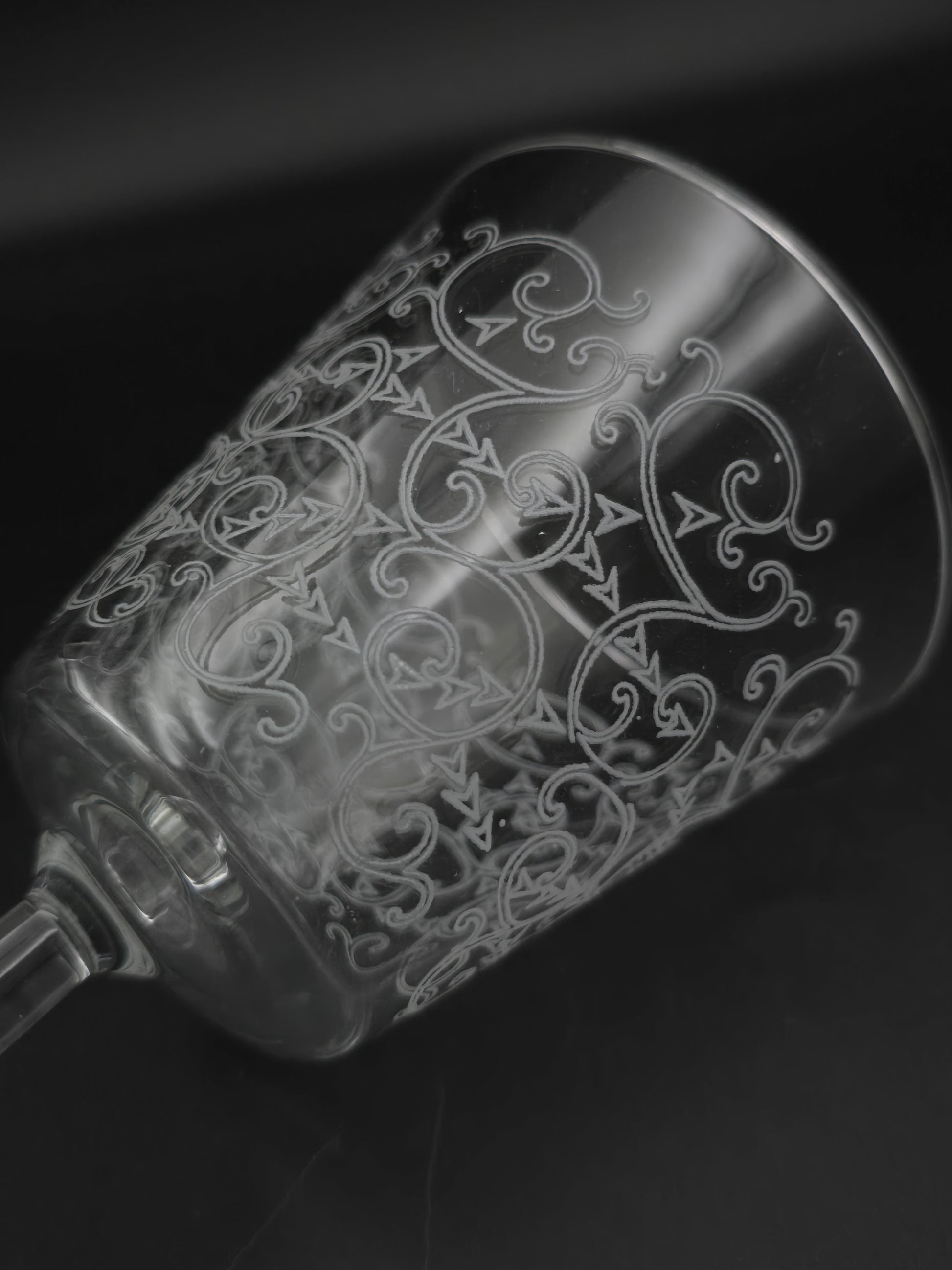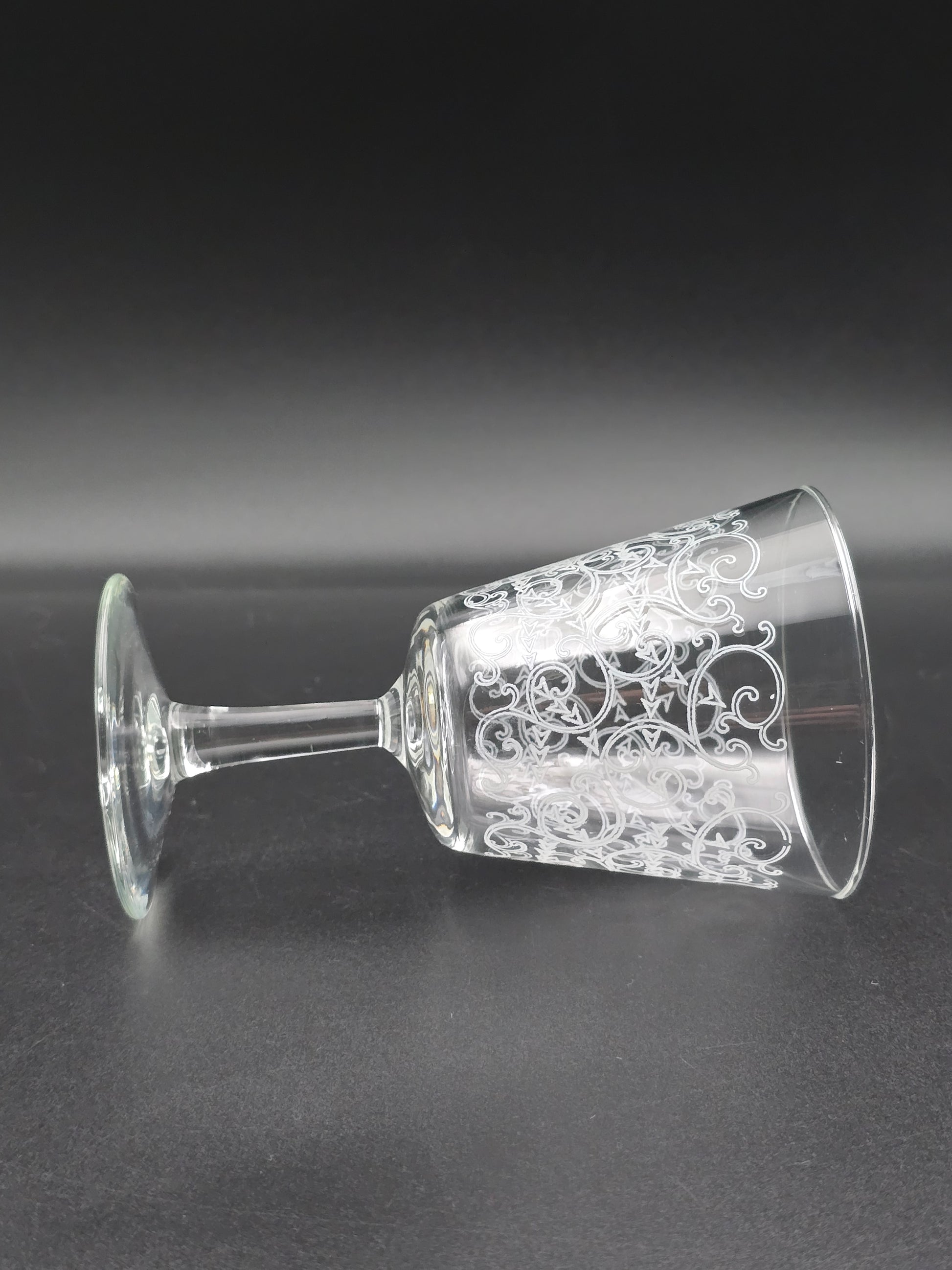 Set of 6 Vintage Etched Glass Wine Goblets – 250ml, Swirl Design, 14cm Tall