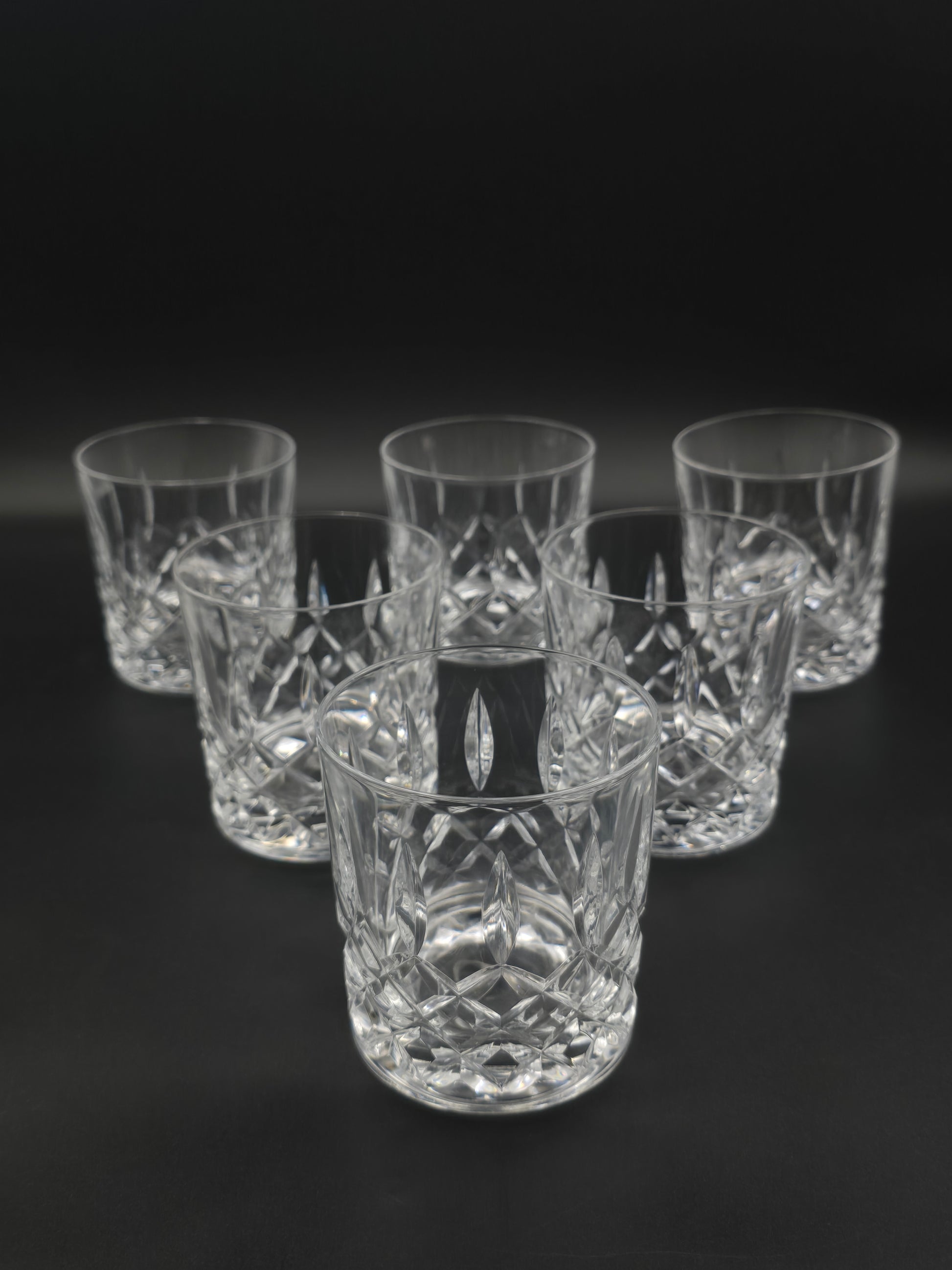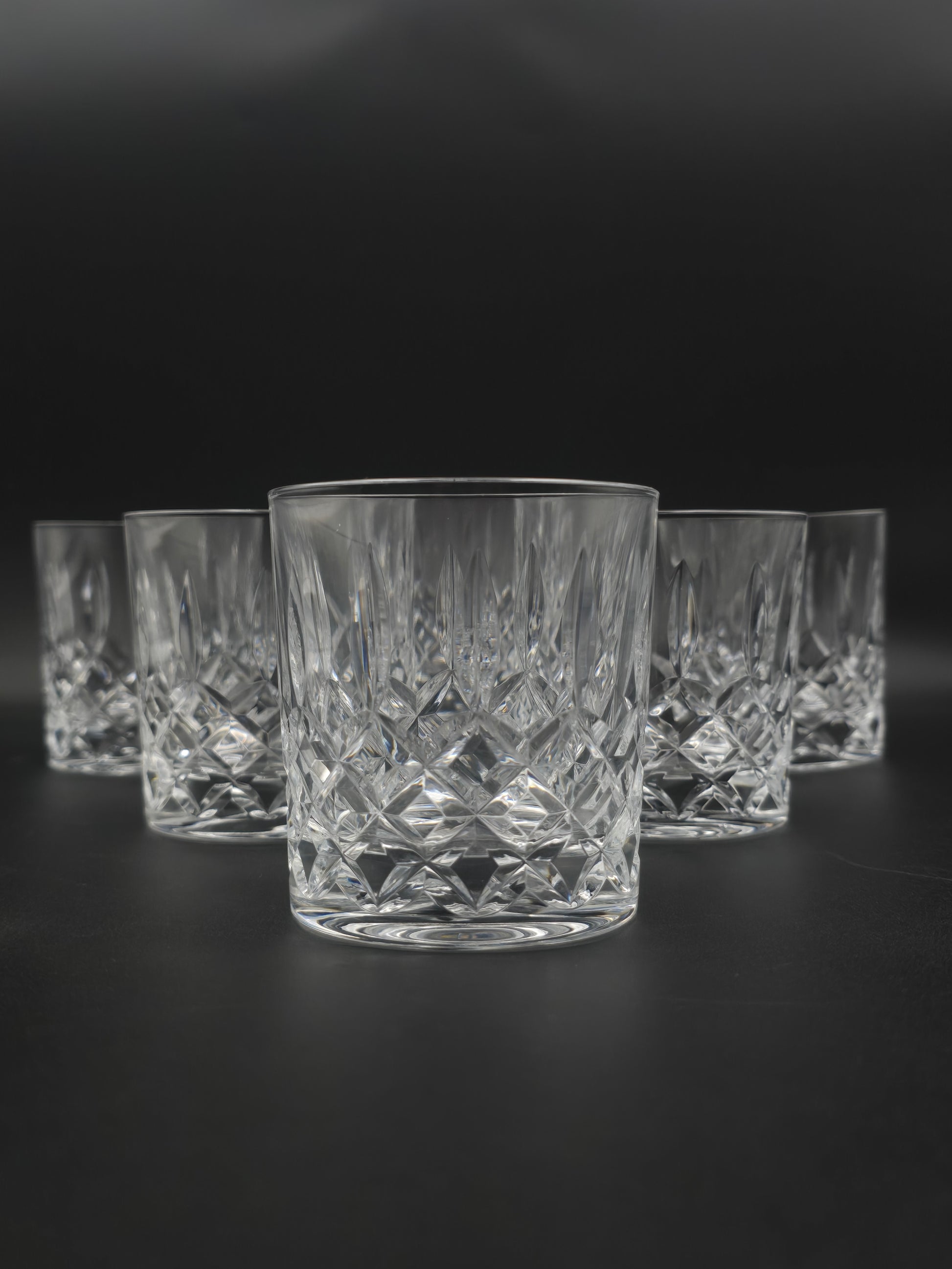A beautifully proportioned set of six vintage crystal tumblers, each exuding timeless charm and exceptional craftsmanship.