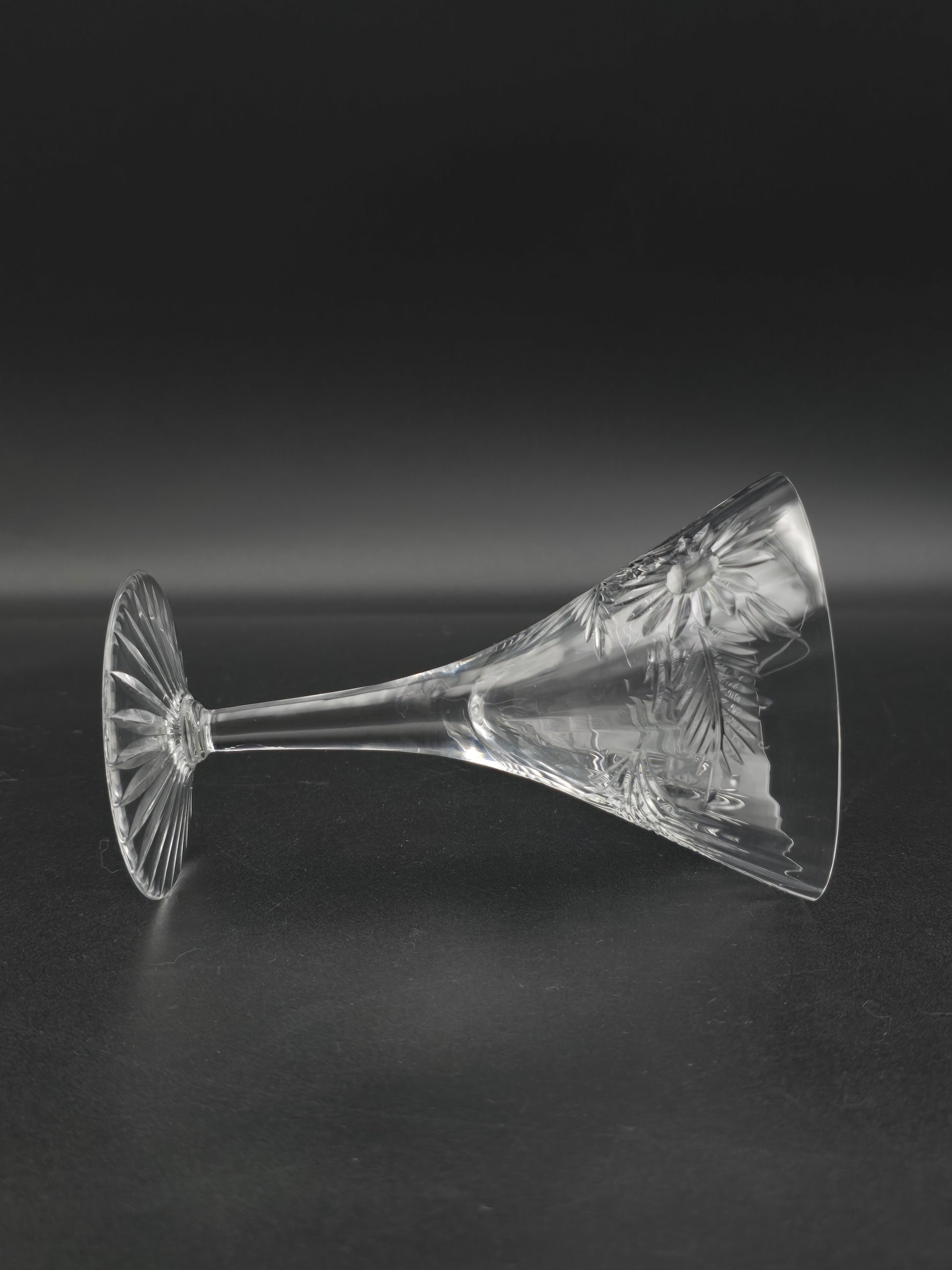 These glasses sparkle beautifully in the light, with the intricate cuts adding depth and movement. Ideal for serving champagne, cocktails, or even sorbet between courses — a wonderful blend of function and form.