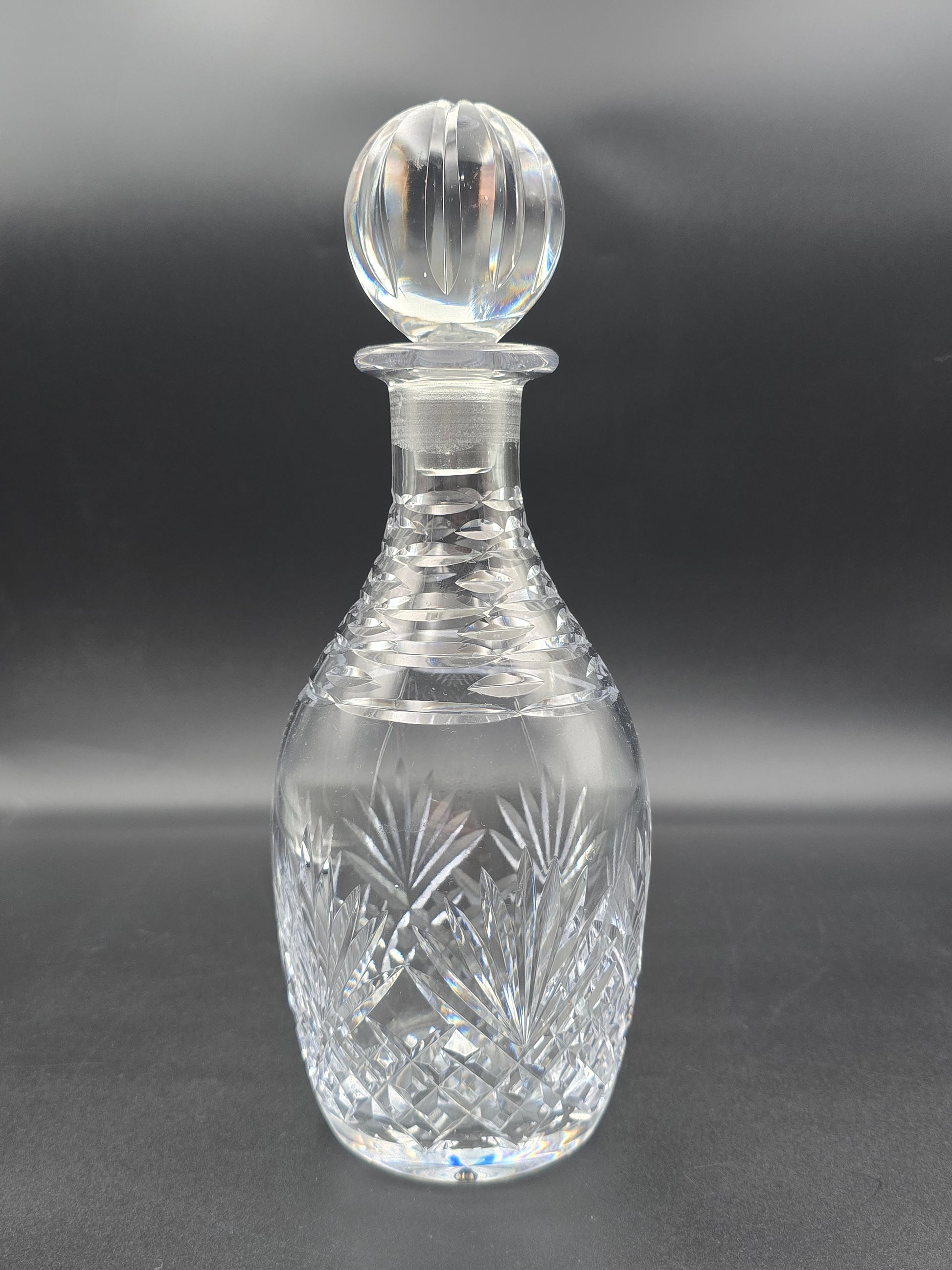 An elegant and finely cut vintage crystal decanter with a beautifully rounded faceted stopper and detailed cutting throughout.