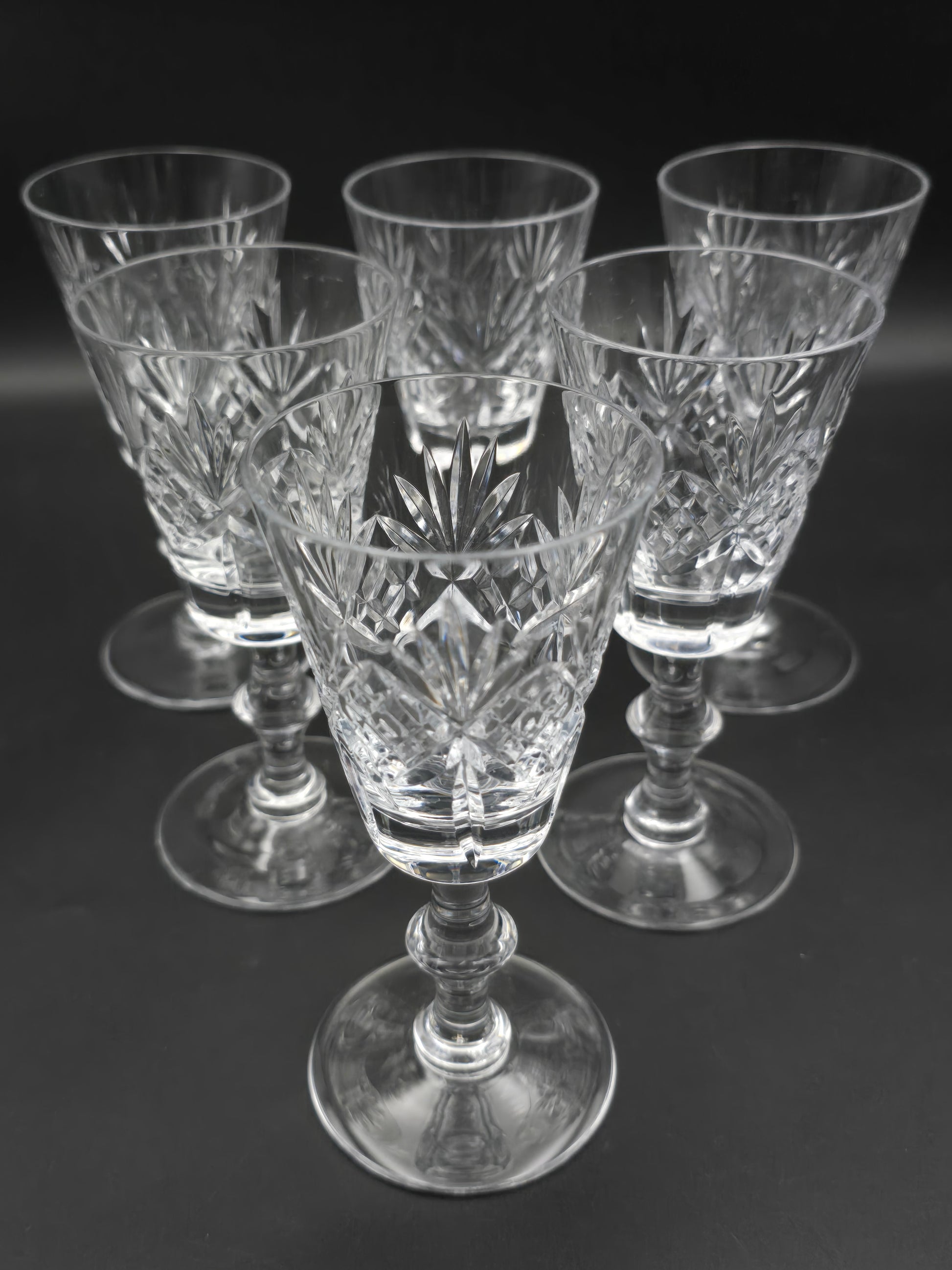 Vintage Edinburgh Crystal Embassy Pattern set of 6 Crystal Sherry Glasses. Boxed 100ml