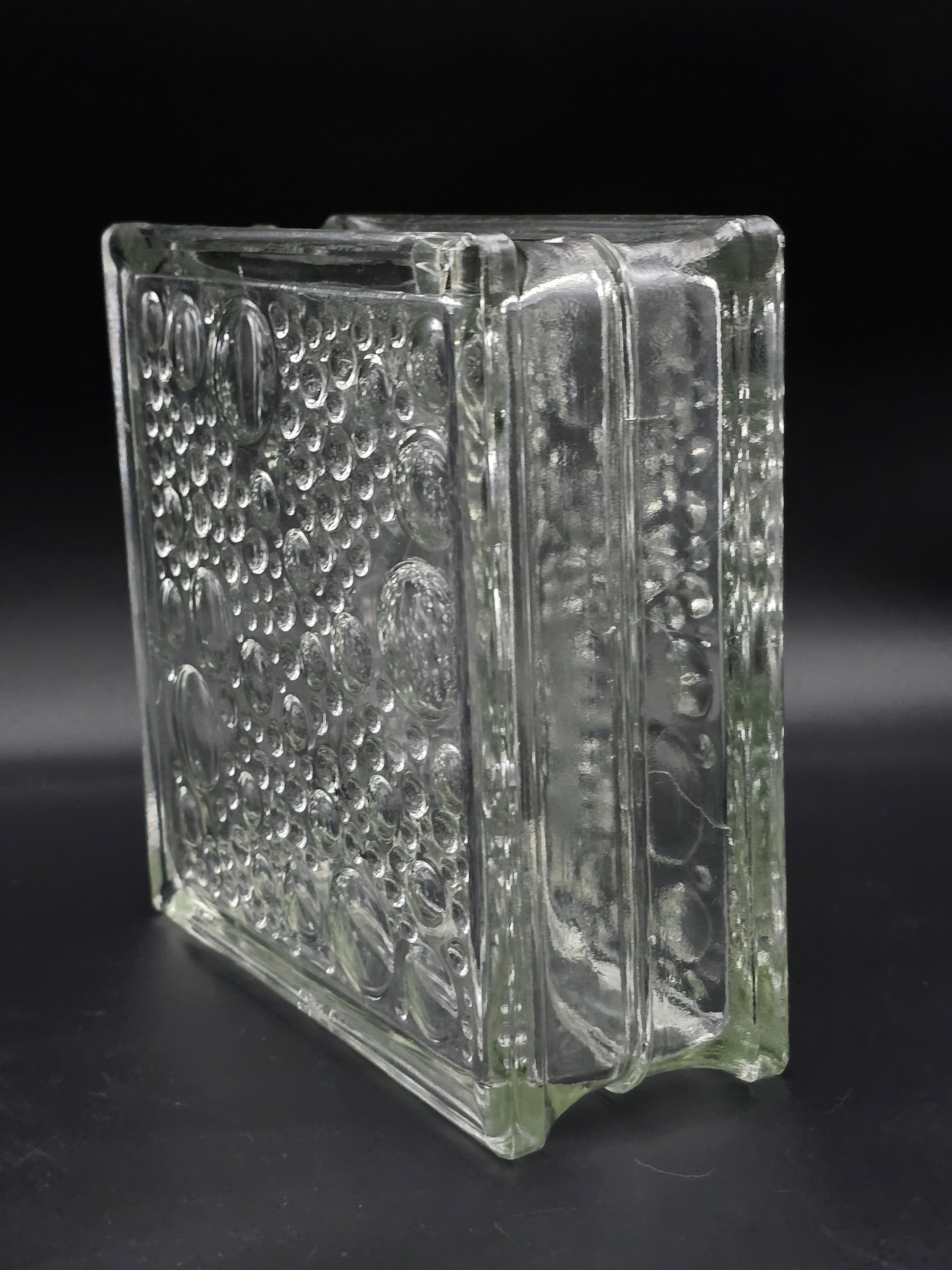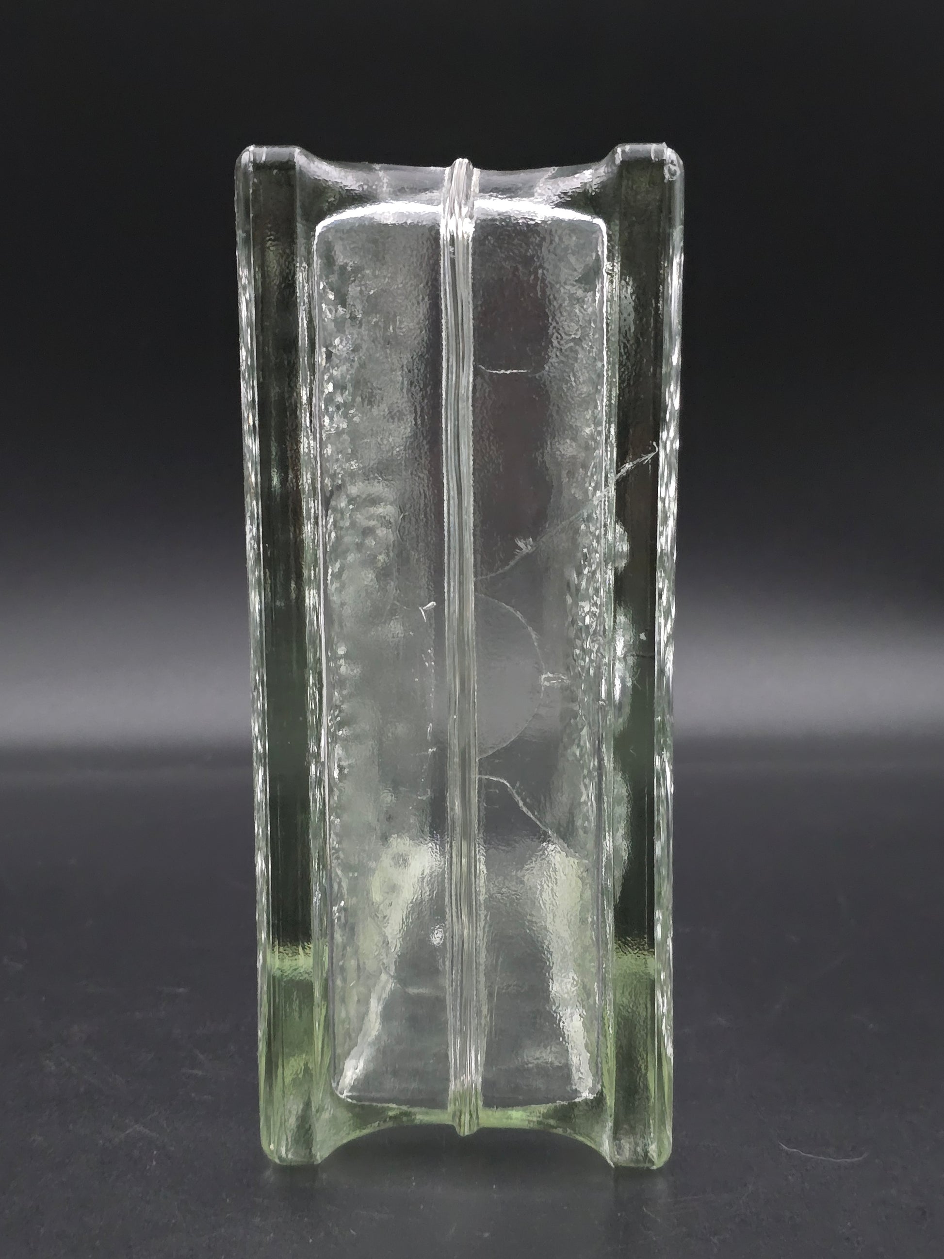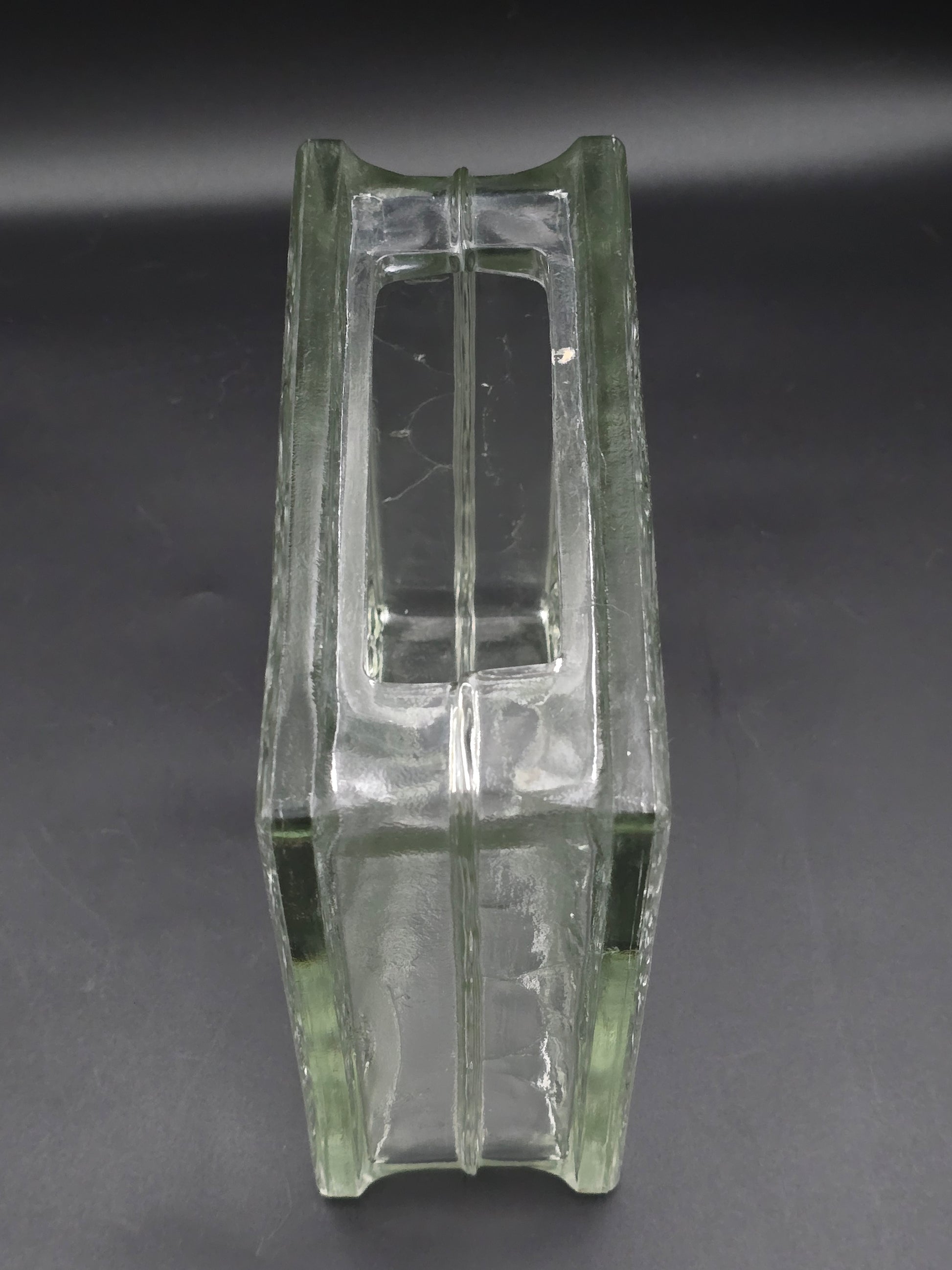 With its thick walls and clean geometric shape, this vase calls to mind a glass architectural wall brick—an elegant and versatile vessel for flowers or as a standalone sculptural piece.