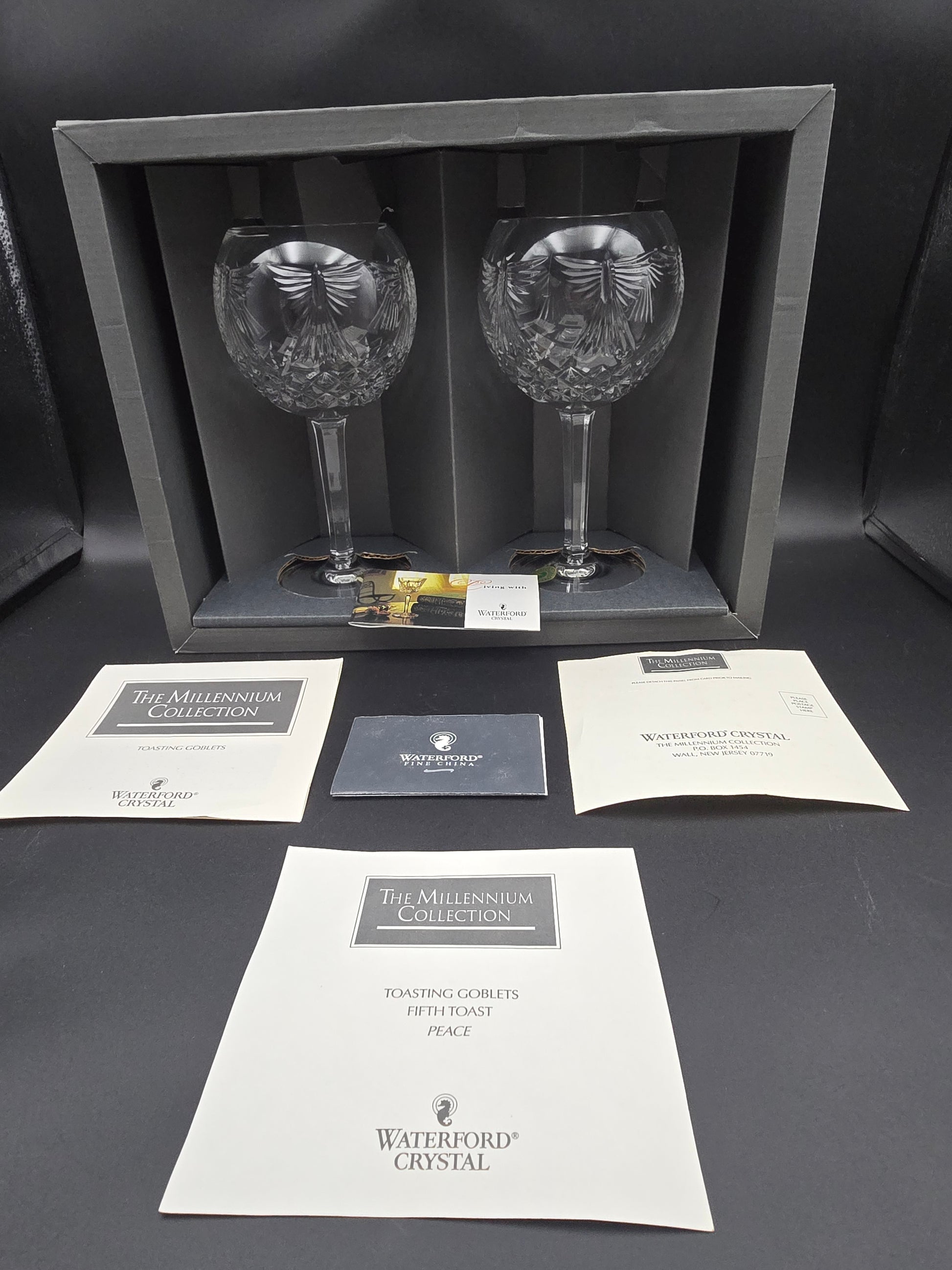 Waterford Crystal The Millennium Collection Toasting Goblets Pair. Fifth Toast - Peace. Boxed